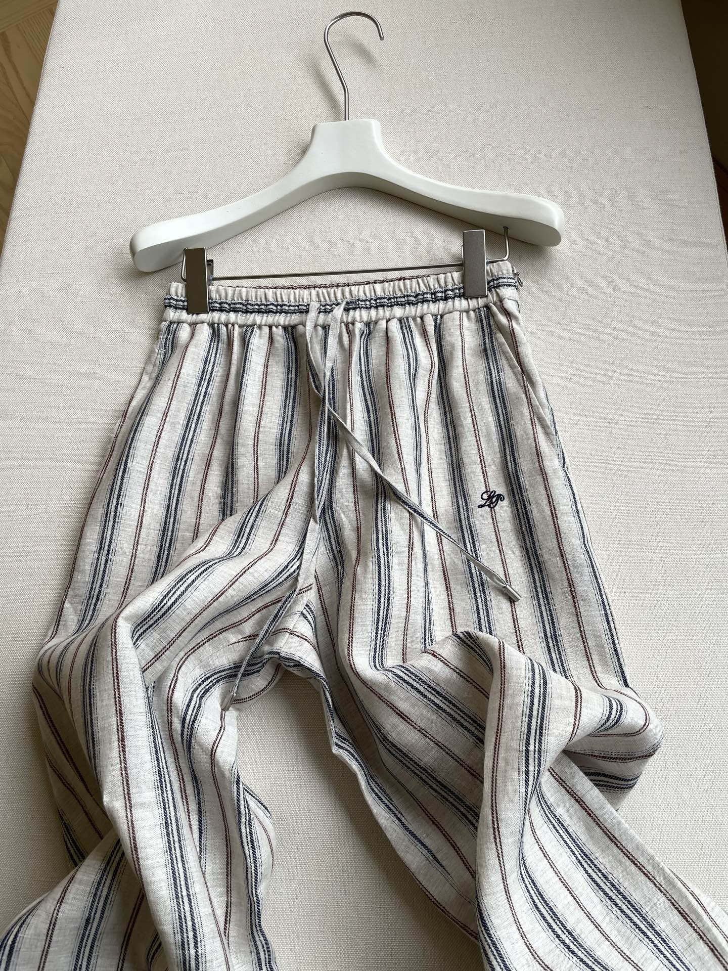 NIGO Loro Piana Women's Retro Striped Jacquard Elastic Waist Drawstring Loose Linen Wide Leg Pants Spring, Summer, And Fall Casual Long Pants Ngvp #nigo2128