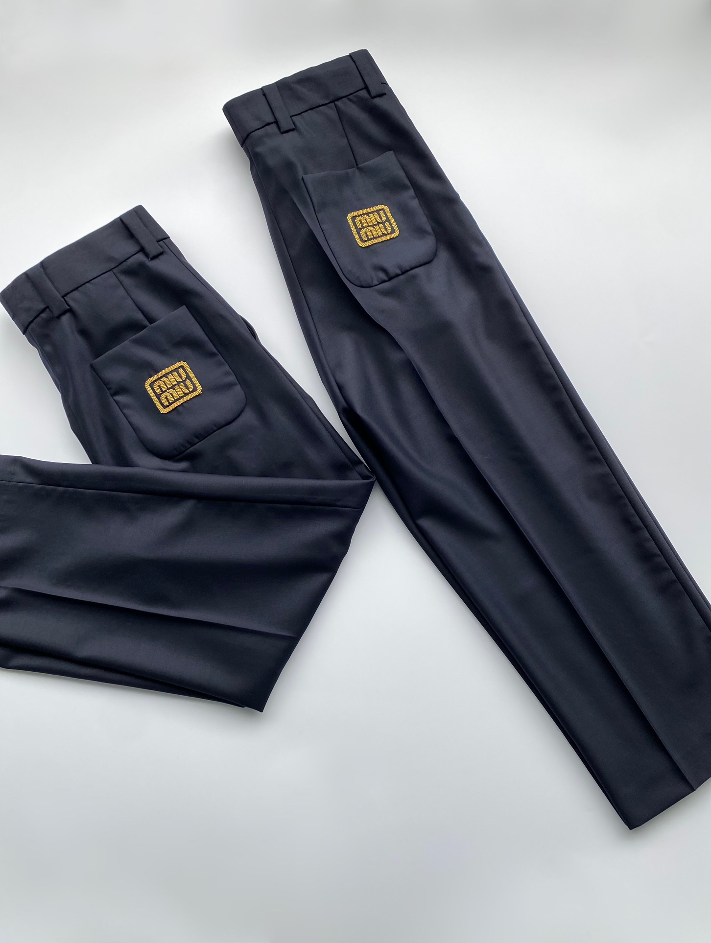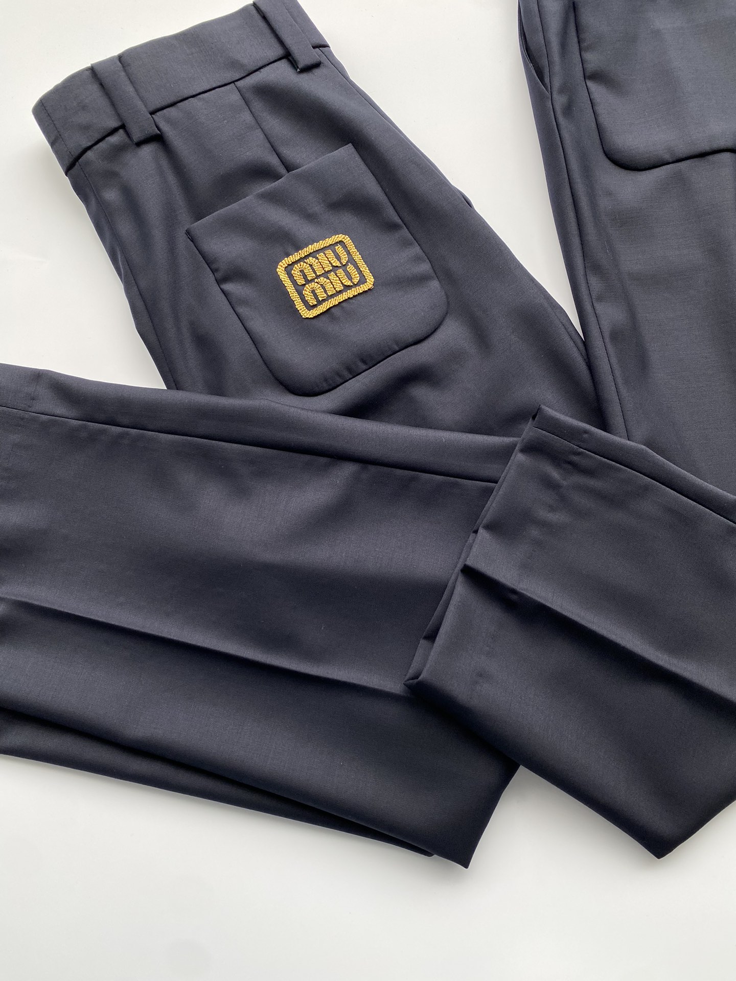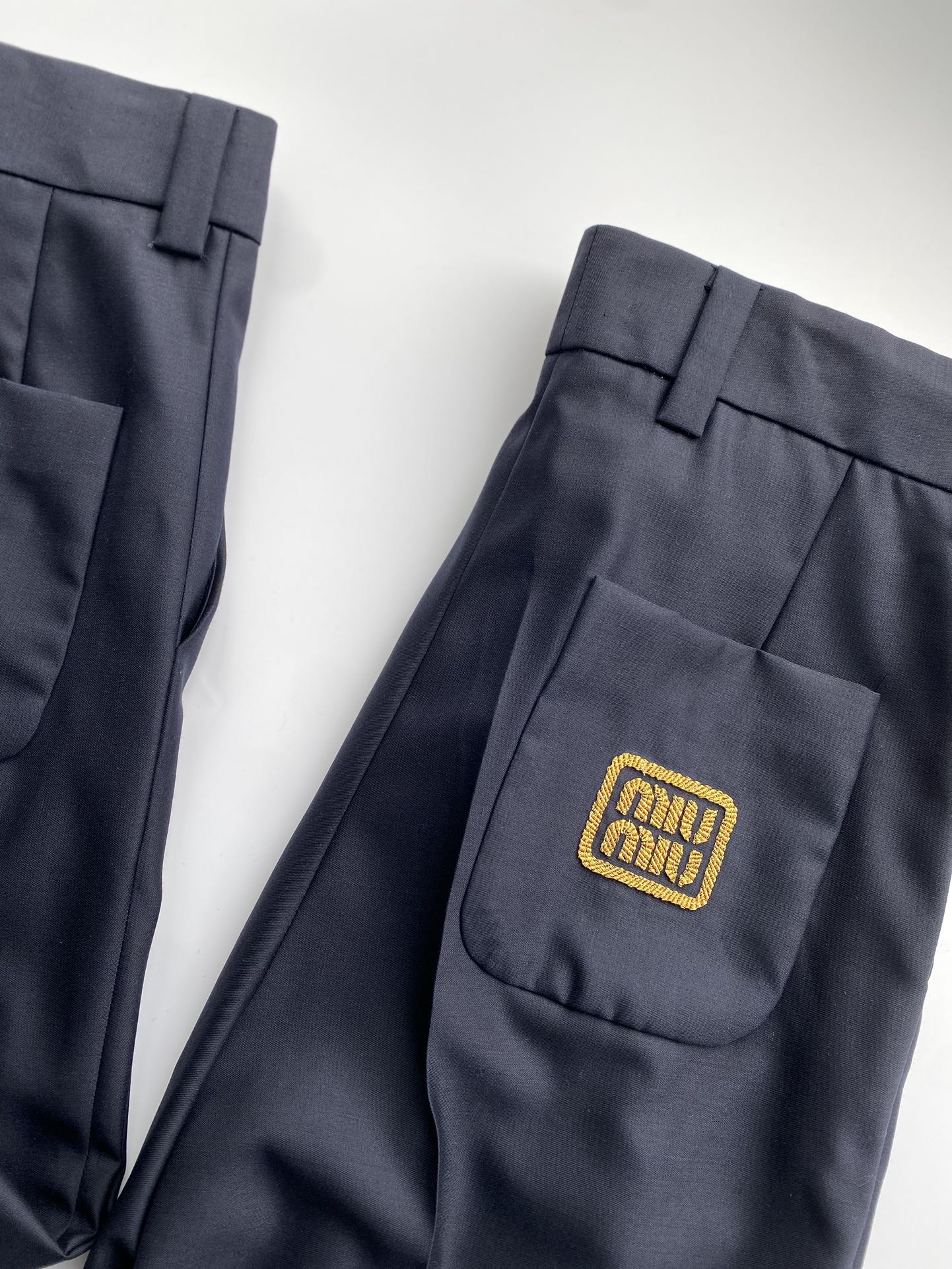 NIGO MiuMiu Men's and Women's Spring and Autumn Navy Embroidery Logo Wool Fabric Pants #nigo99759