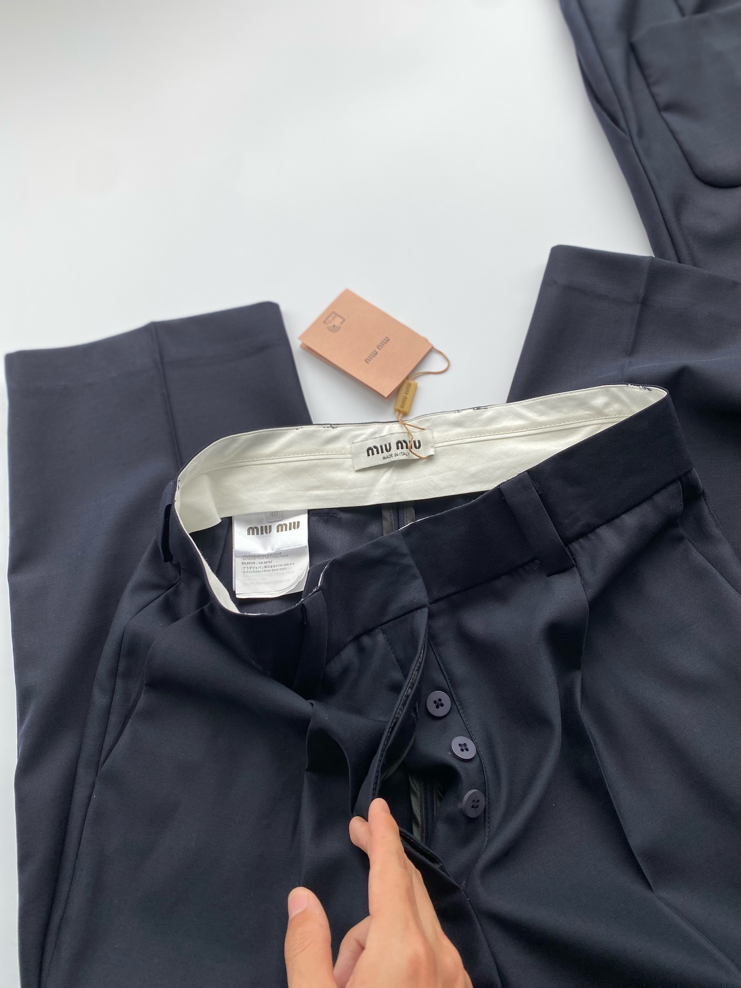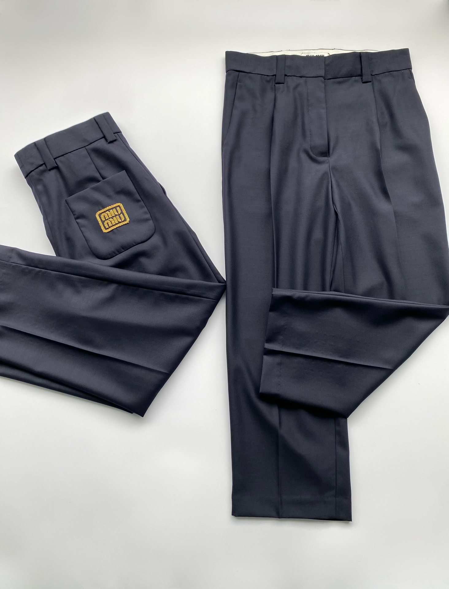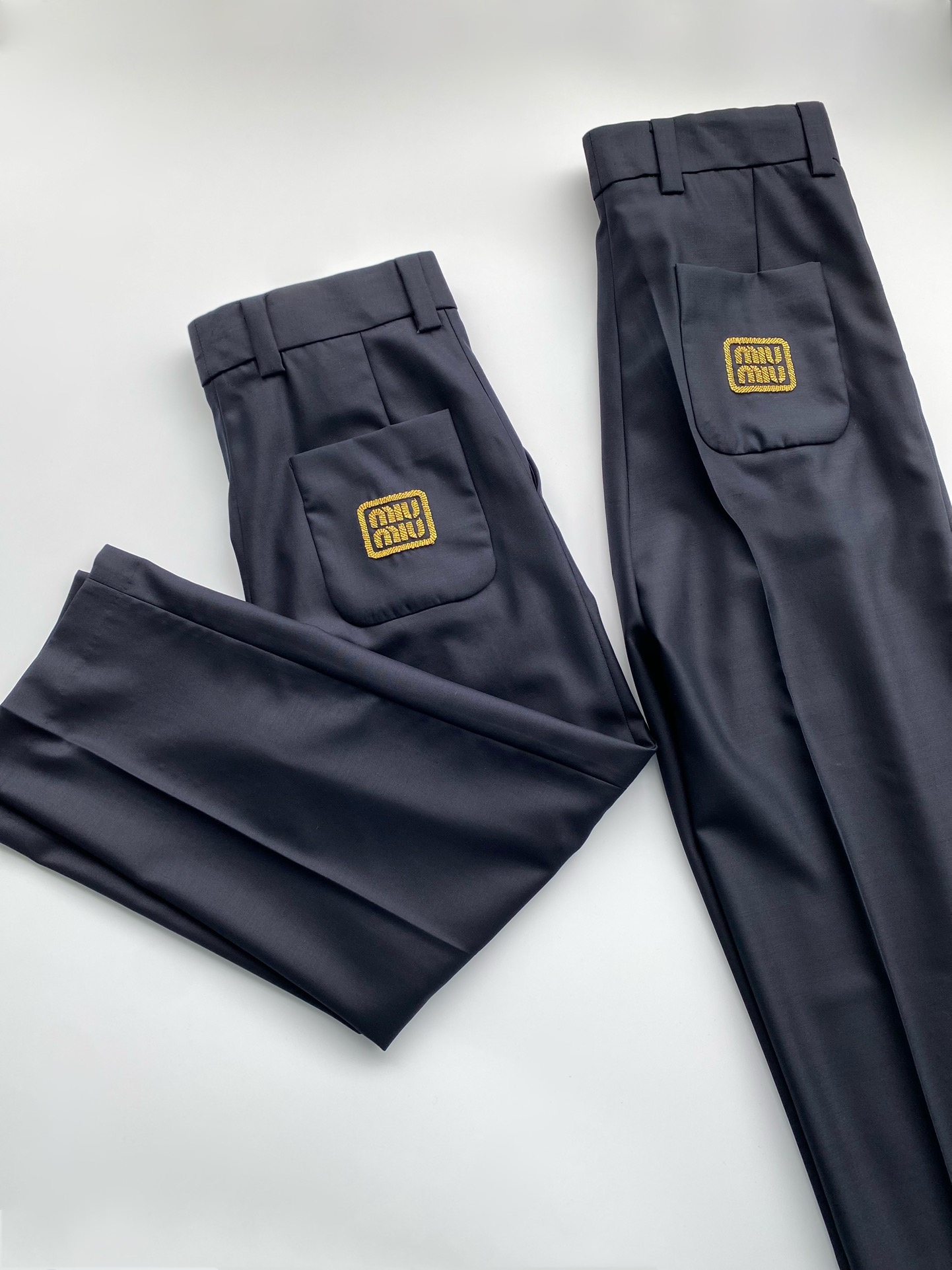 NIGO MiuMiu Men's and Women's Spring and Autumn Navy Embroidery Logo Wool Fabric Pants #nigo99759