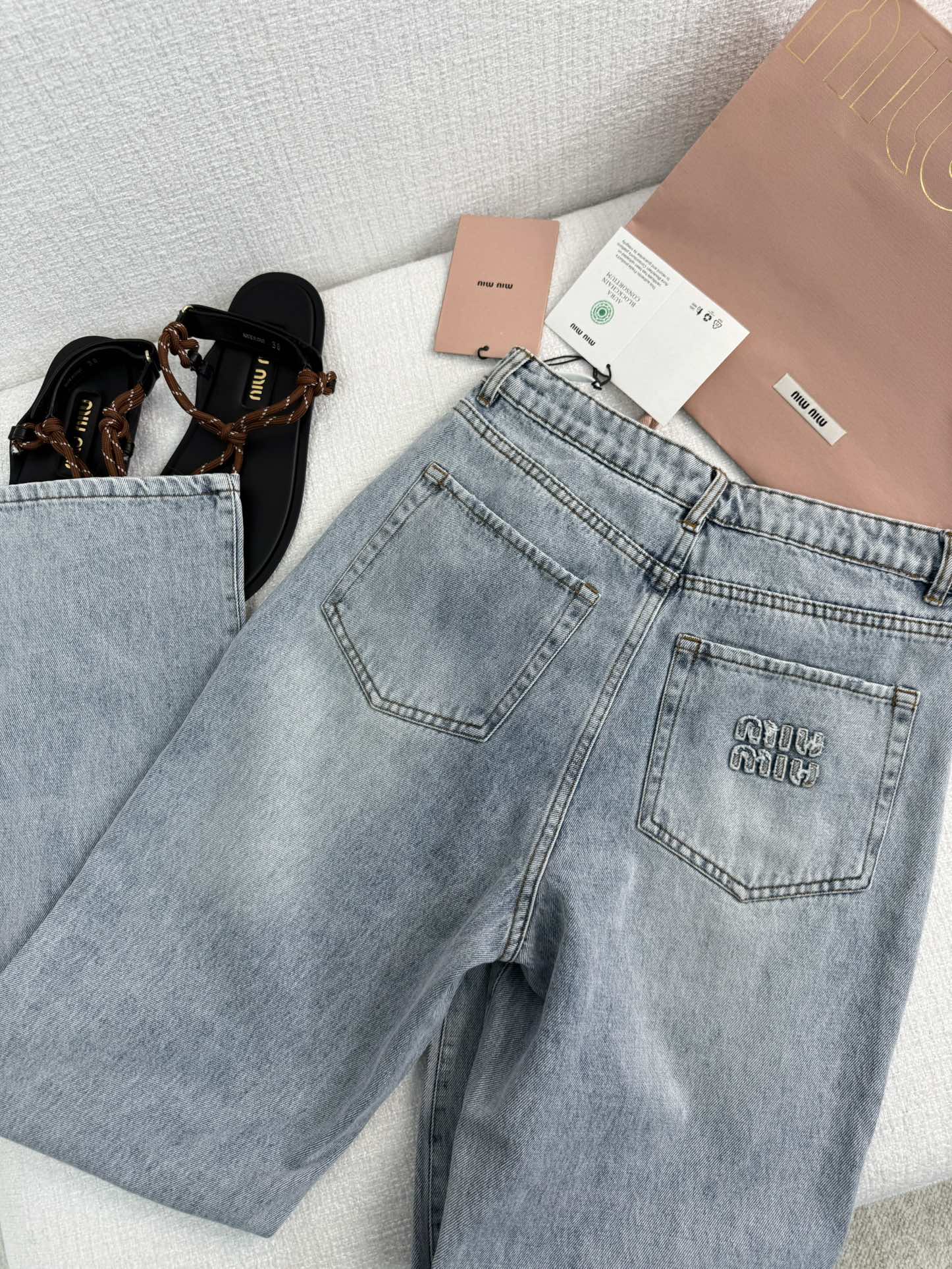 NIGO MiuMiu Women's Spring and Autumn Blue Letter Logo Embroidery Straight Jeans Pants #nigo73416
