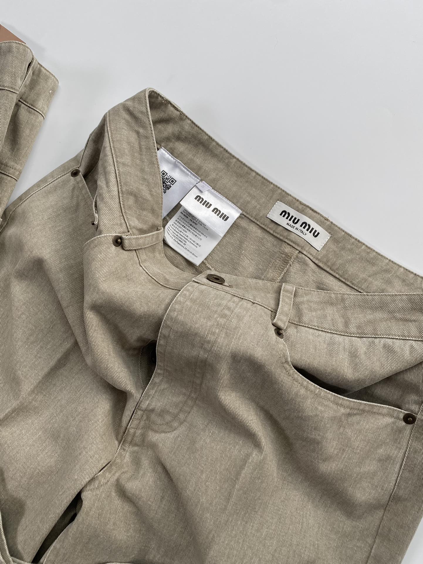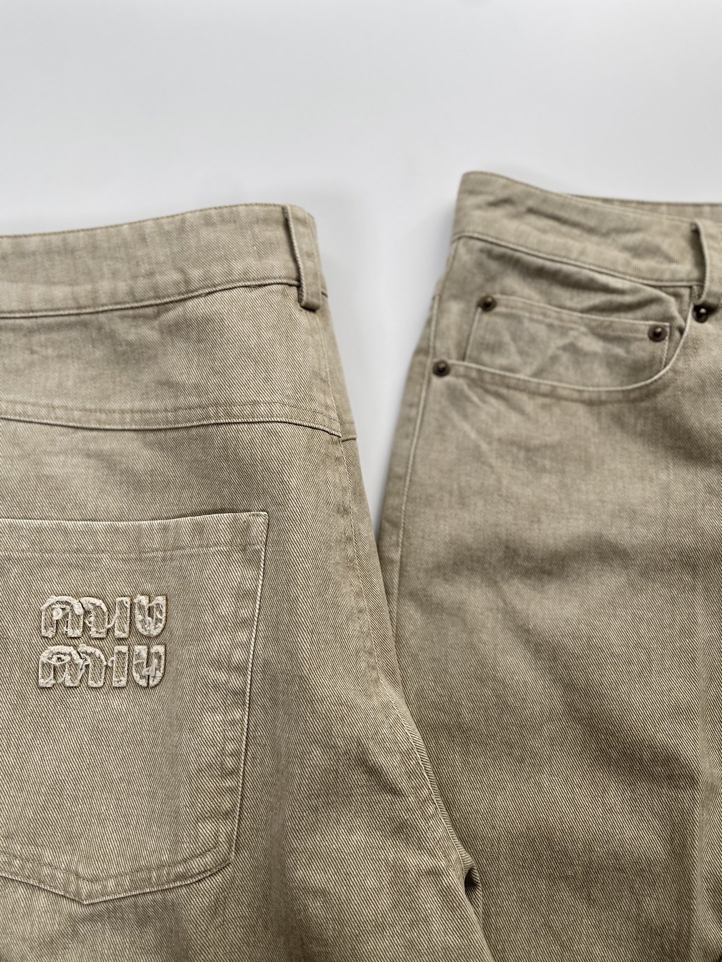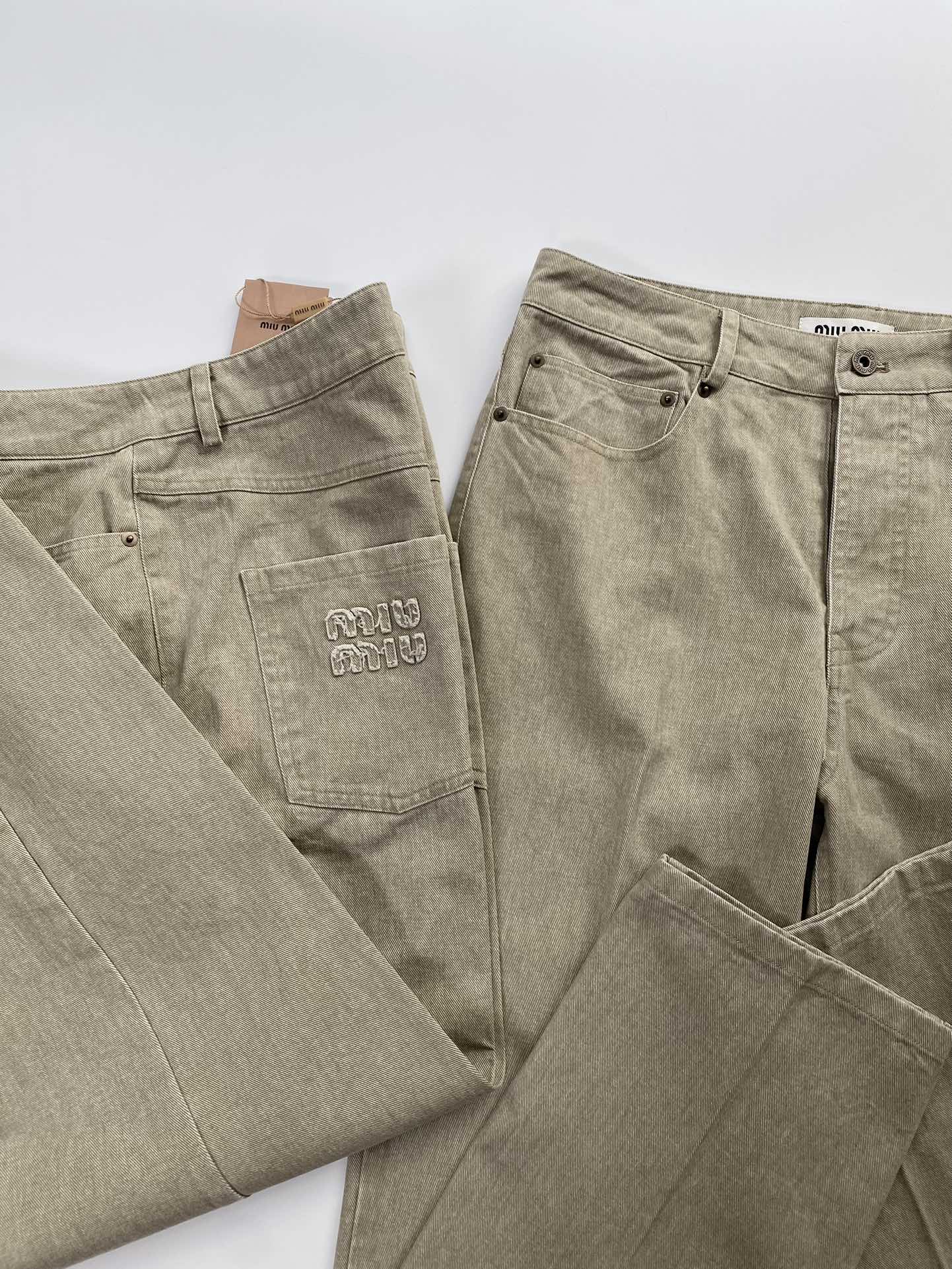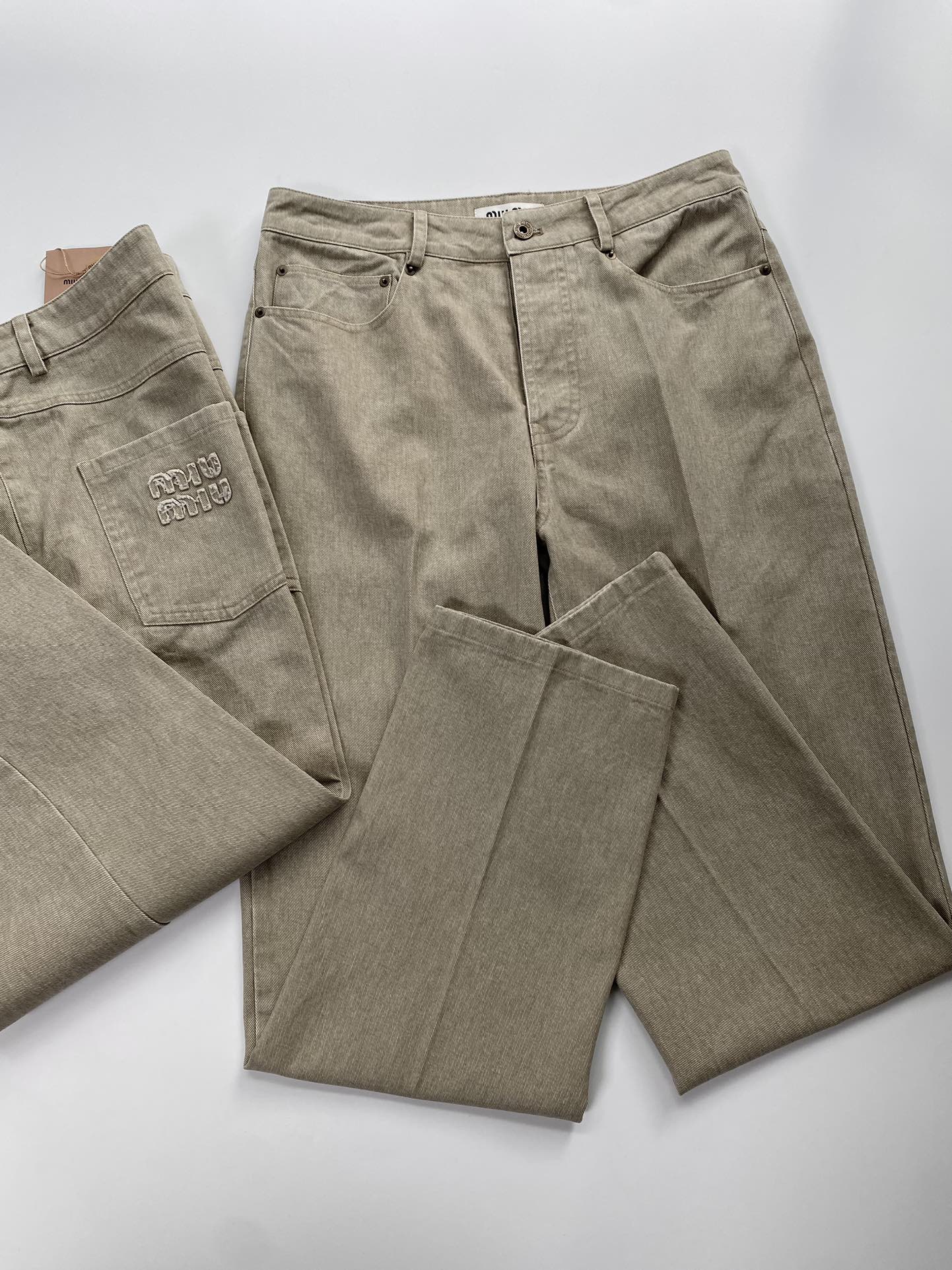 NIGO MiuMiu Women's Spring/Autumn Light Brown Embroidered Logo Straight Leg Pants #nigo73481