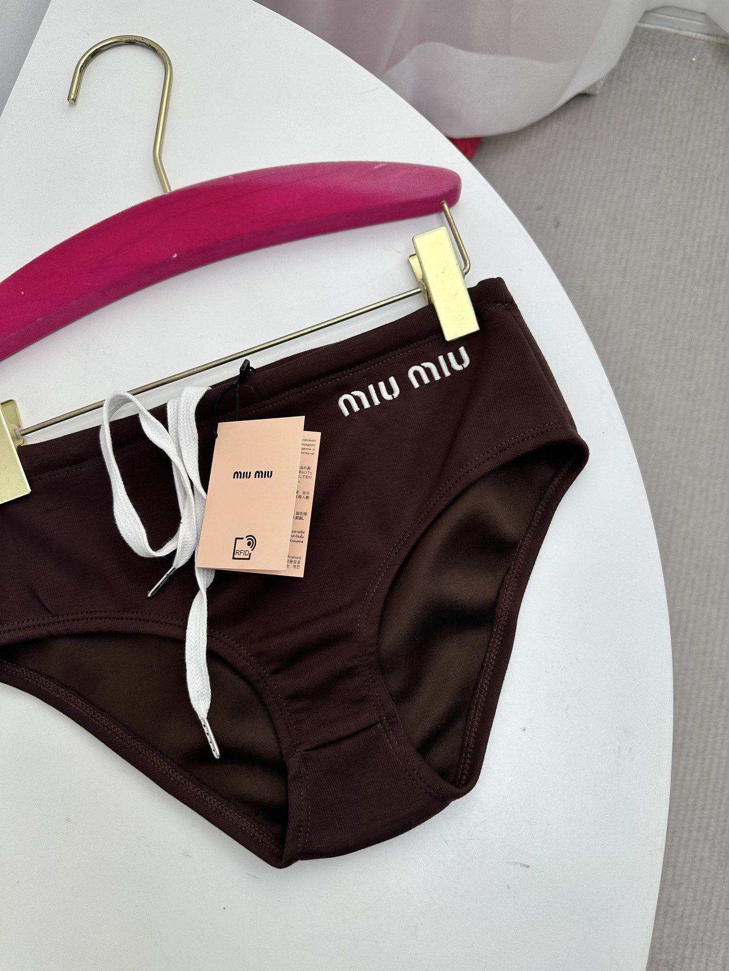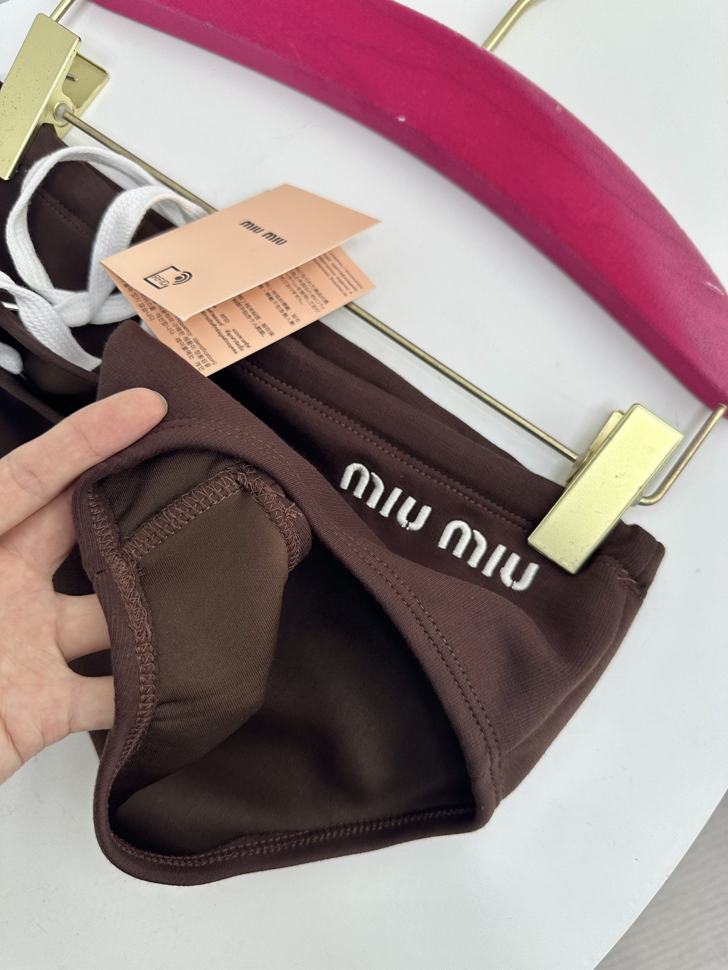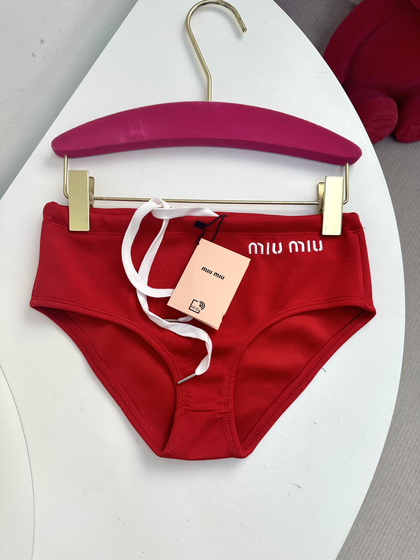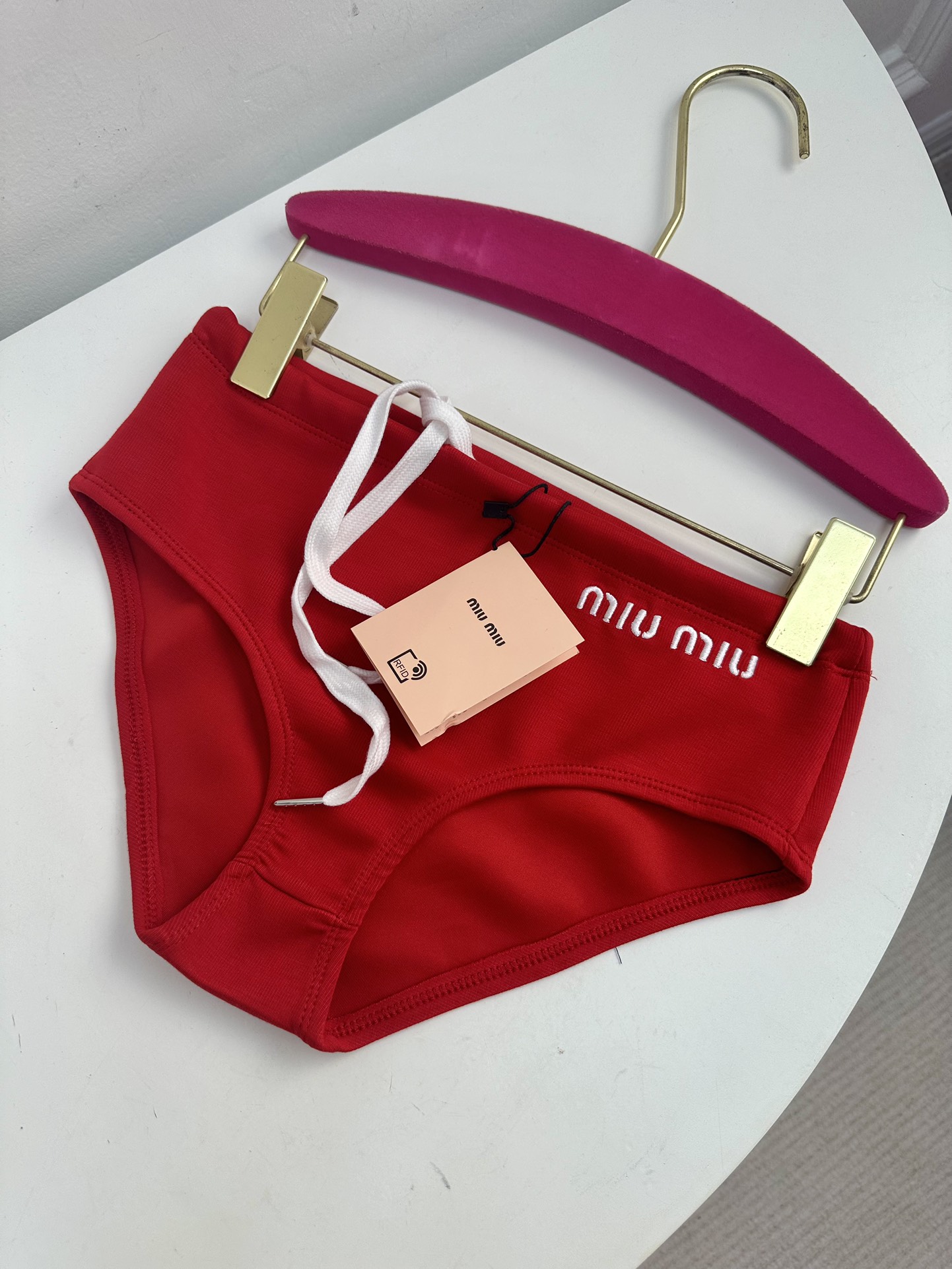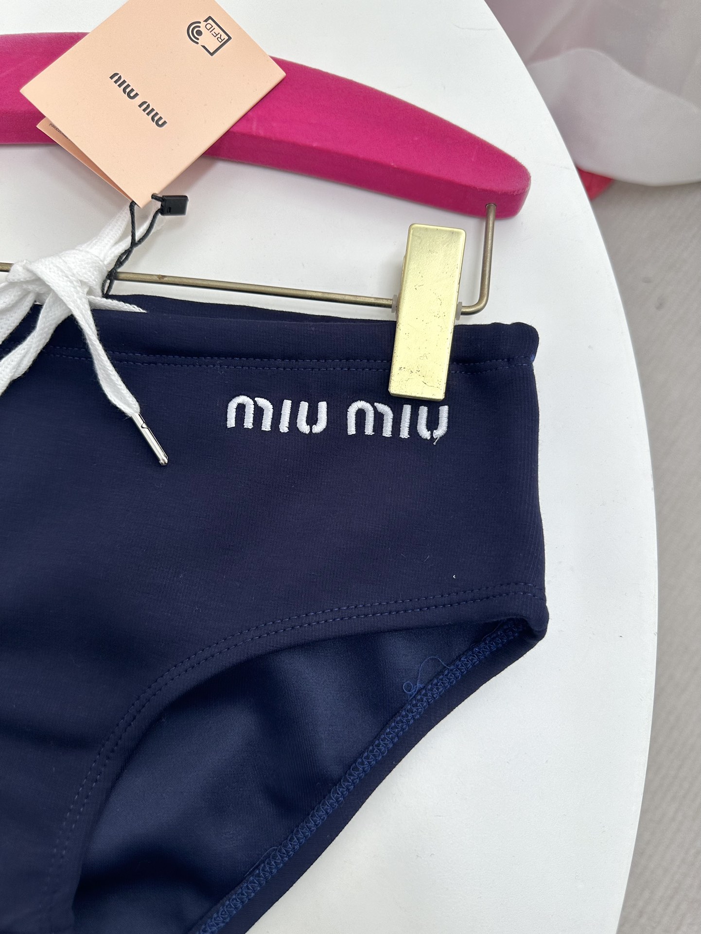 NIGO MiuMiu Women's Summer Solid Colour Logo Letter Embroidery Bikini Swim Trunks Fashion Stacking Triangle Trunks Outwear #nigo71715