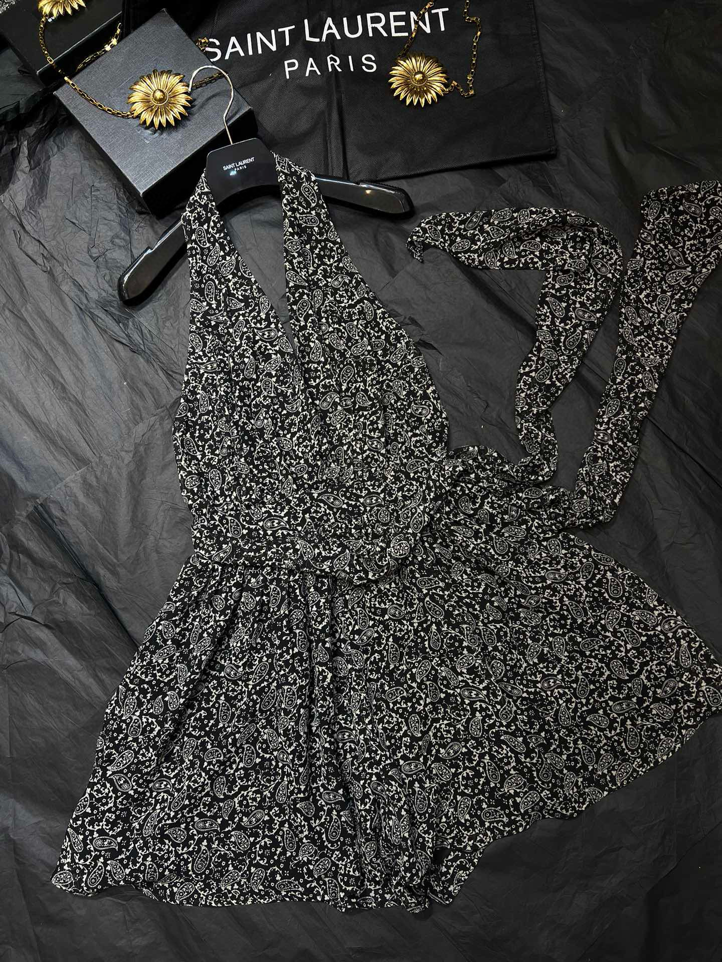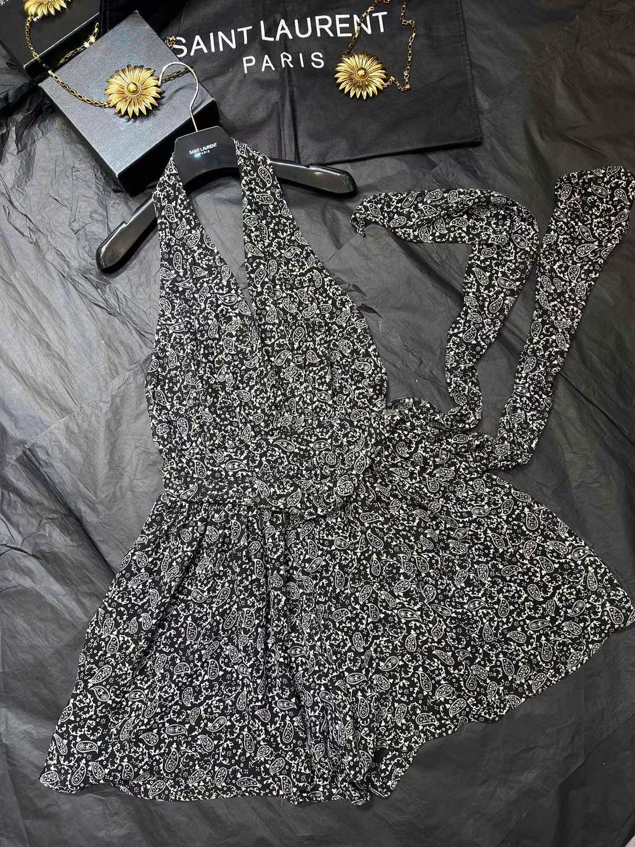 NIGO Saint Laurent Women's Summer Sexy V-neck Retro Floral Print Hanging Neck Tie Casual Dressy Jumpsuit Ngvp #nigo8268