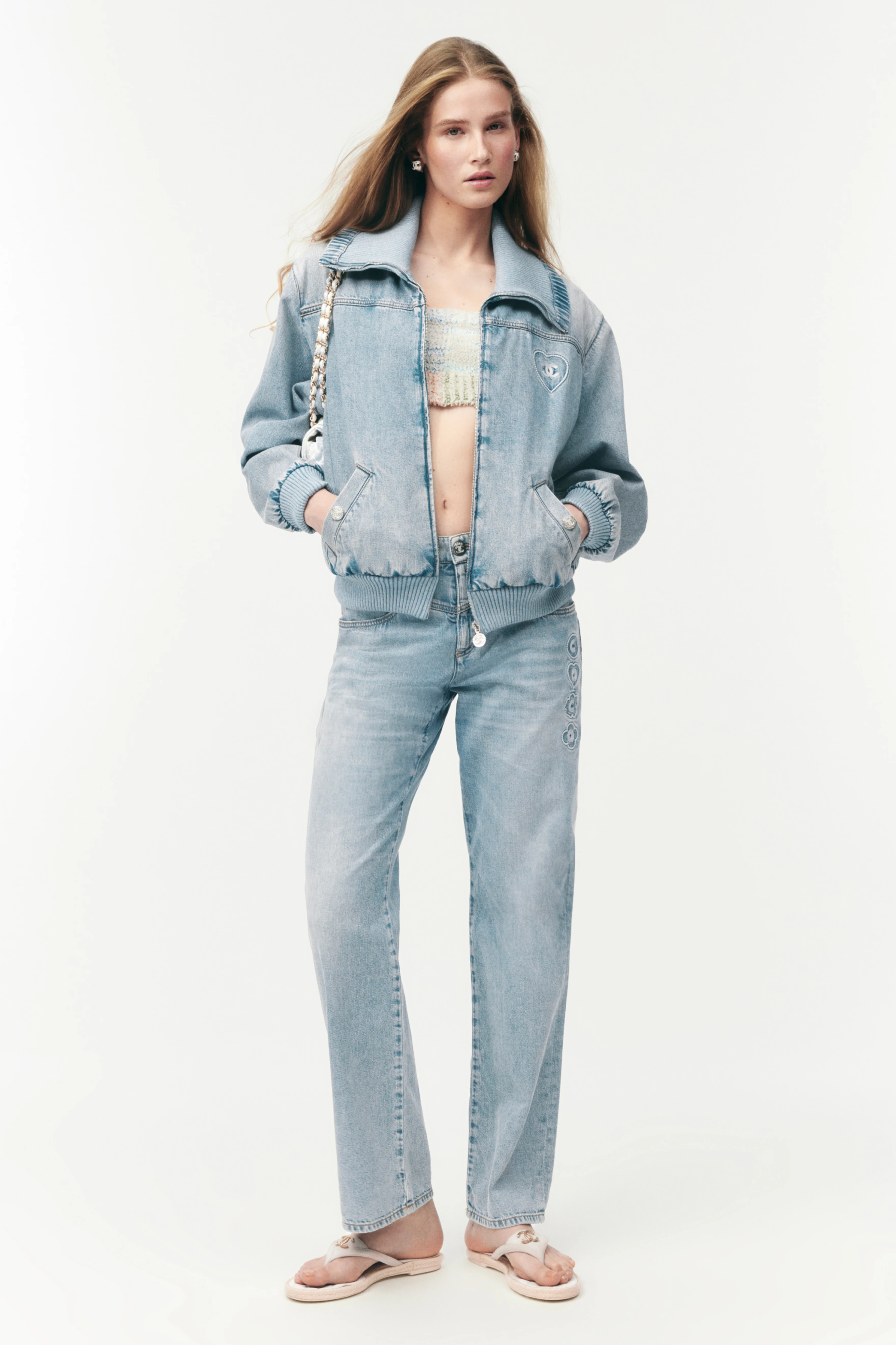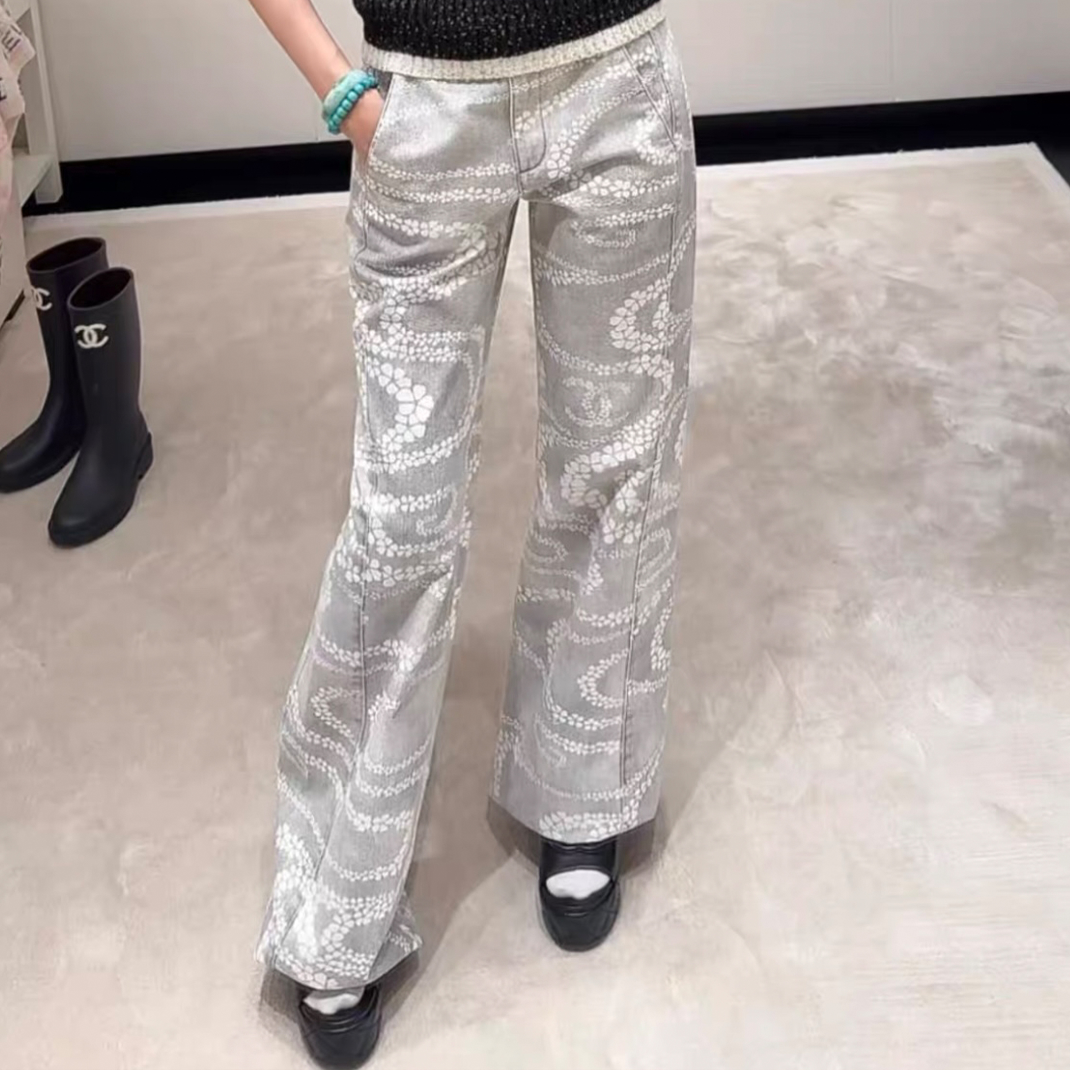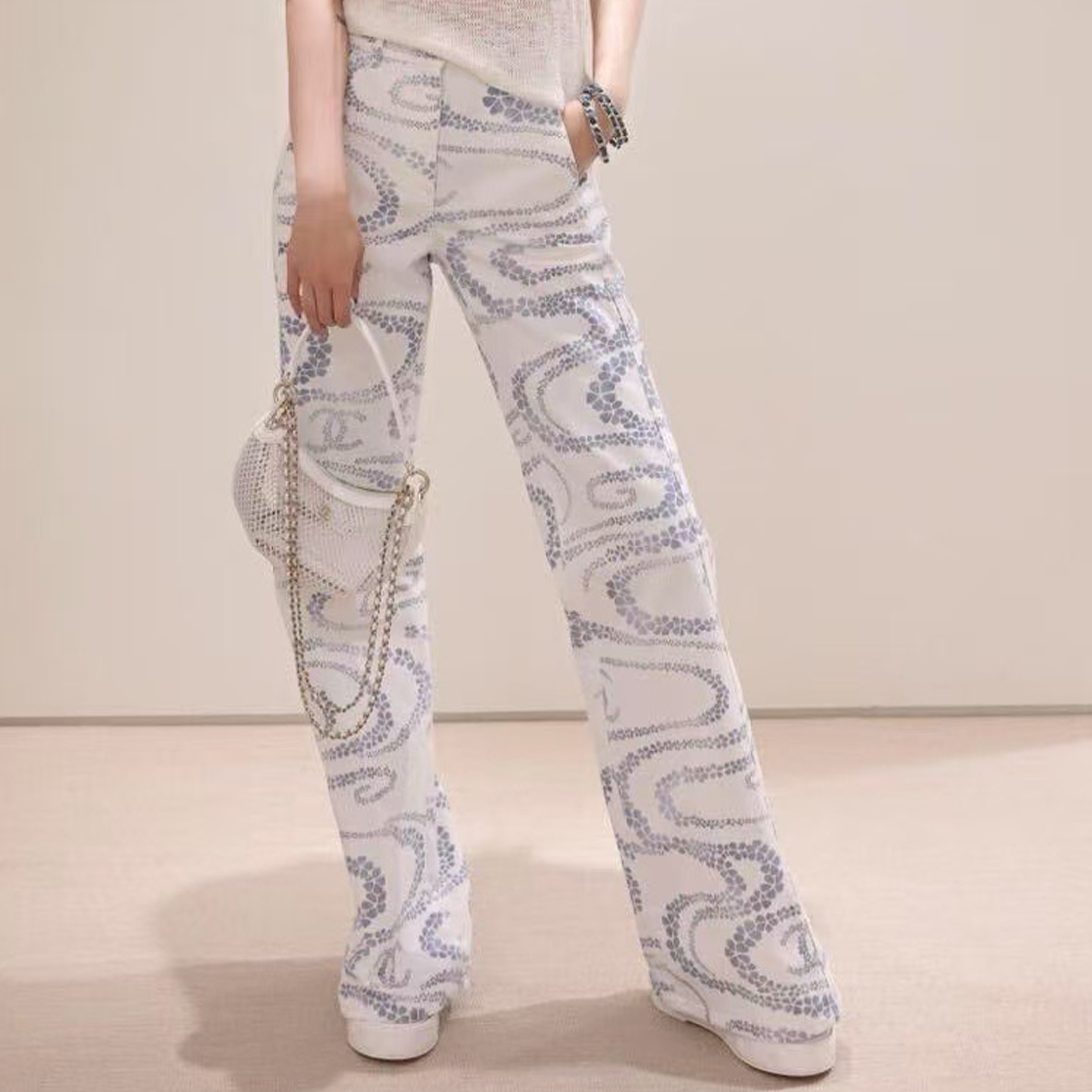 NIGO Chanel Women's CoCo Beach Four Seasons Solid Color Embroidered Straight Leg Denim Trousers Pants Ngvp #nigo1699