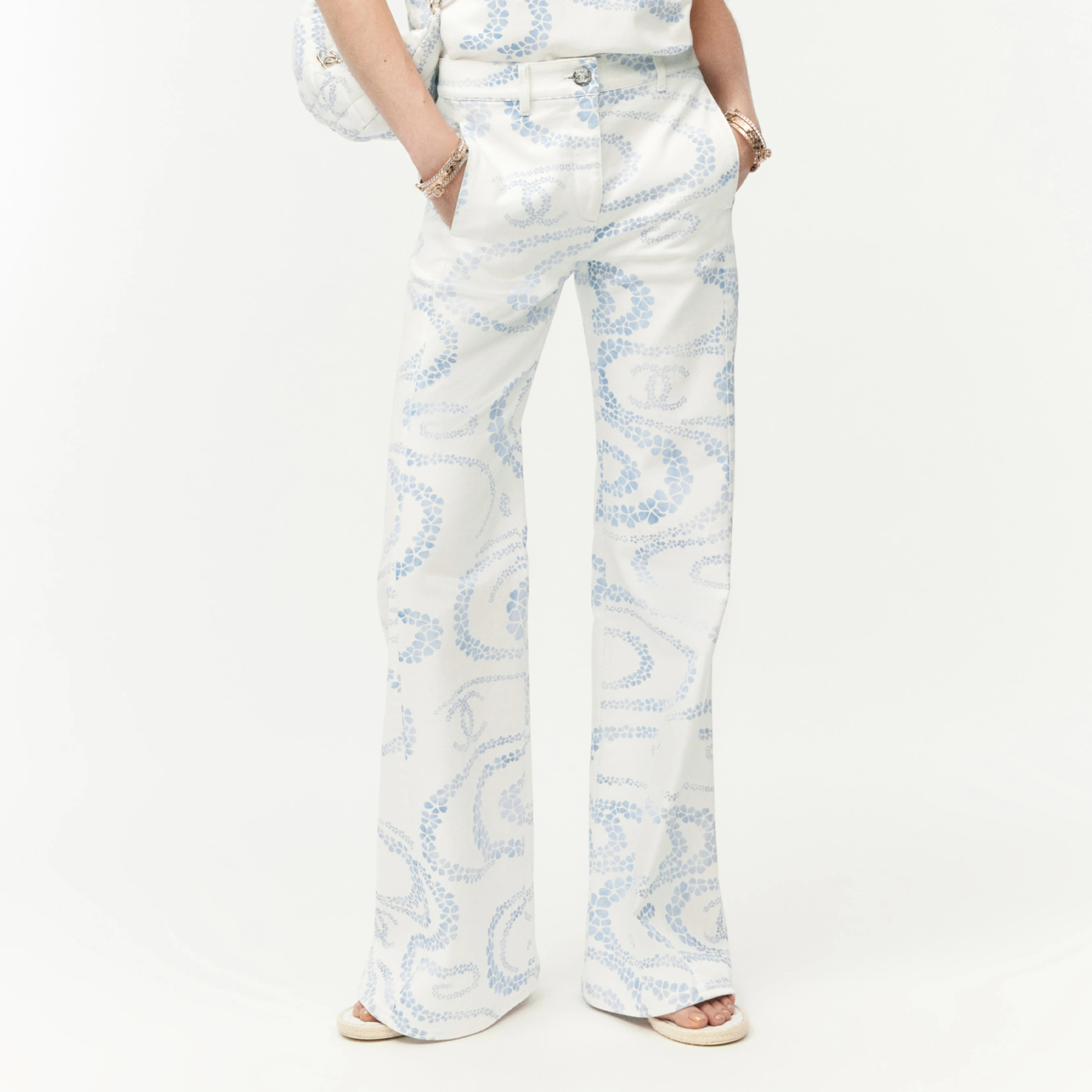 NIGO Chanel Women's CoCo Beach Collection Logo Printed Seasonal Solid Color Wide Leg Pants Casual Trousers #nigo77266