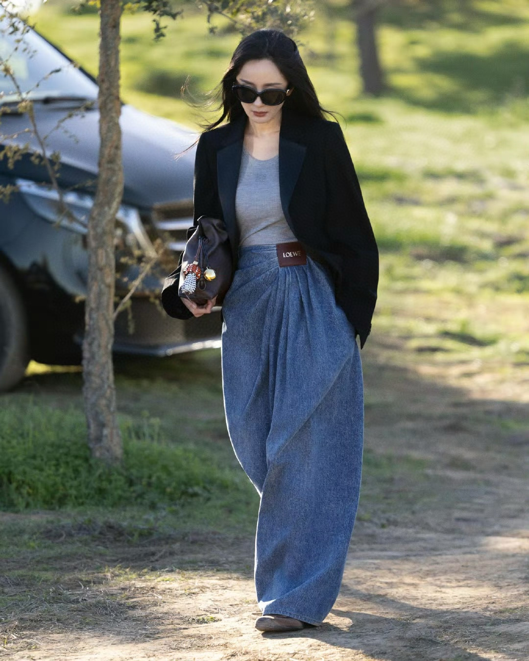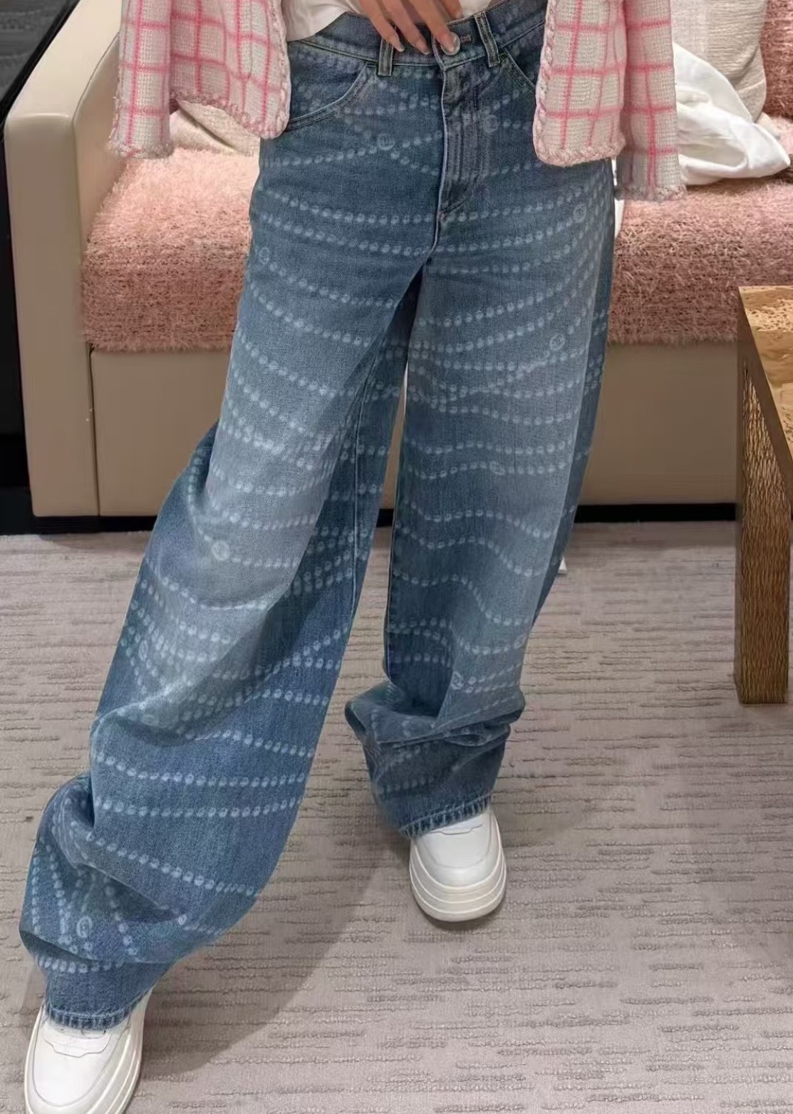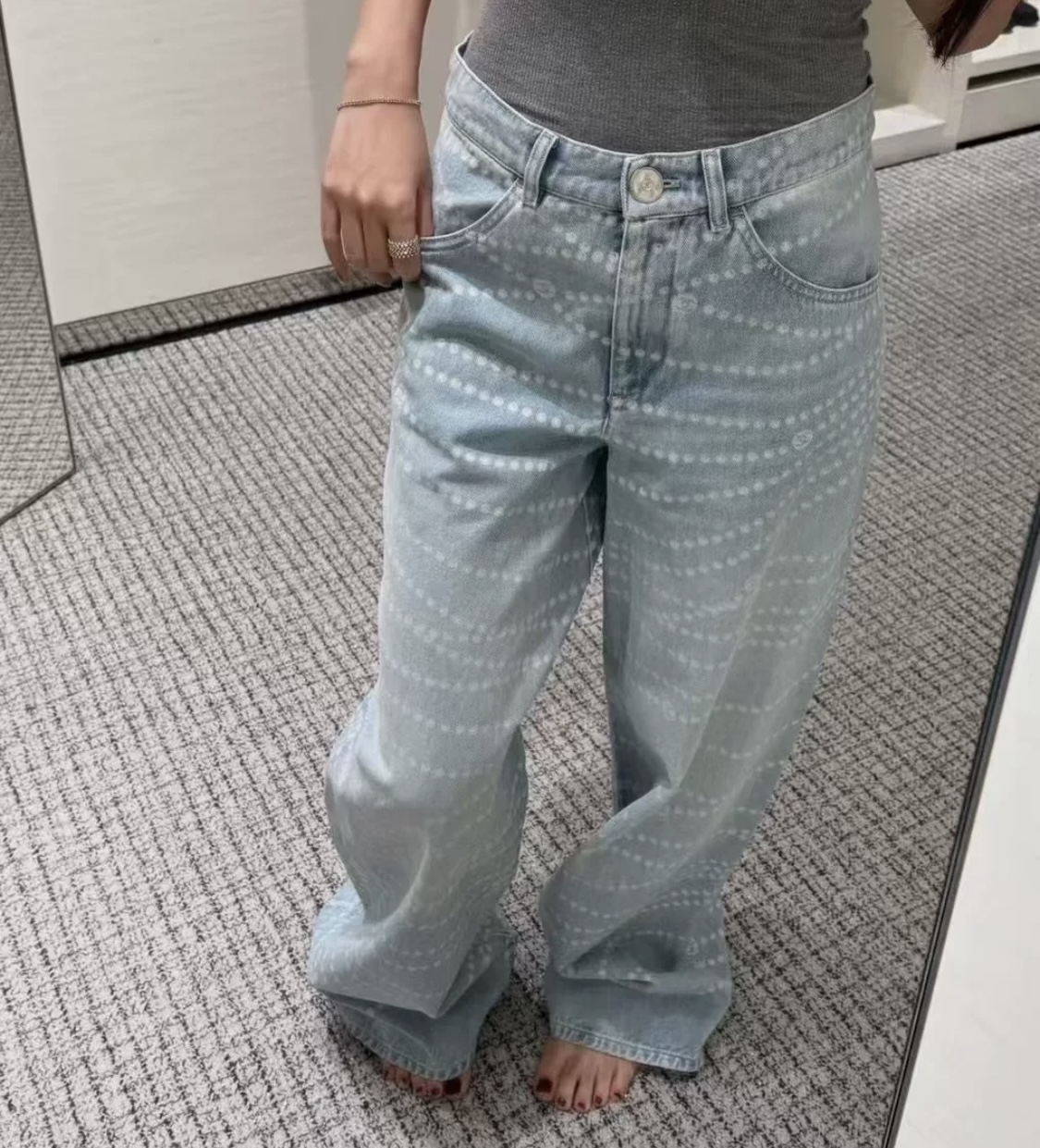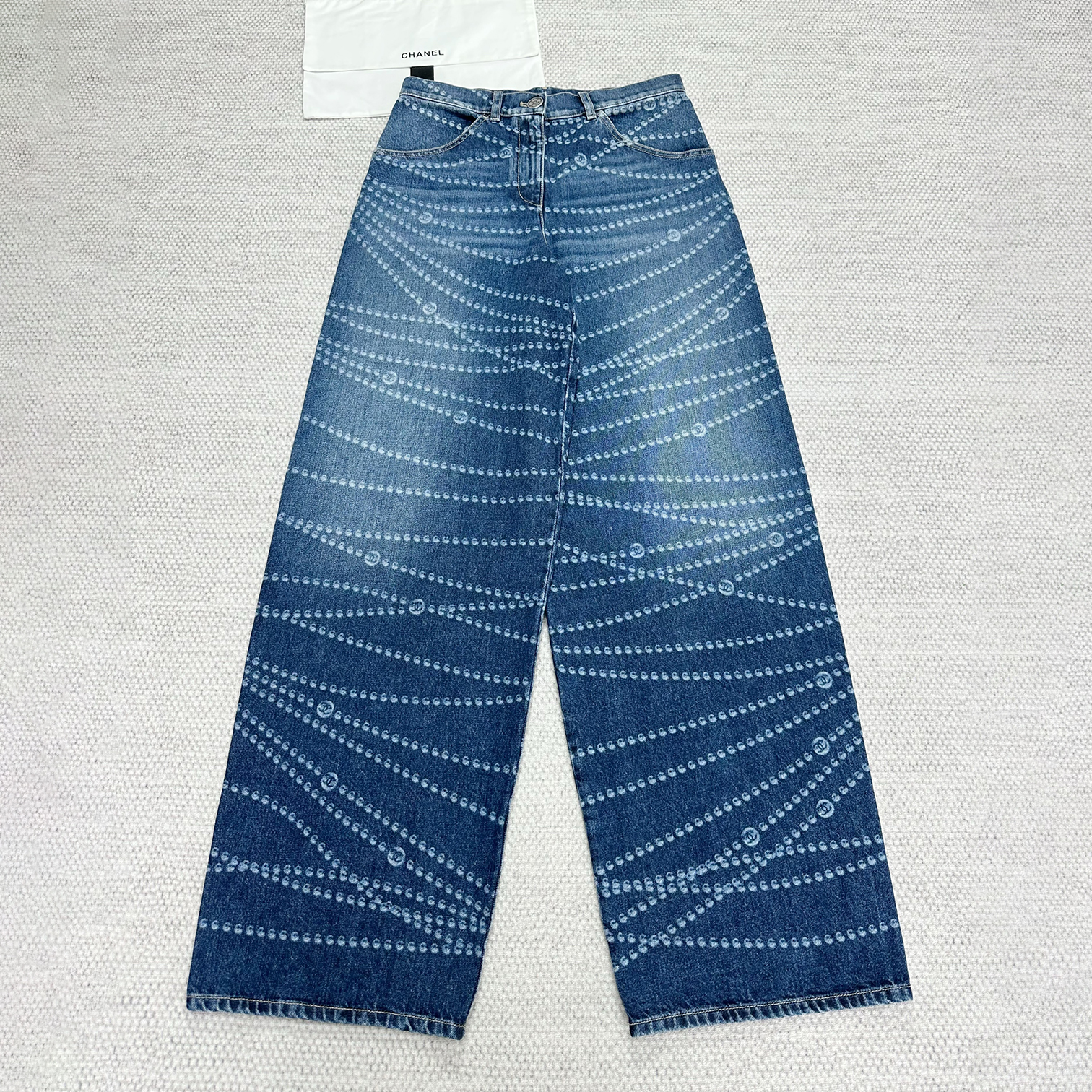 NIGO Chanel Women's Chain Printed Zipper Casual Wide Leg Pants Four Seasons Loose Cotton Denim Trousers Pants #nigo76228
