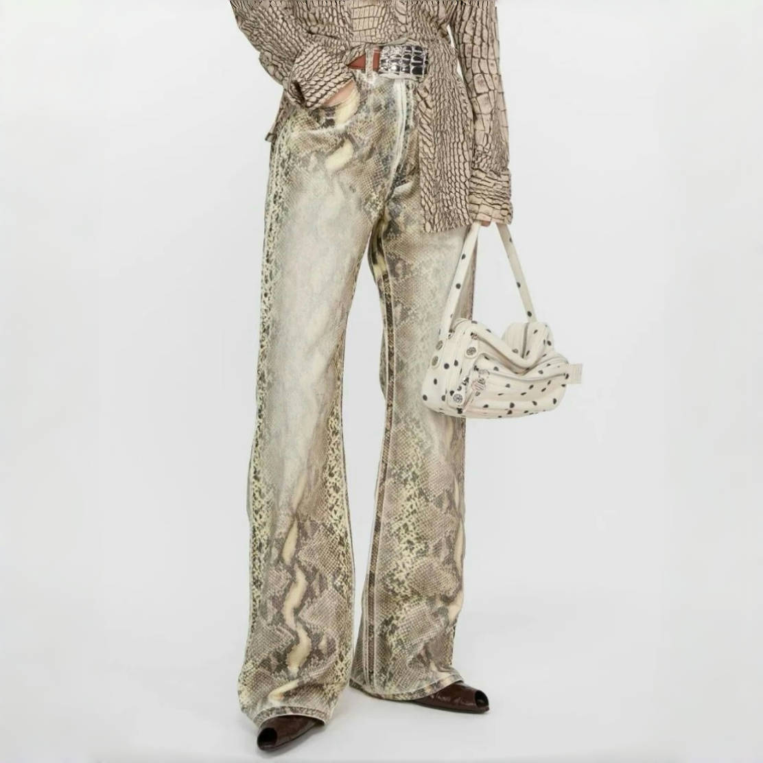 NIGO Acne Studios Women's Four Seasons Python Print Mid Waist Loose Cotton Micro Raglan Denim Pants Ngvp #nigo1544