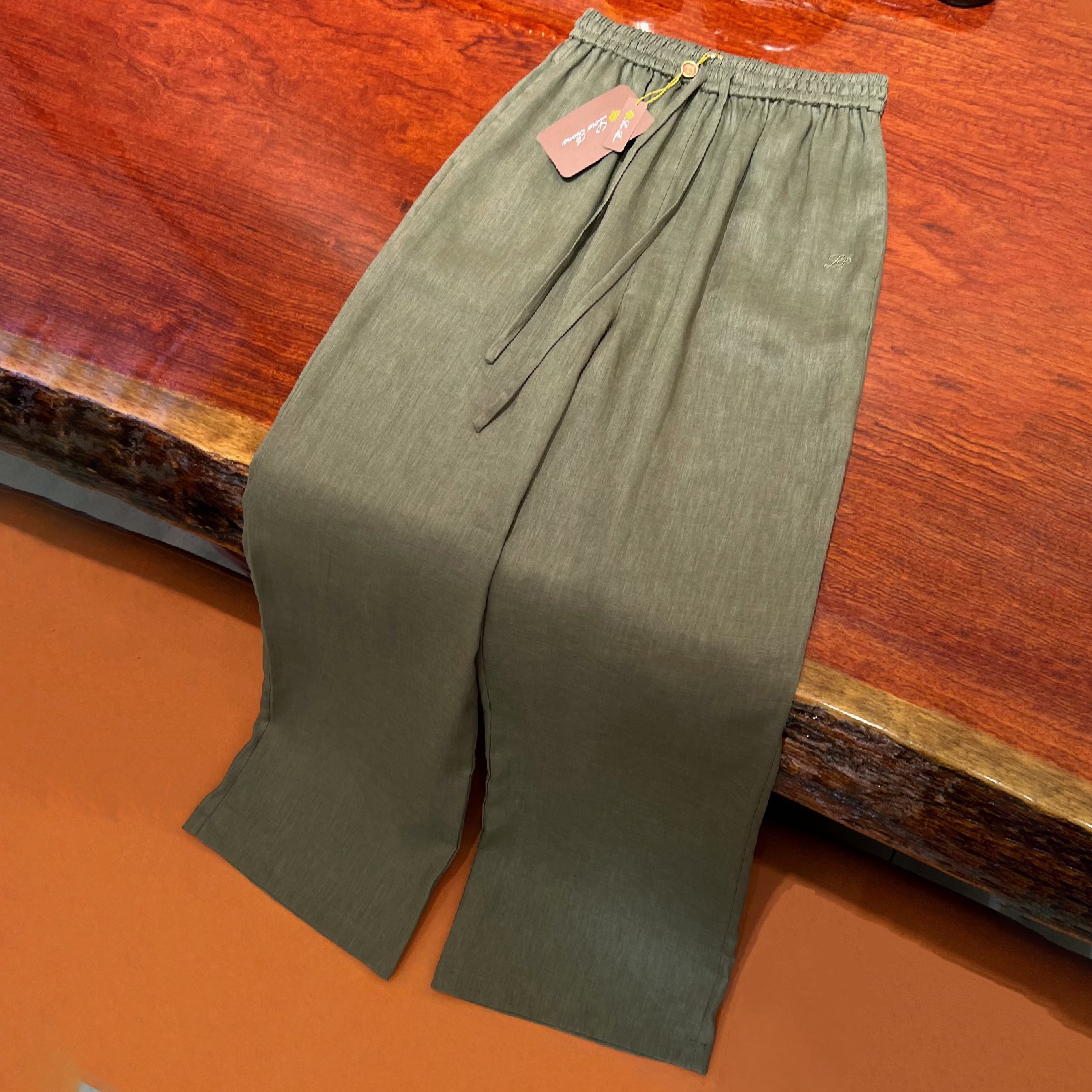 NIGO Dior Women's Spring/Summer Solid Color Jacquard Stripe Elastic Waist Tie Flare Casual Pants #nigo76145
