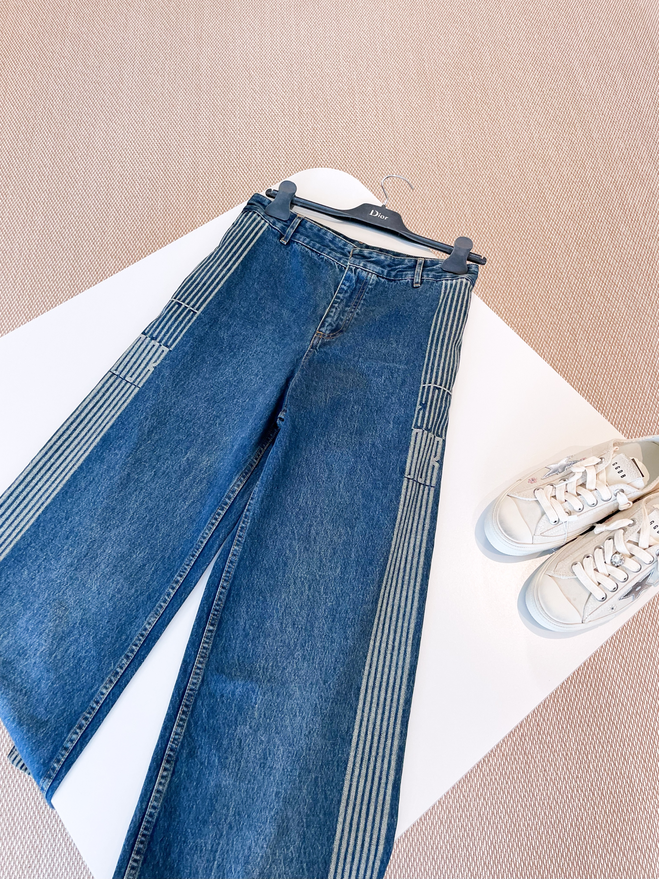NIGO Dior Women's Spring Autumn Blue Cotton Denim Dior Graphique Patterned Trousers Pants #nigo76924