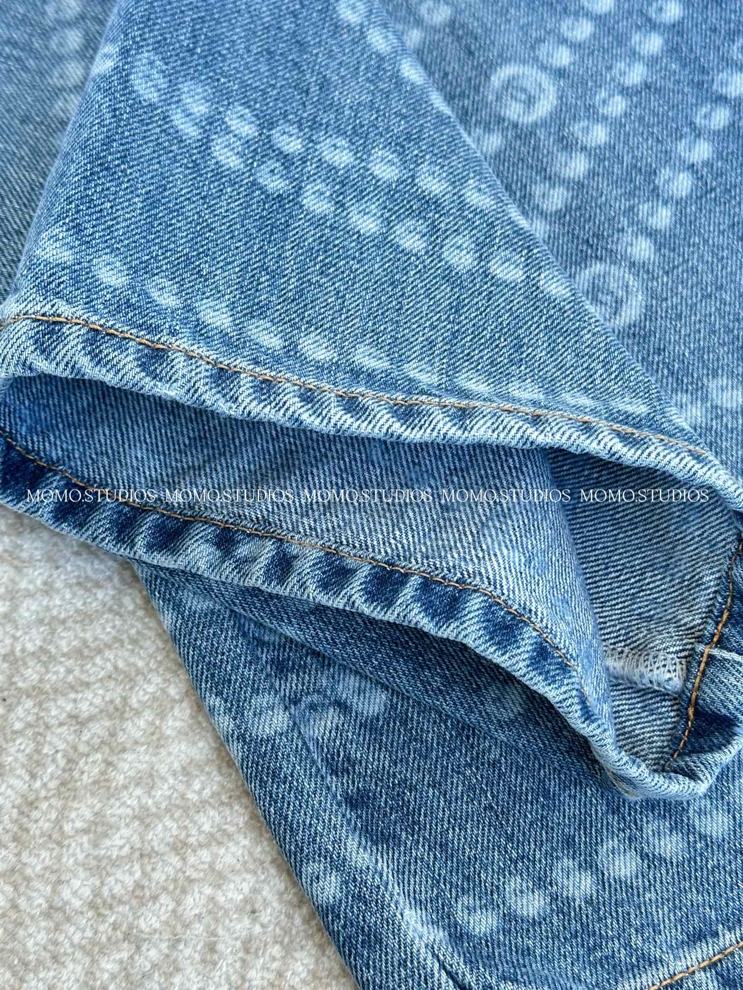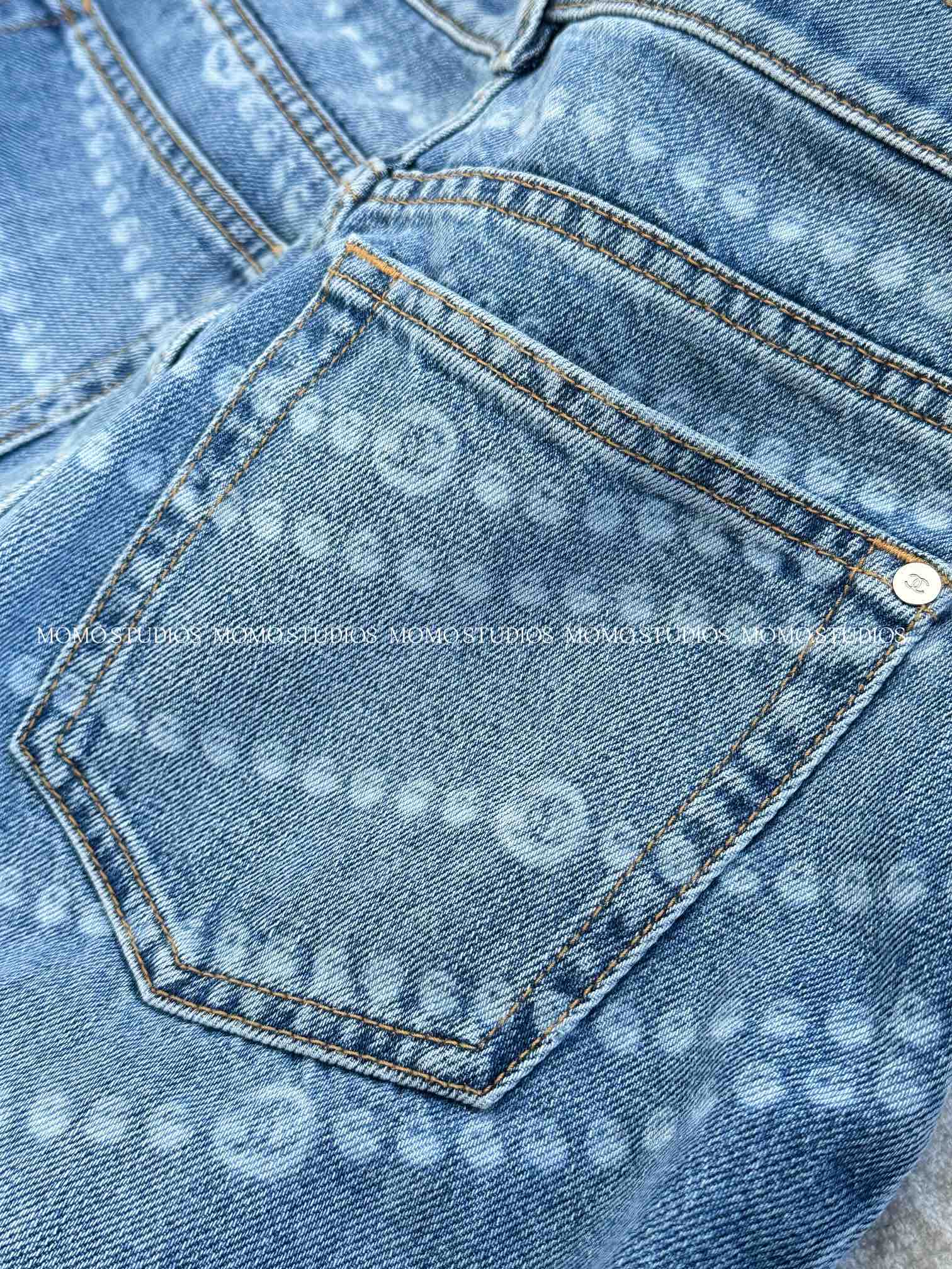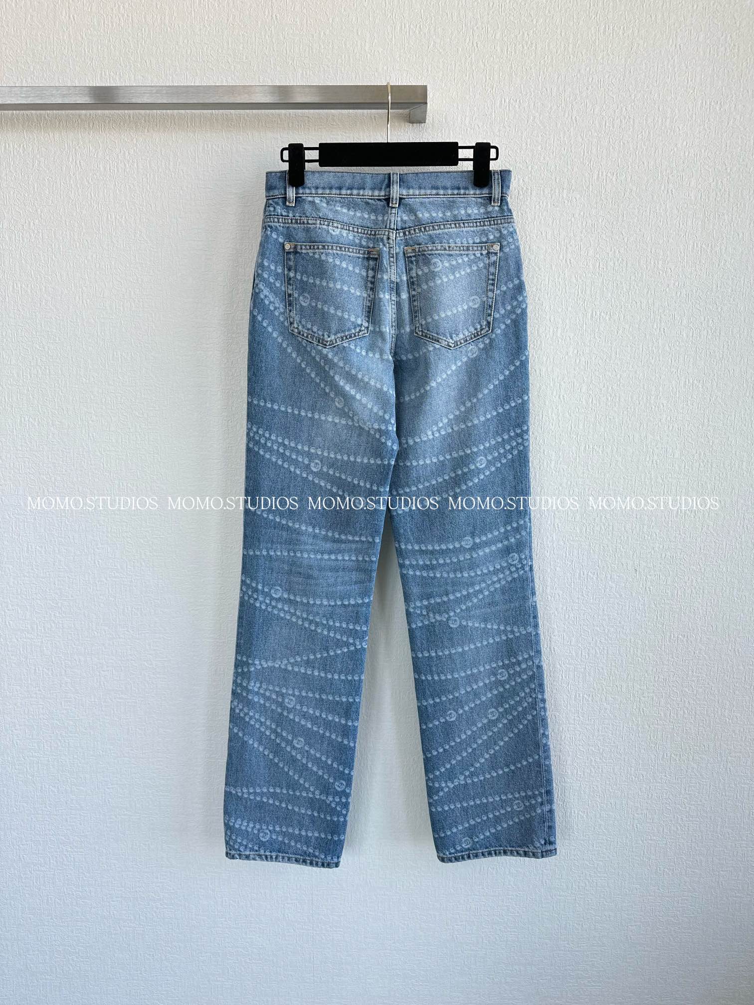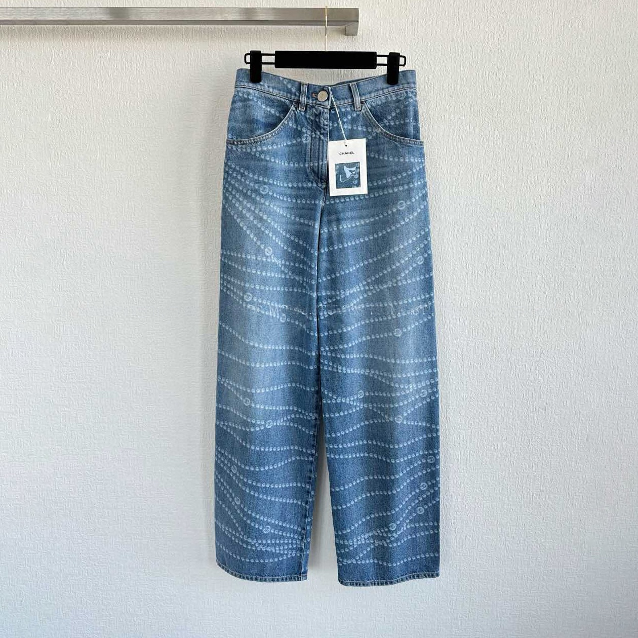 NIGO Chanel Women's Spring and Autumn Blue Printed Washed Cotton Button Straight Long Jeans Pants #nigo75498