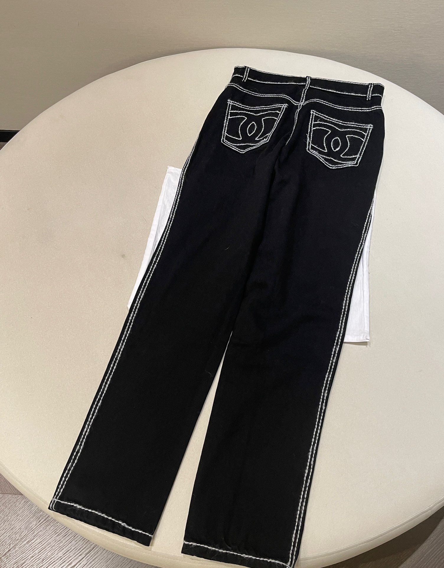 NIGO Chanel Women's Autumn and Winter Solid Color White Line Casual Jeans Pants #nigo75569