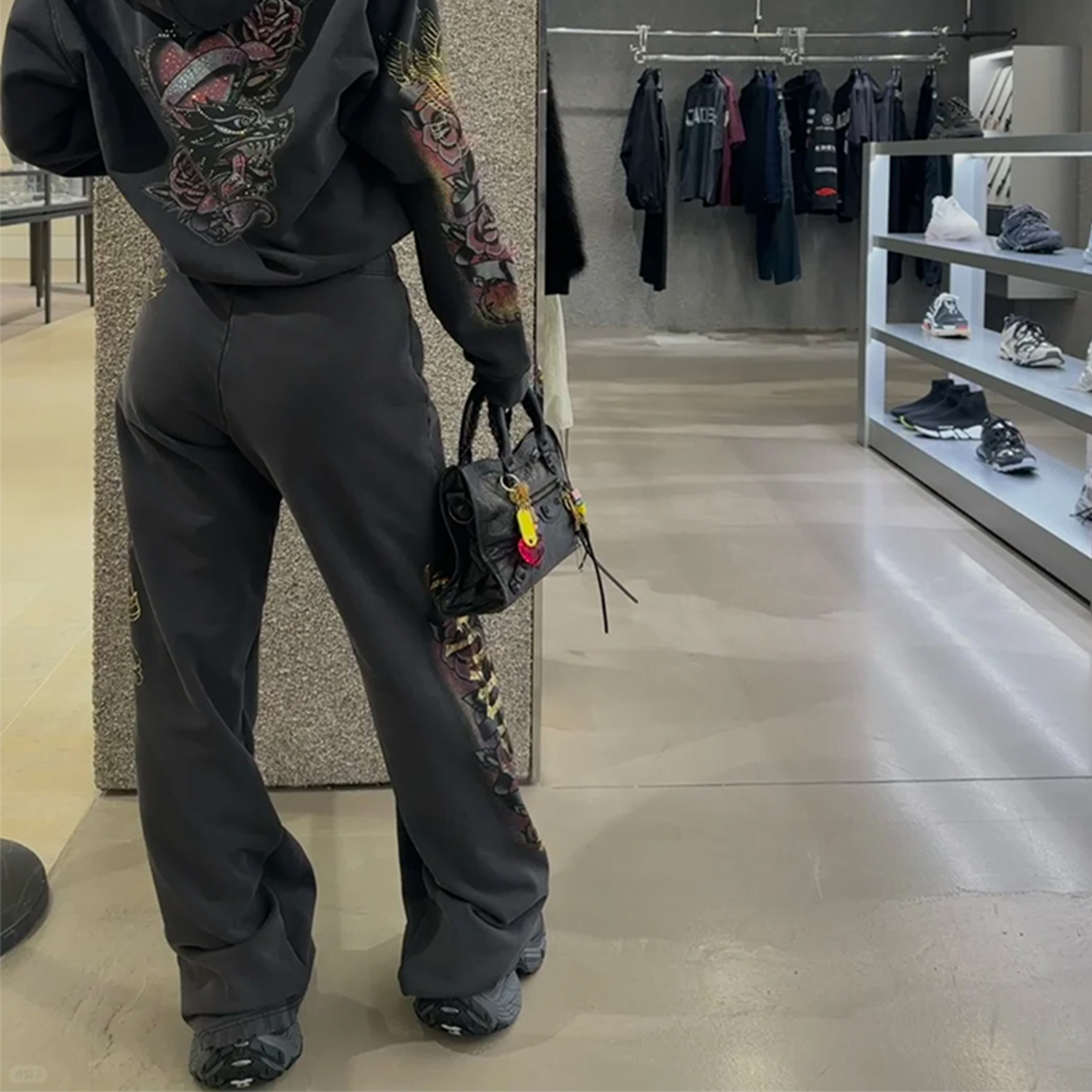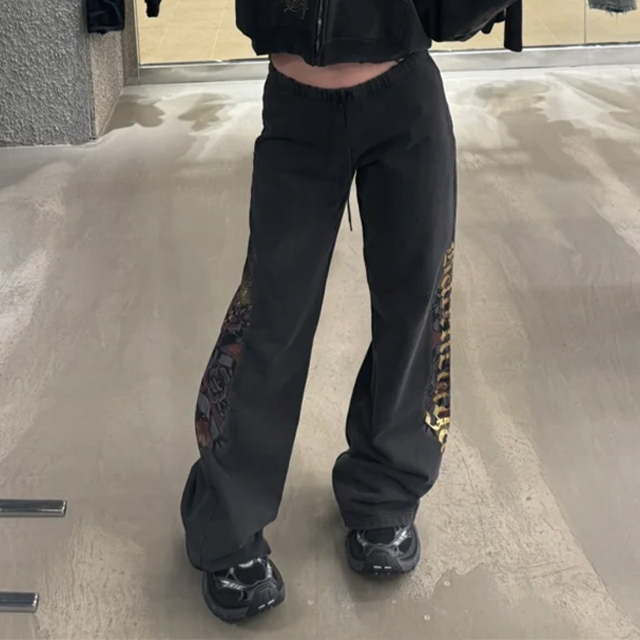 NIGO Loewe Women's Spring and Autumn Logo Print Solid Color Low Rise Zipper Loose Jeans Pants #nigo75751