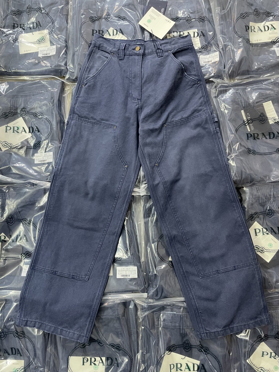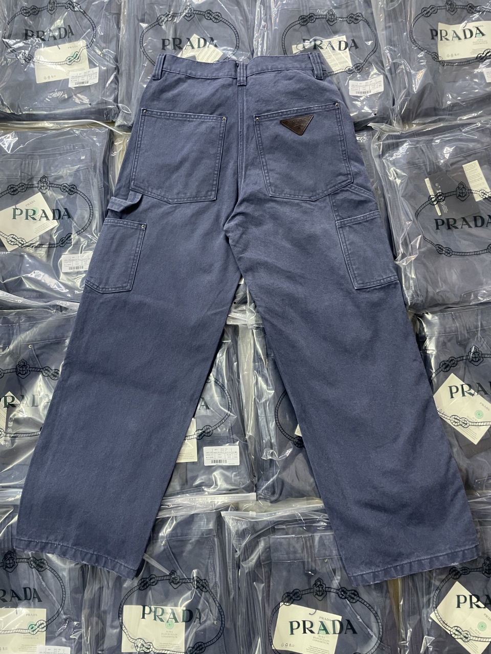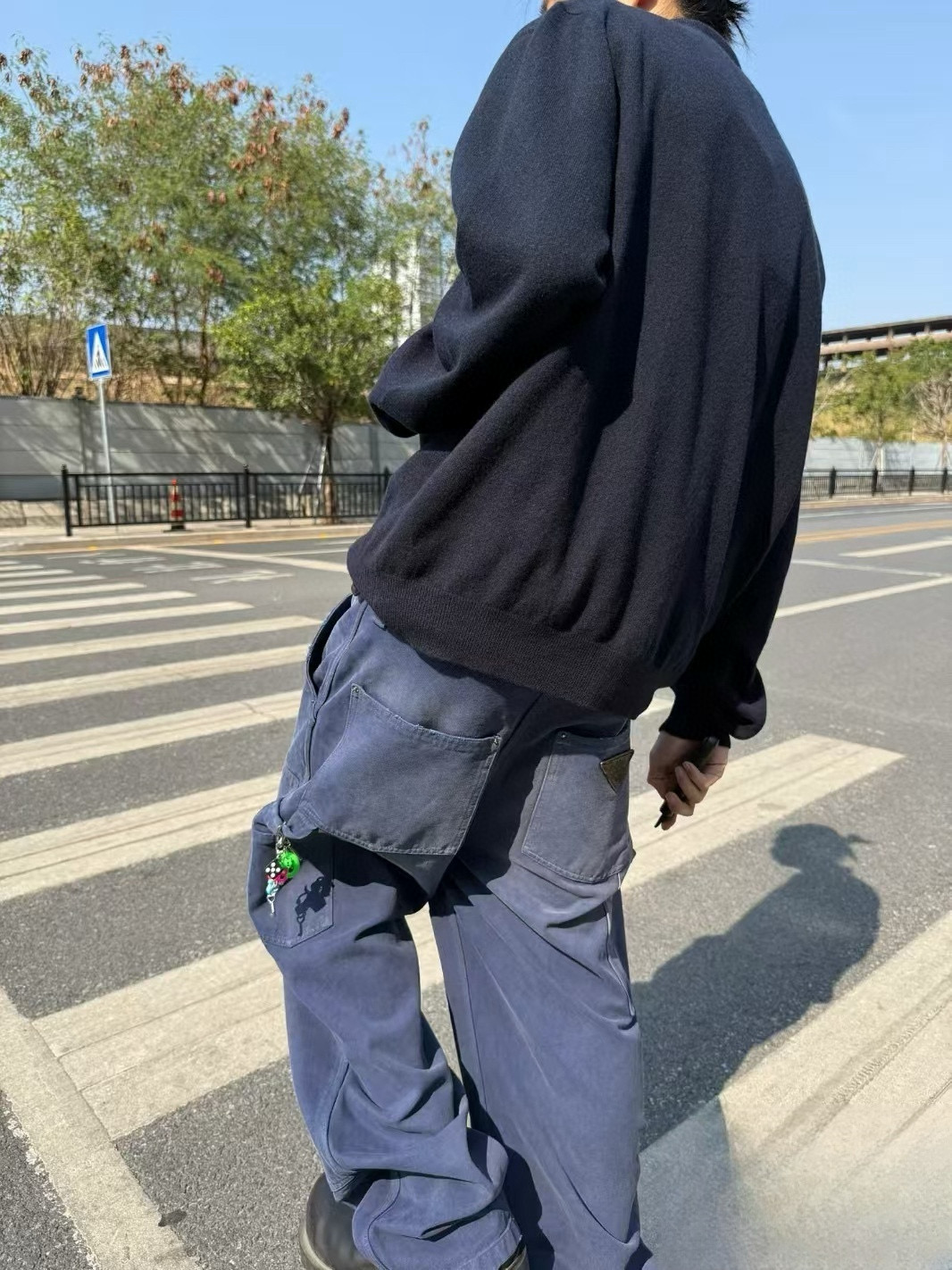 NIGO Prada Women's Spring and Autumn Triangle Label Logo Decoration Straight Vintage Jeans Pants #nigo75853