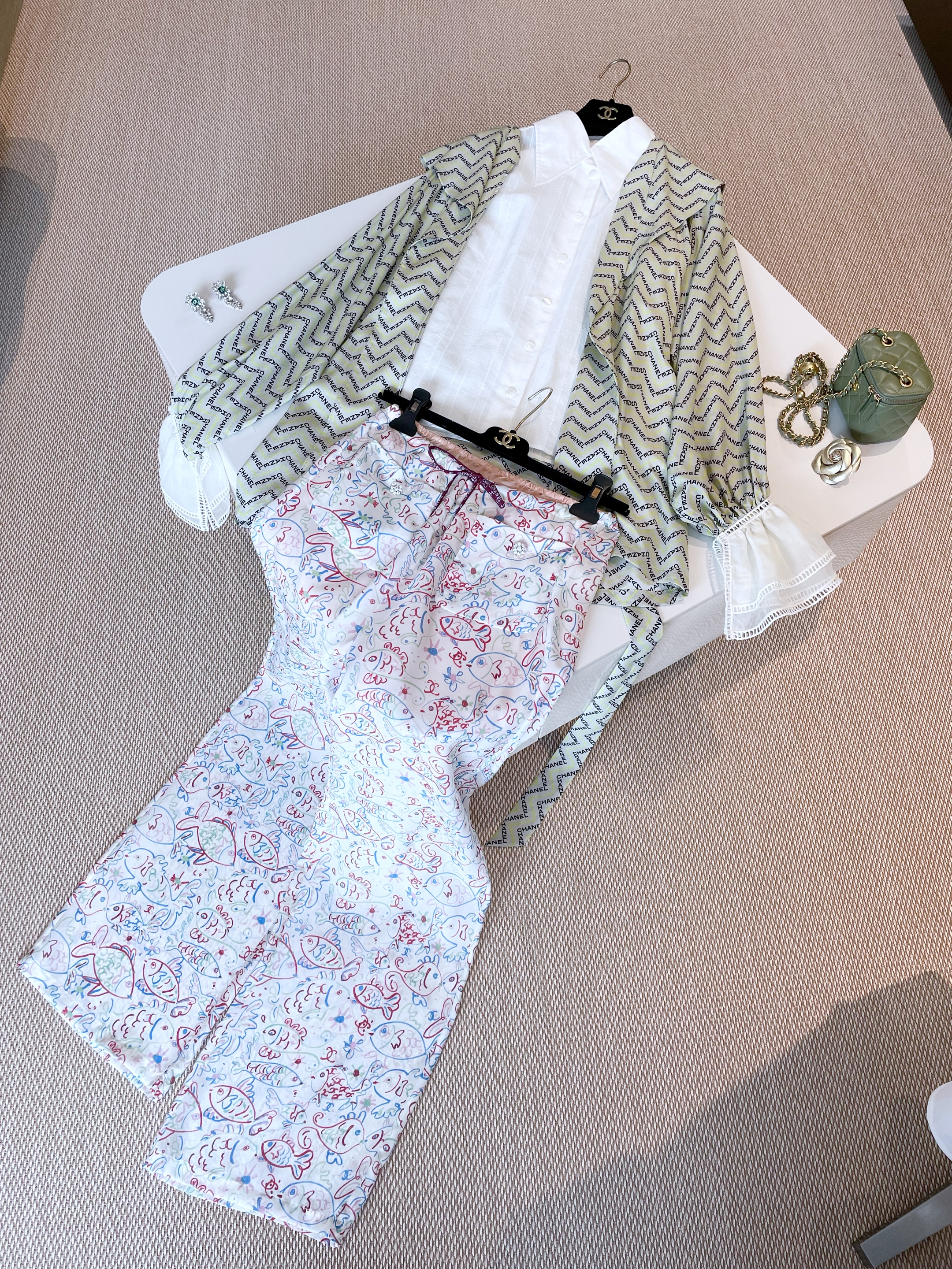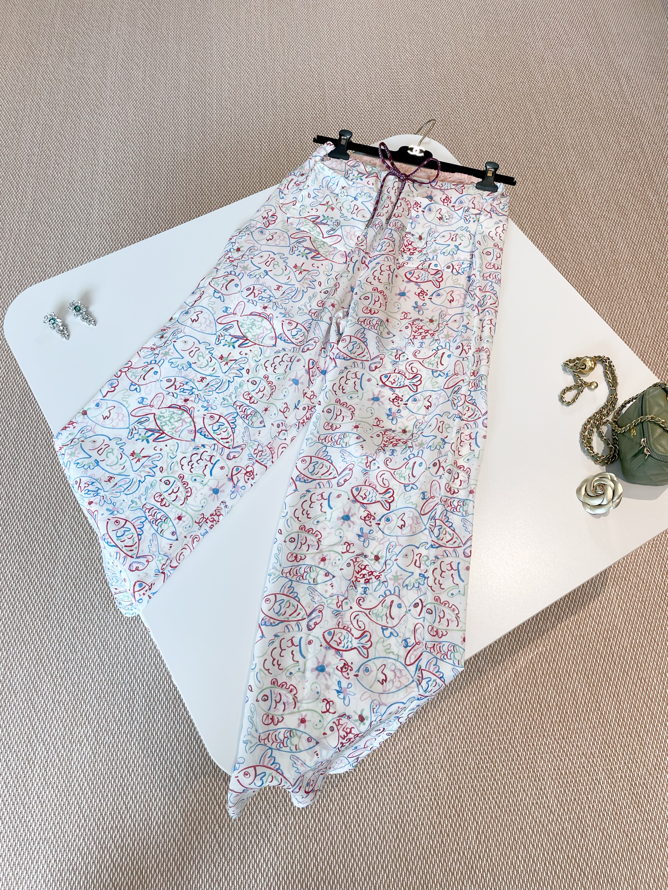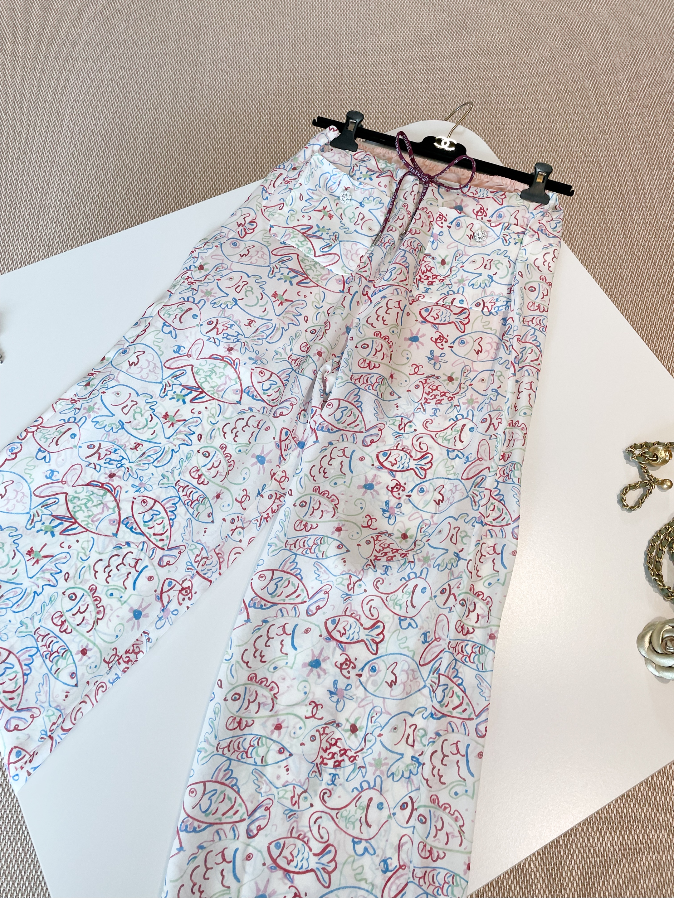 NIGO Chanel Women‘s Summer Colorful Fish Print Two Piece Silk Casual Pants #nigo75883