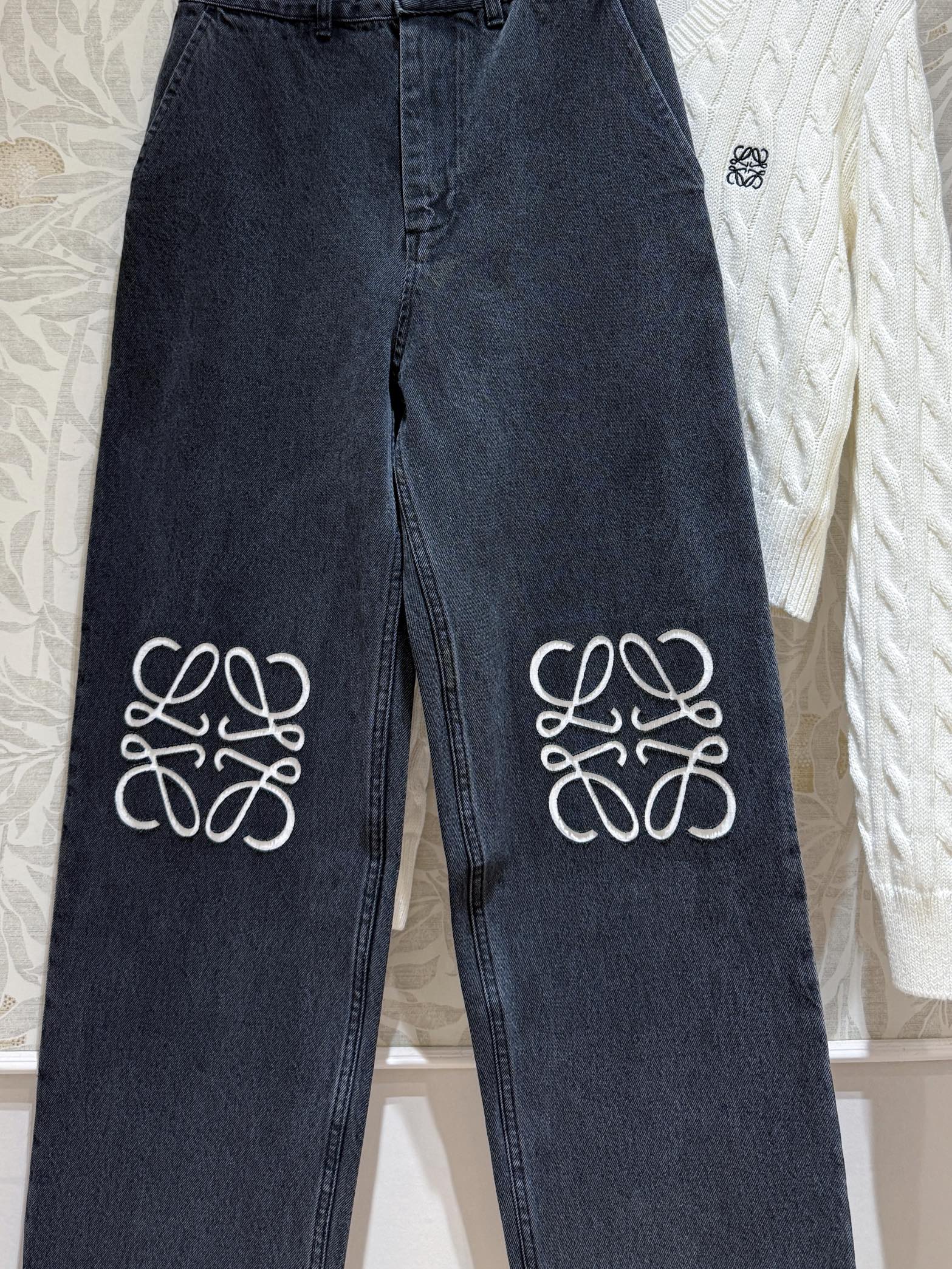 NIGO Loewe Women's Spring and Autumn Logo Print Black Low Rise Zipper Loose Jeans Pants #nigo74754