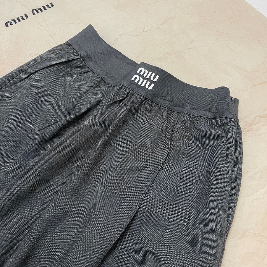 NIGO MiuMiu Women's Spring and Autumn Gray Check Elastic Mid Waist Wide Leg Casual Pants #nigo74783