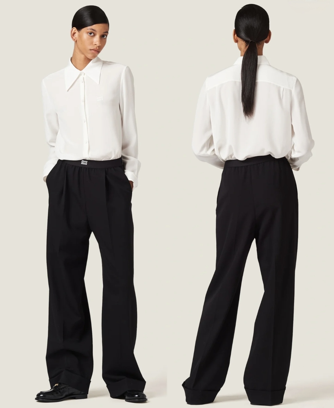 NIGO MiuMiu Women's Spring and Autumn Solid Color Elastic Mid Waist Wide Leg Casual Pants #nigo74784