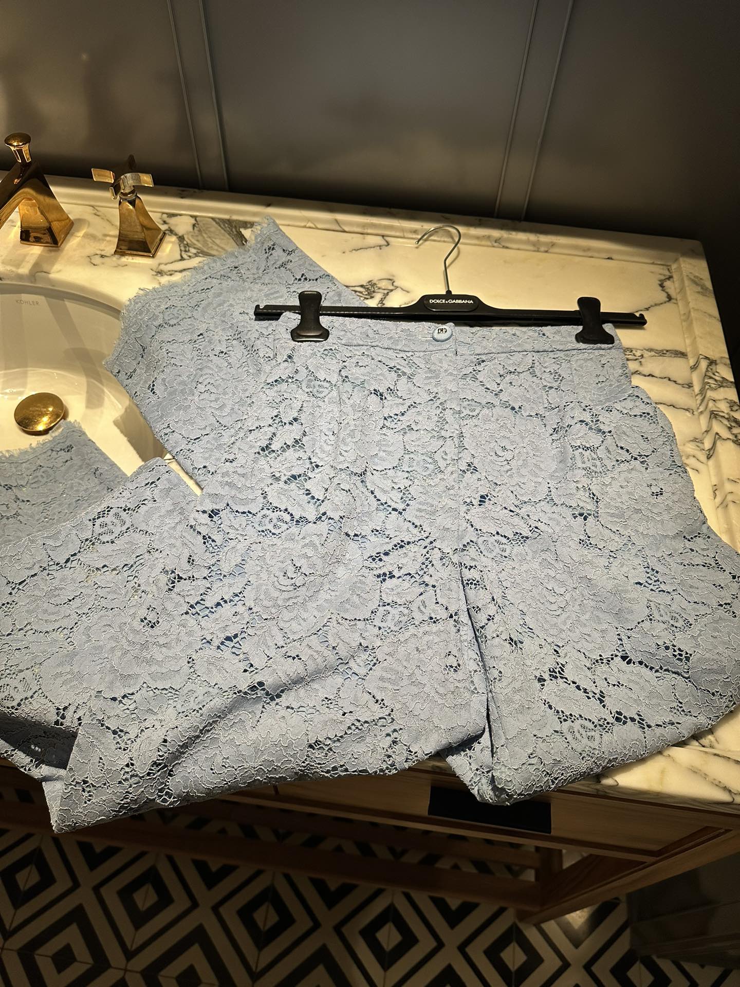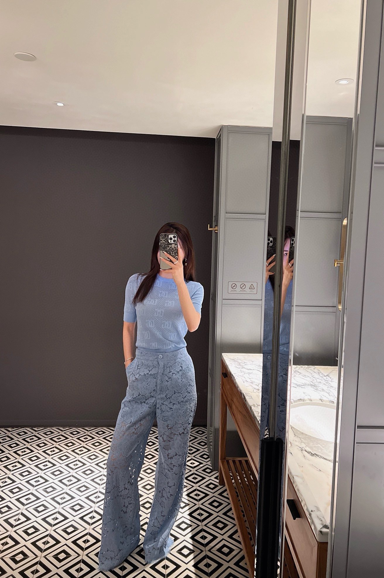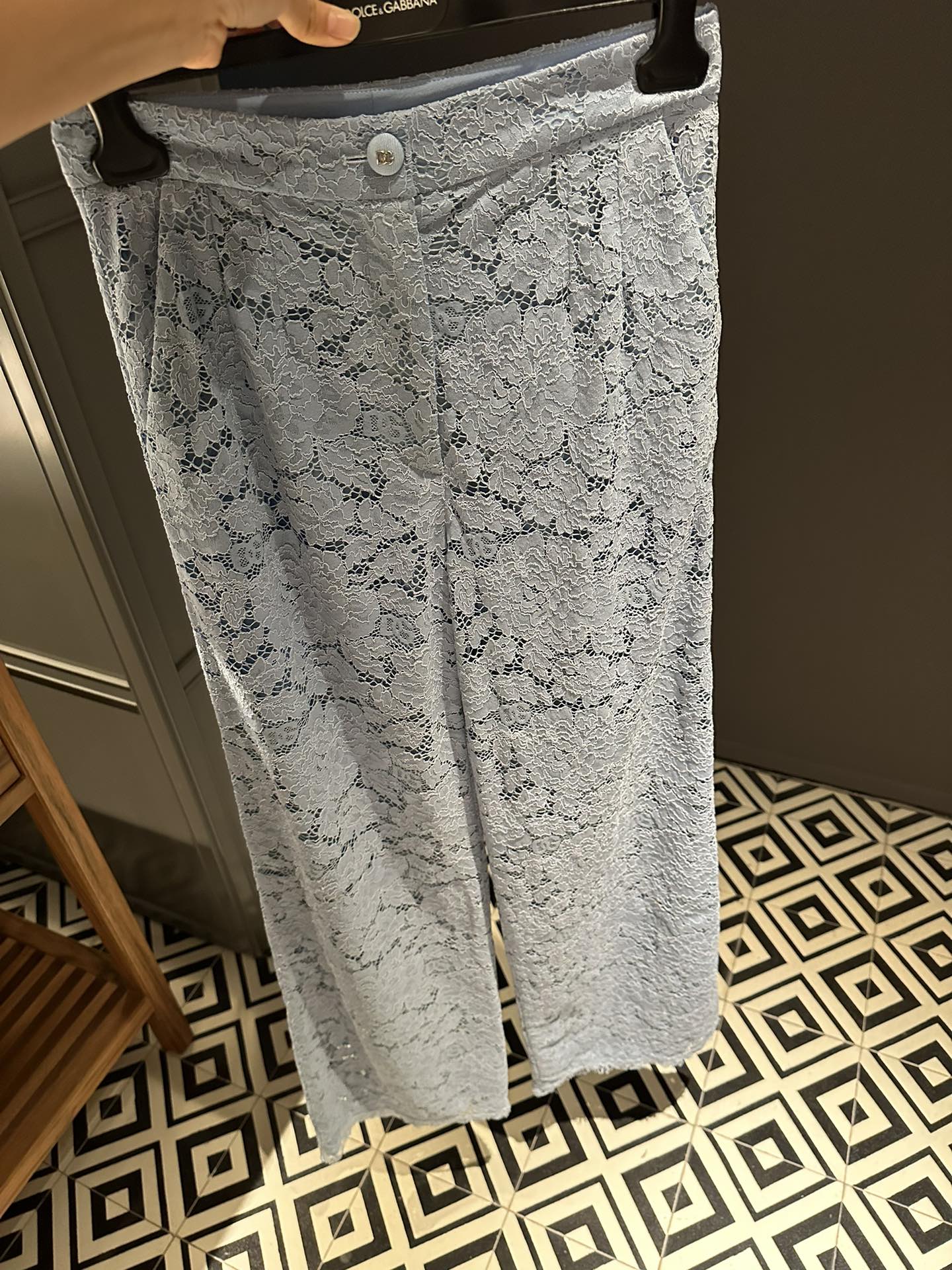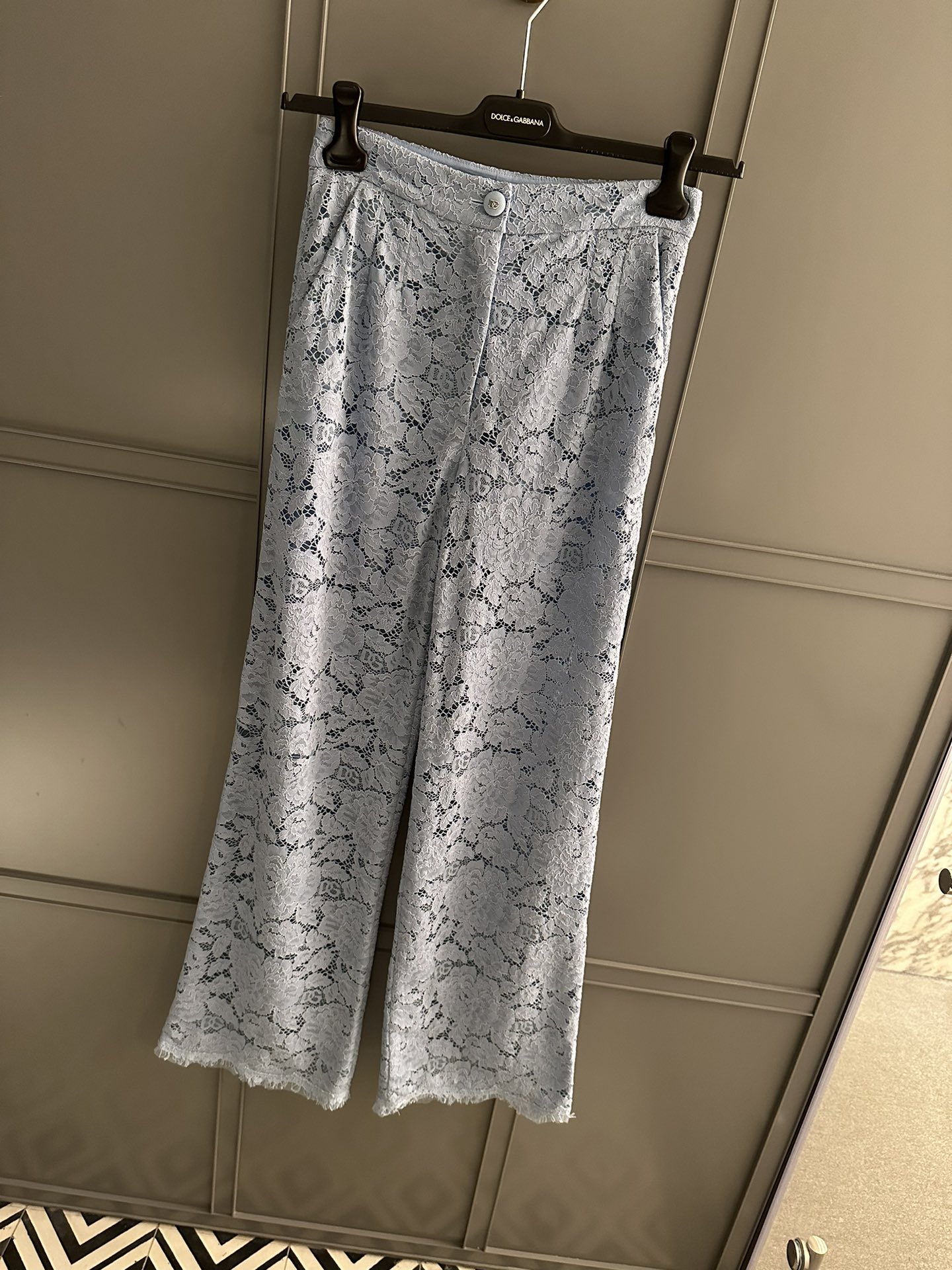 NIGO Dolce&Gabbana Women's Summer Blue Lace Hollow Out Breathable Pants #nigo73564
