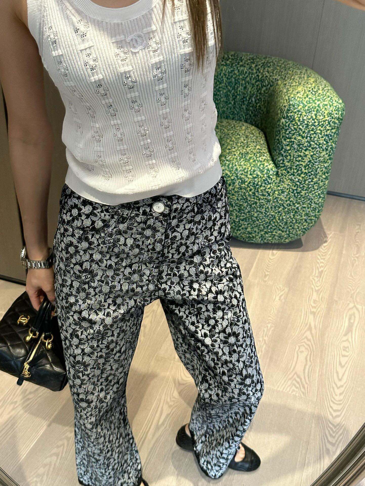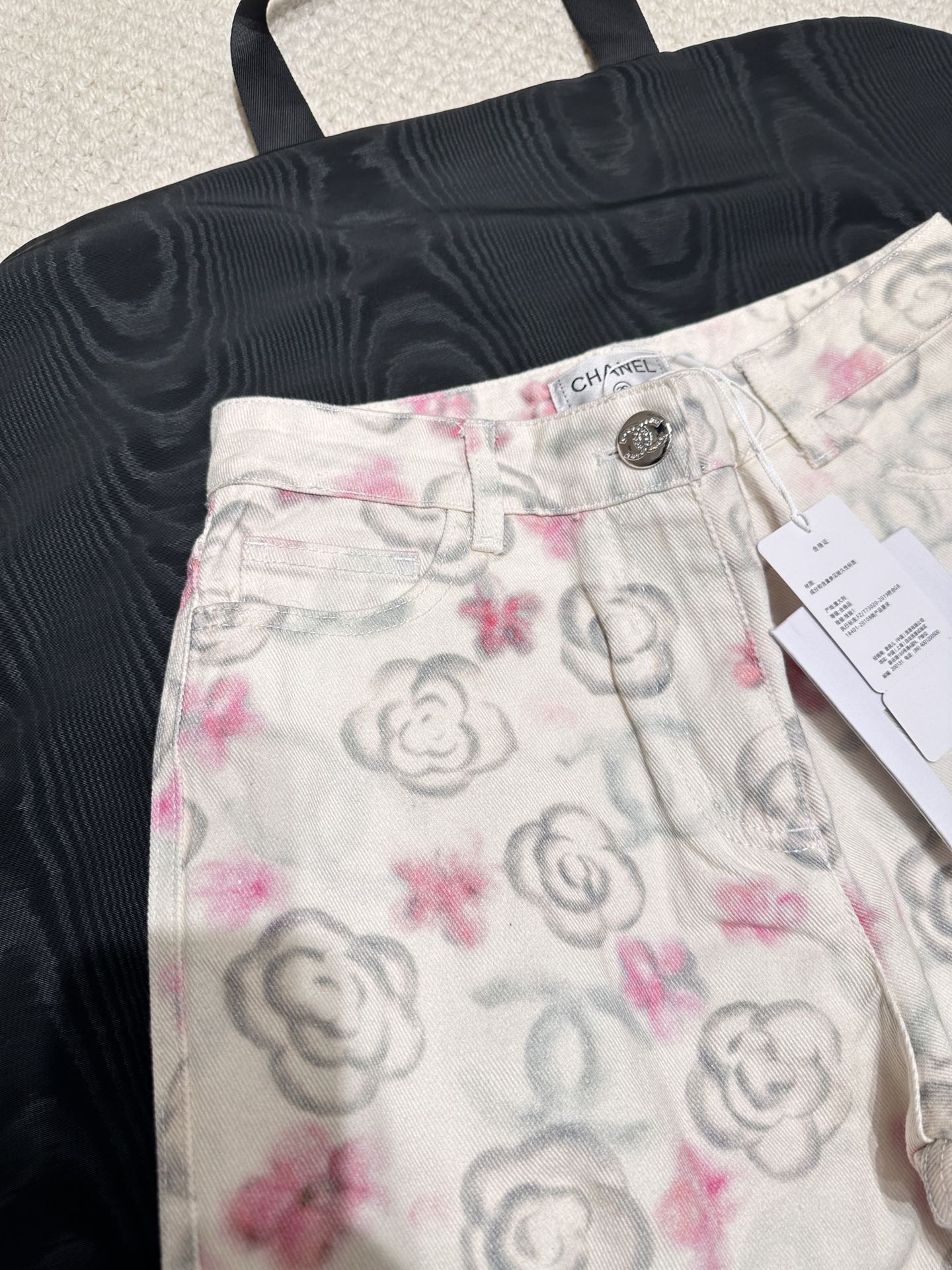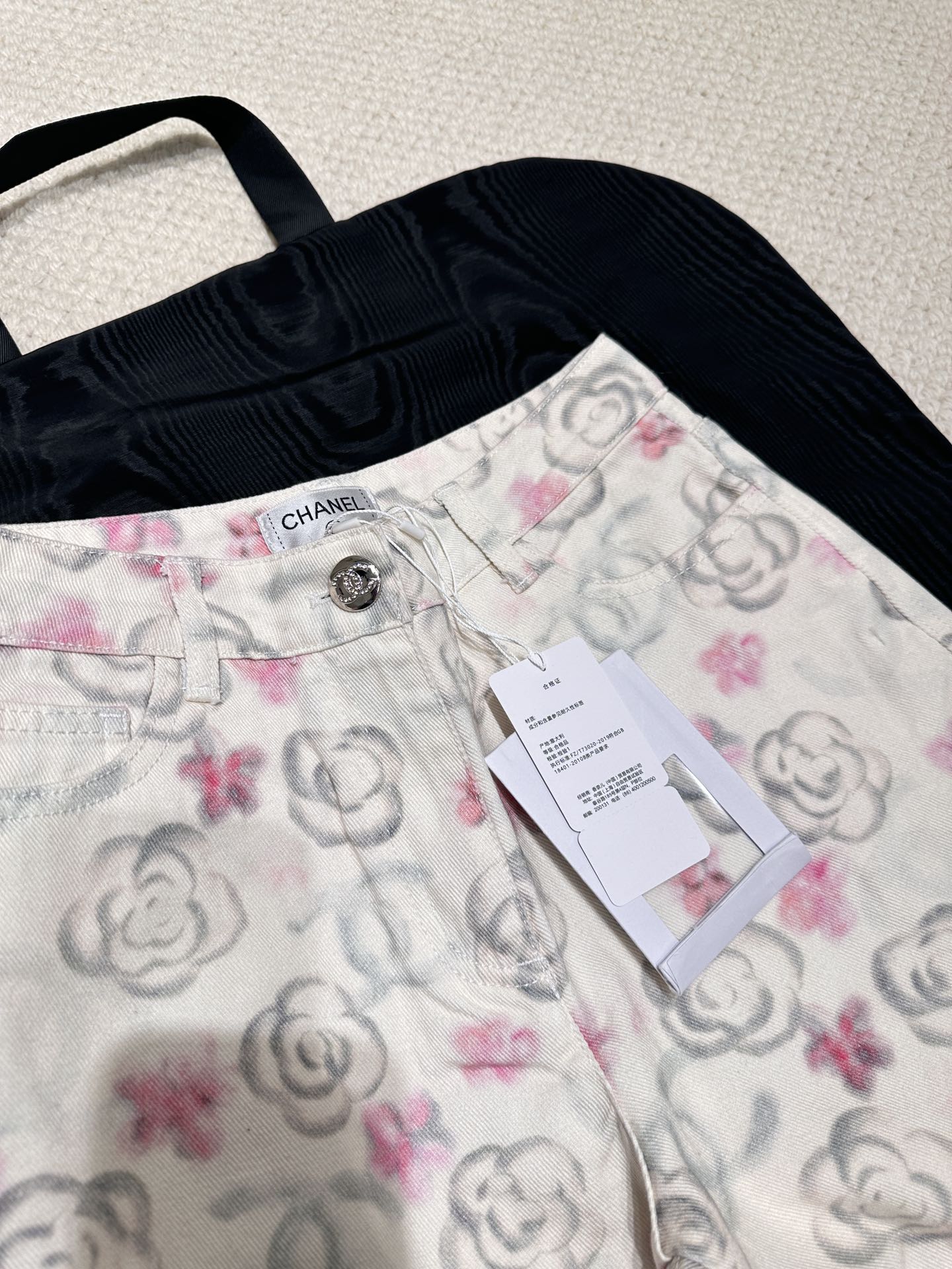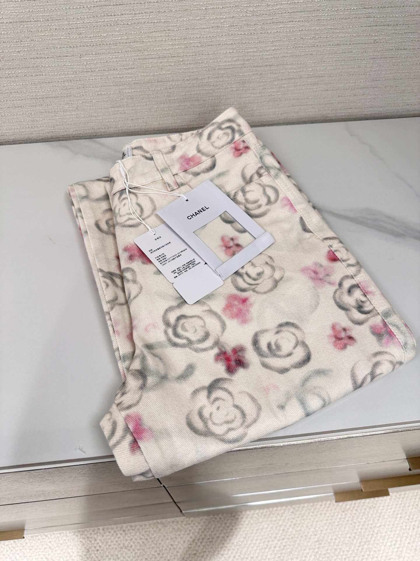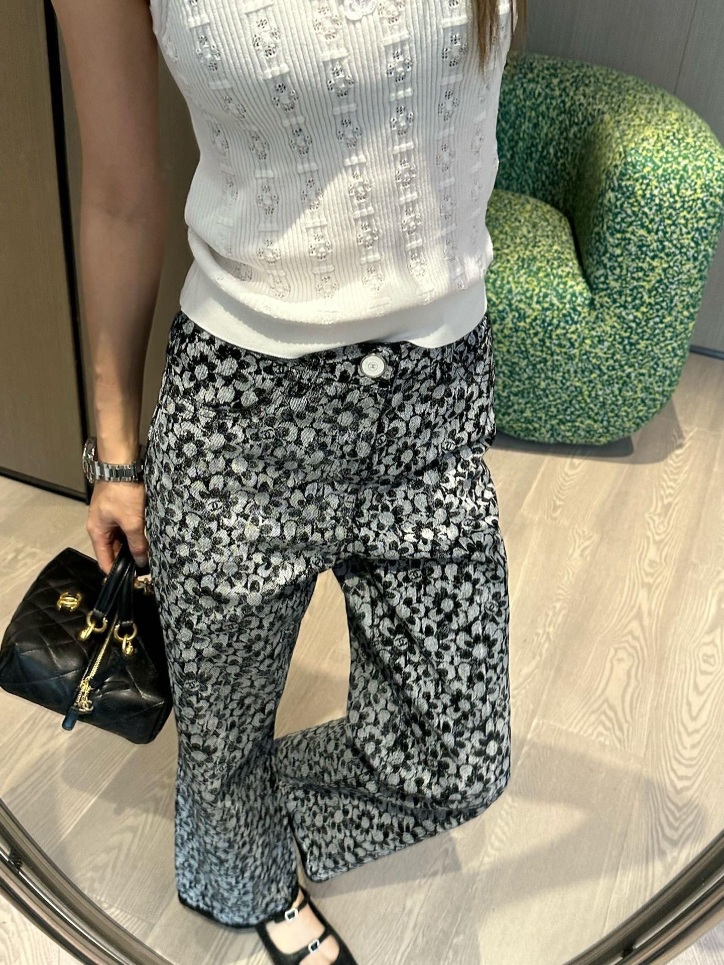 NIGO Chanel Women's Fall and Winter Floral Full Printed Pattern Straight Leg Jeans Pants #nigo74371