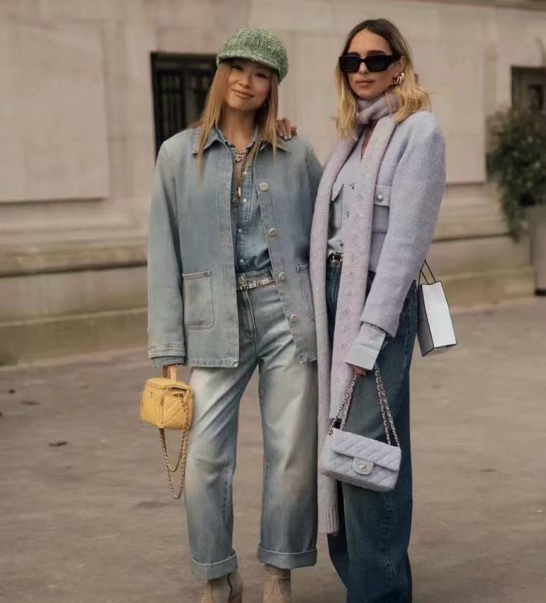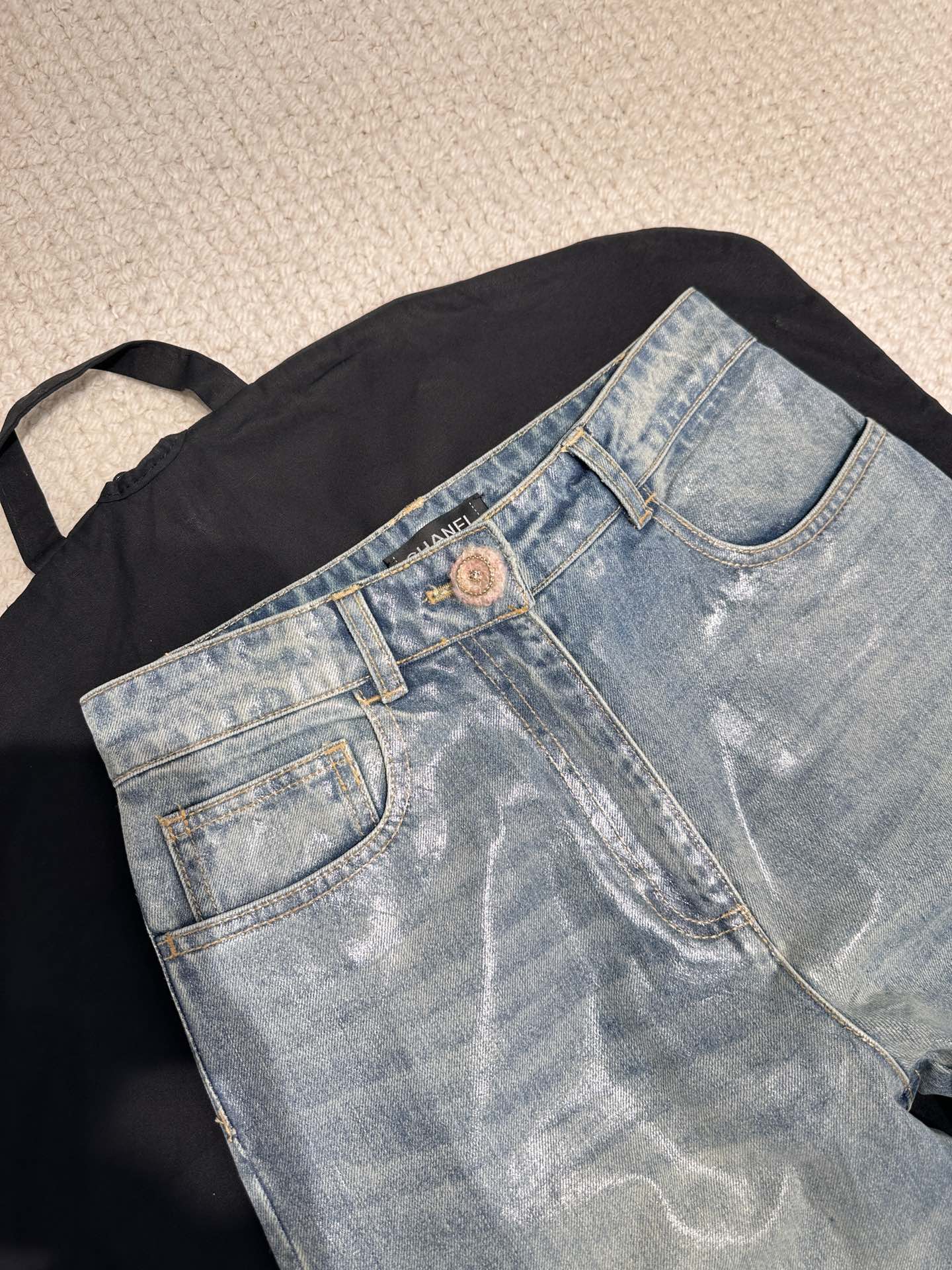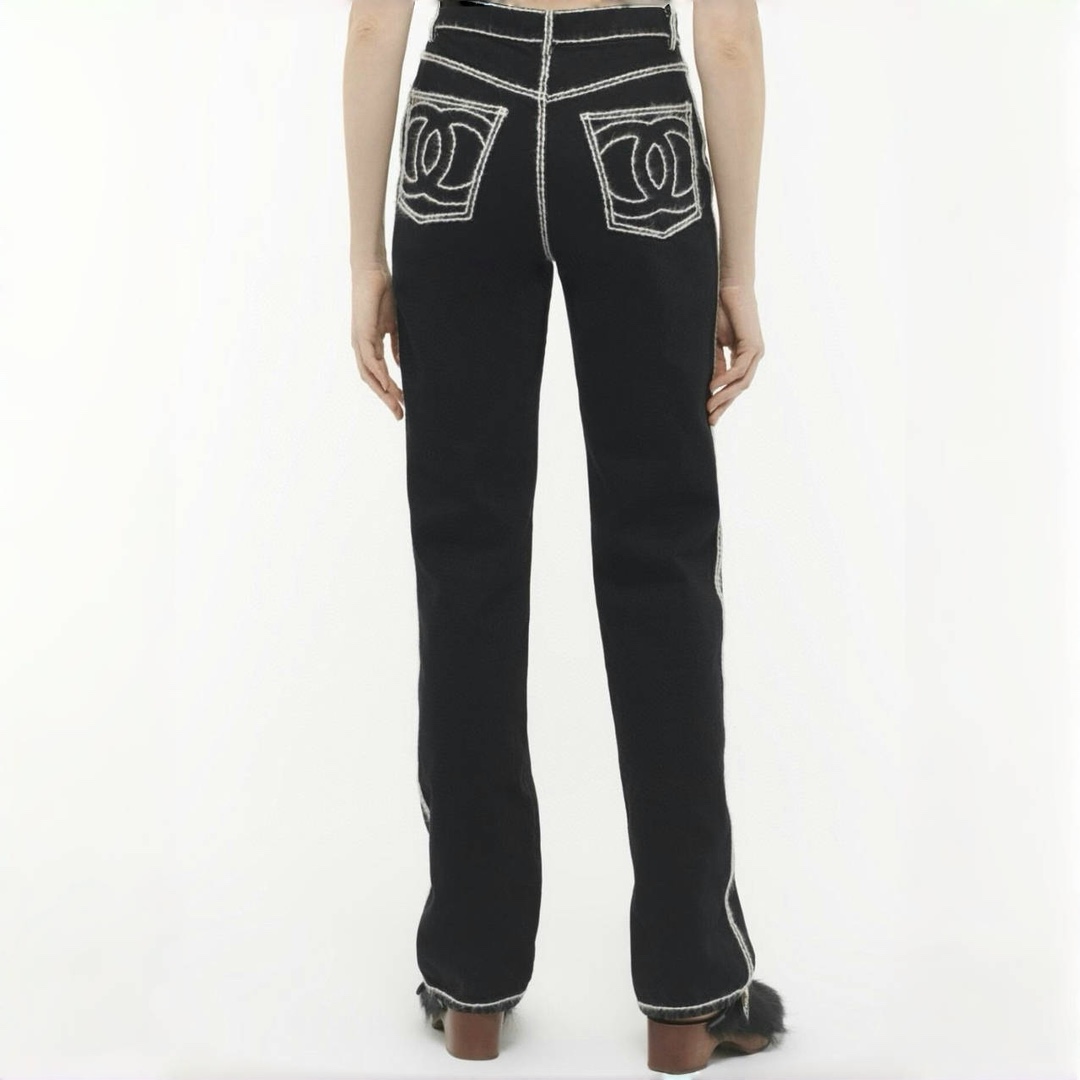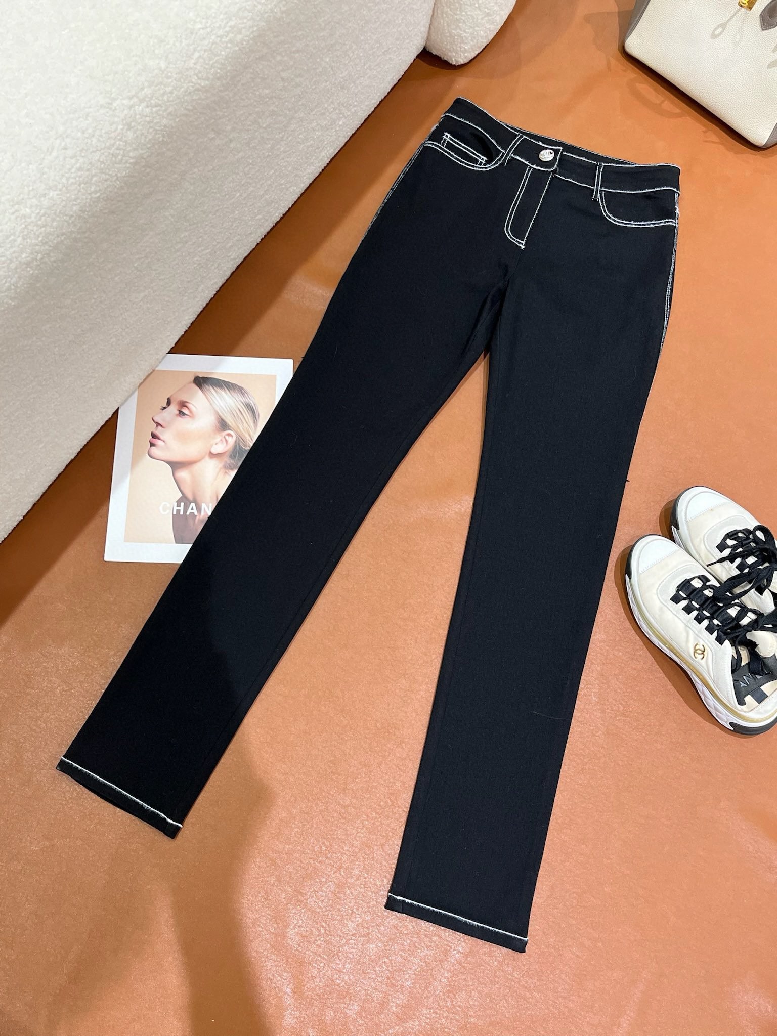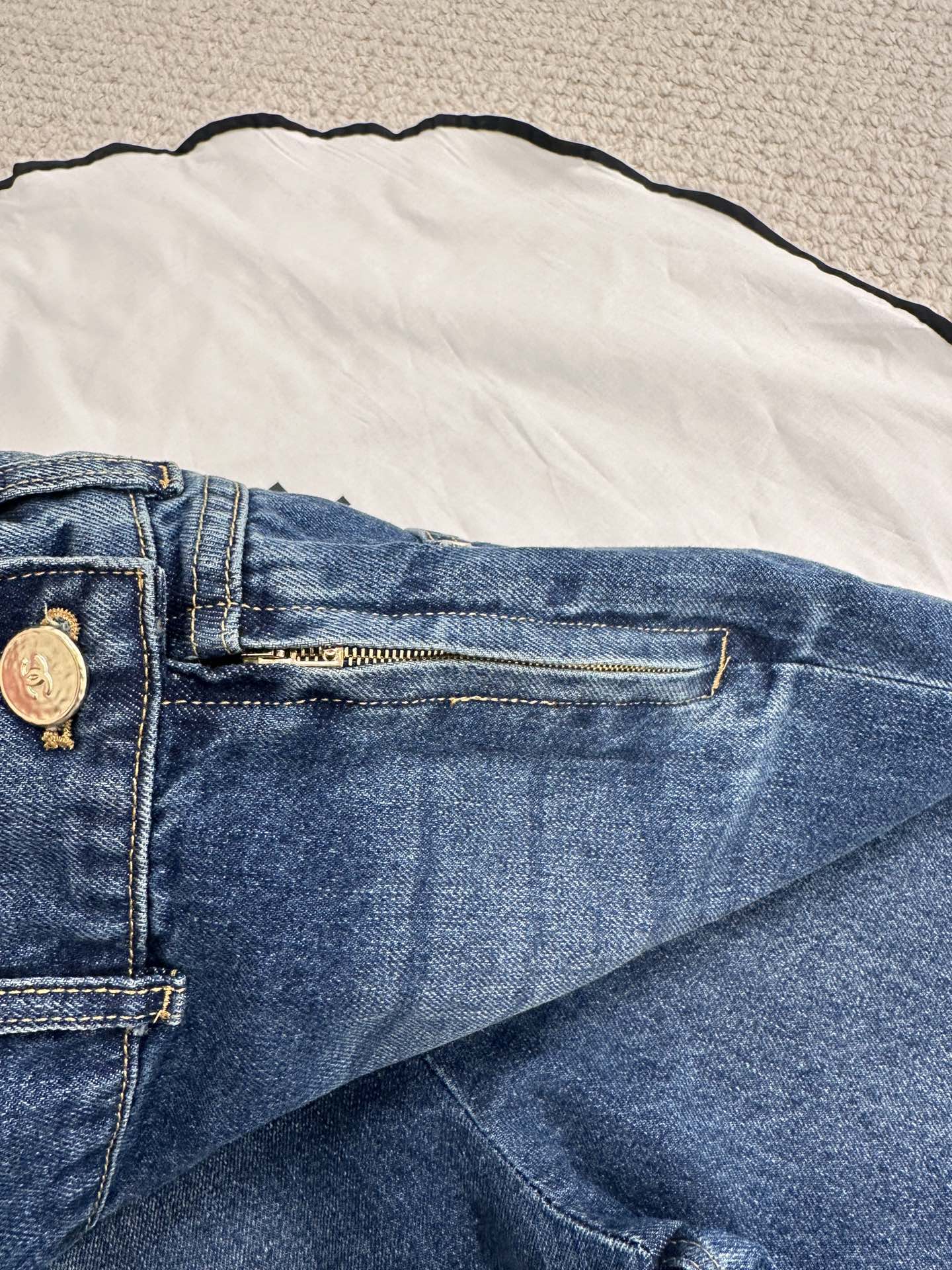 NIGO Chanel Women's Spring and Autumn Solid Color Zipper Closure Waterproof Coated Jeans Pants #nigo74368