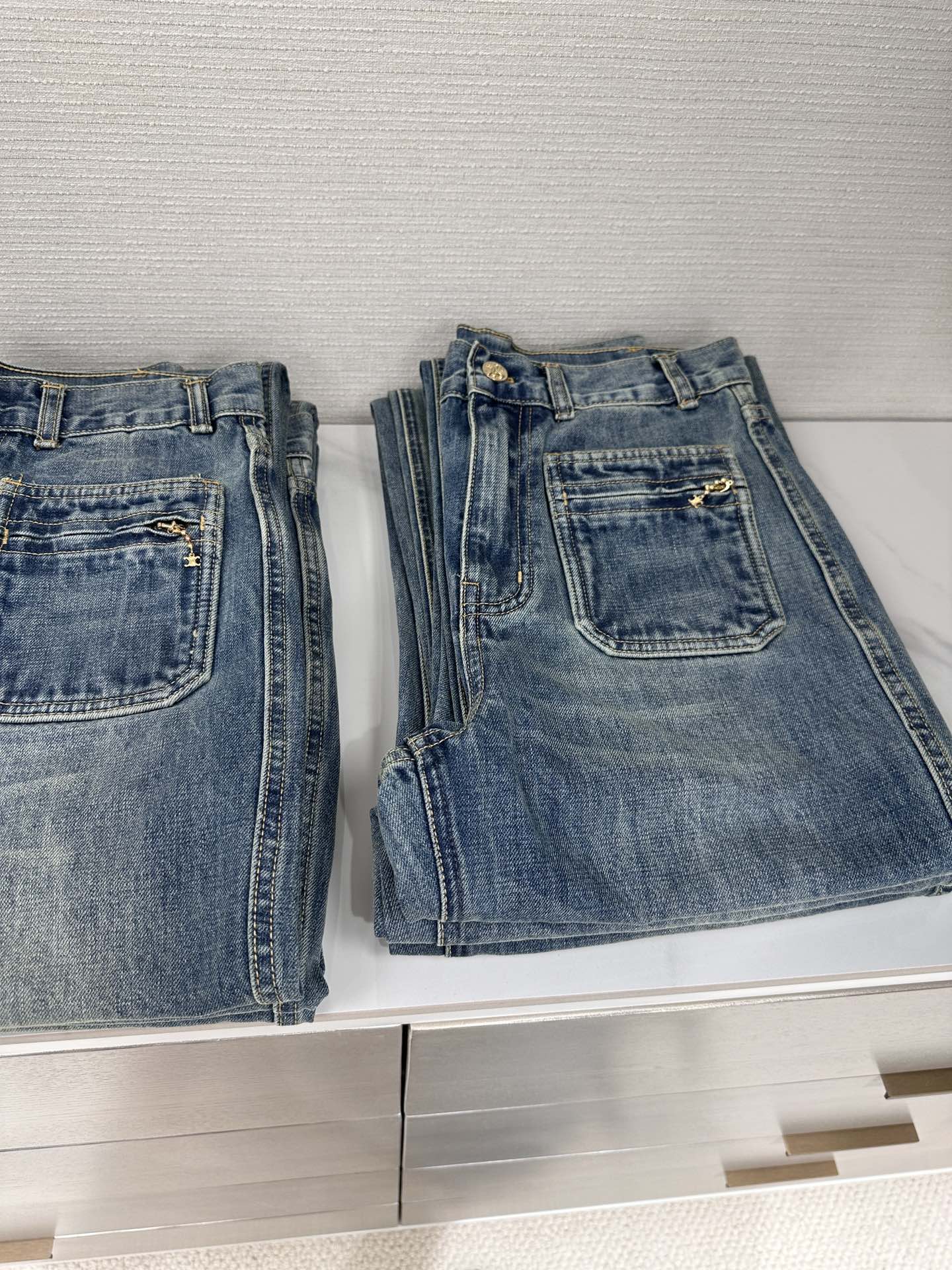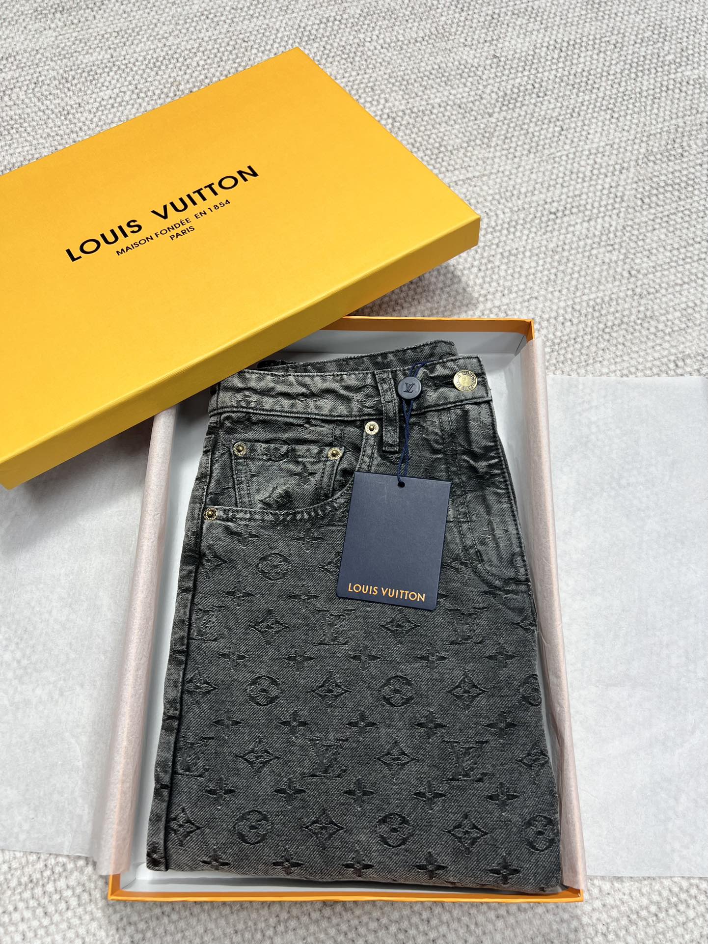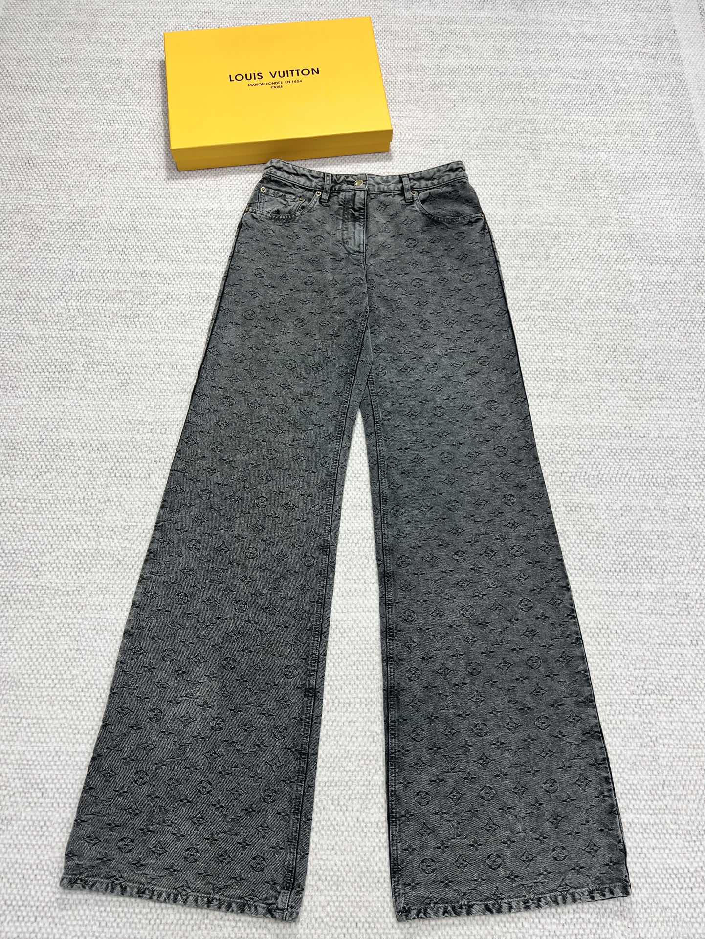 NIGO Louis Vuitton Women's Spring Autumn Solid Color Monogrammed Cameo Flared Cropped Jeans Pants #nigo73921