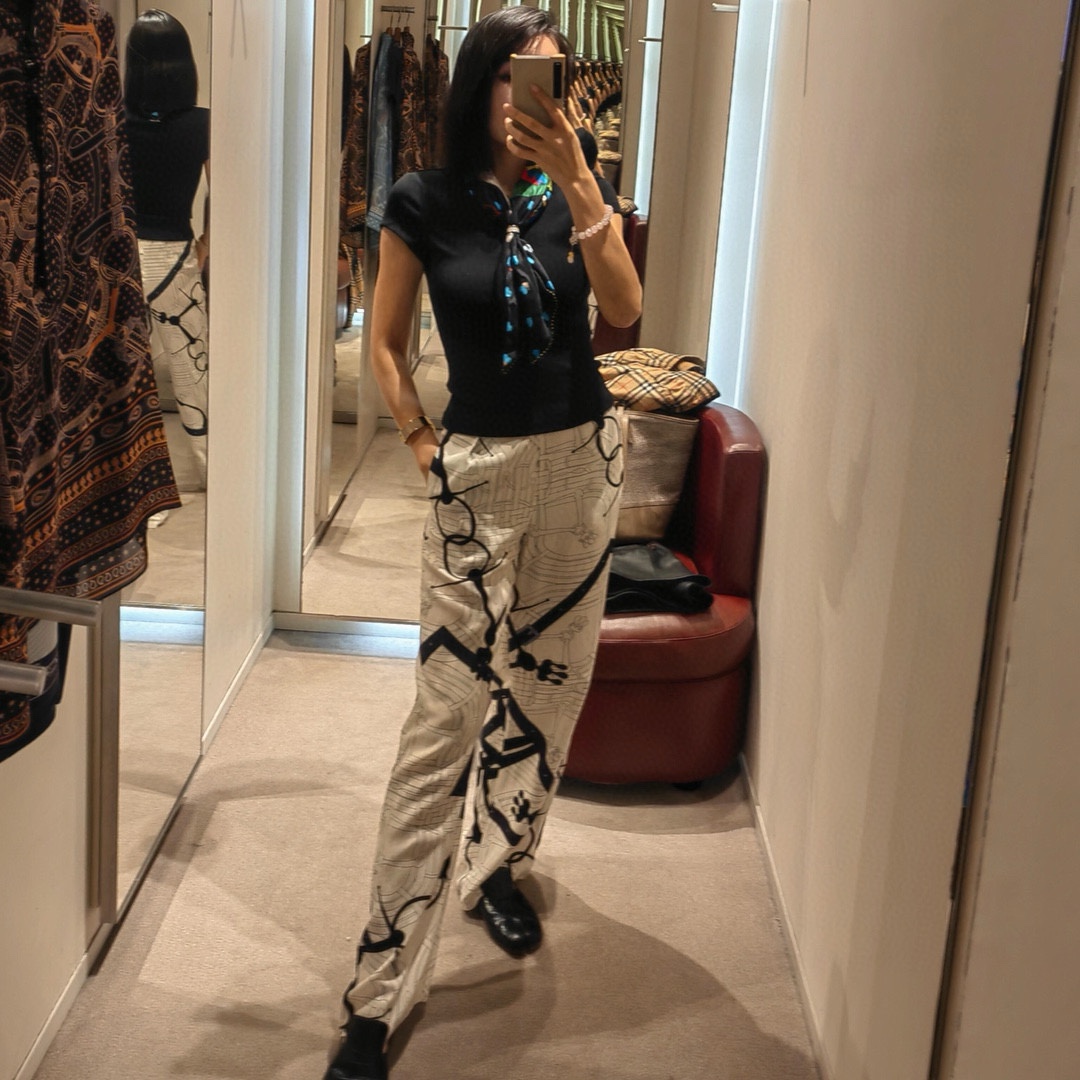 NIGO Hermes Women's Pattern Full Print Silk Mid-Rise Straight Leg Solid Color Casual Pants Ngvp #nigo9635