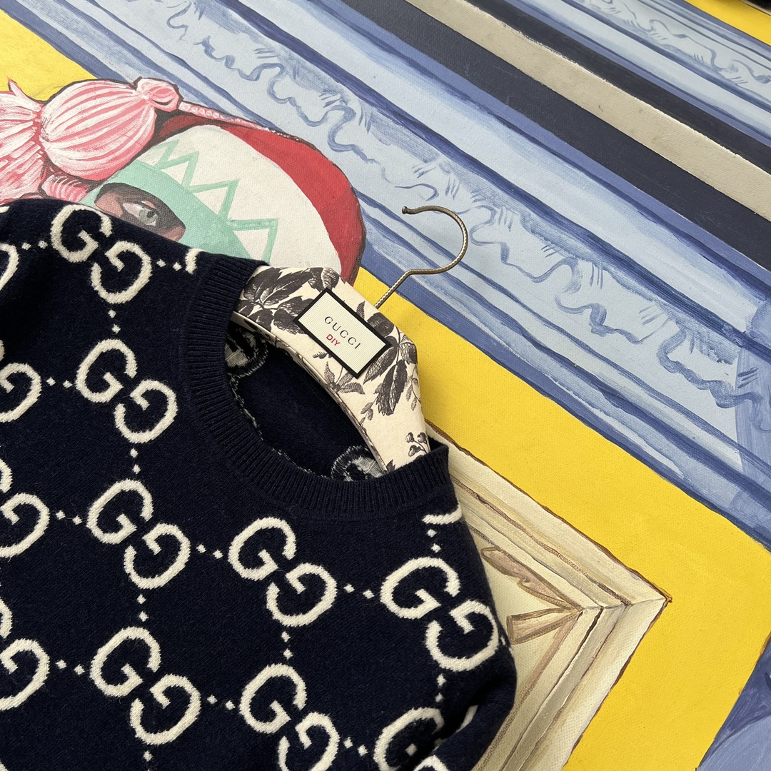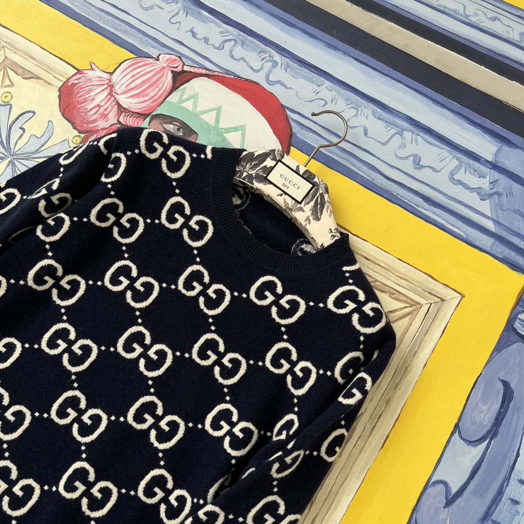 NIGO Gucci Men's Spring and Autumn Logo Letter Printed Blue Knit Crew Neck Long Sleeve Fleece Sweatshirt #nigo99567