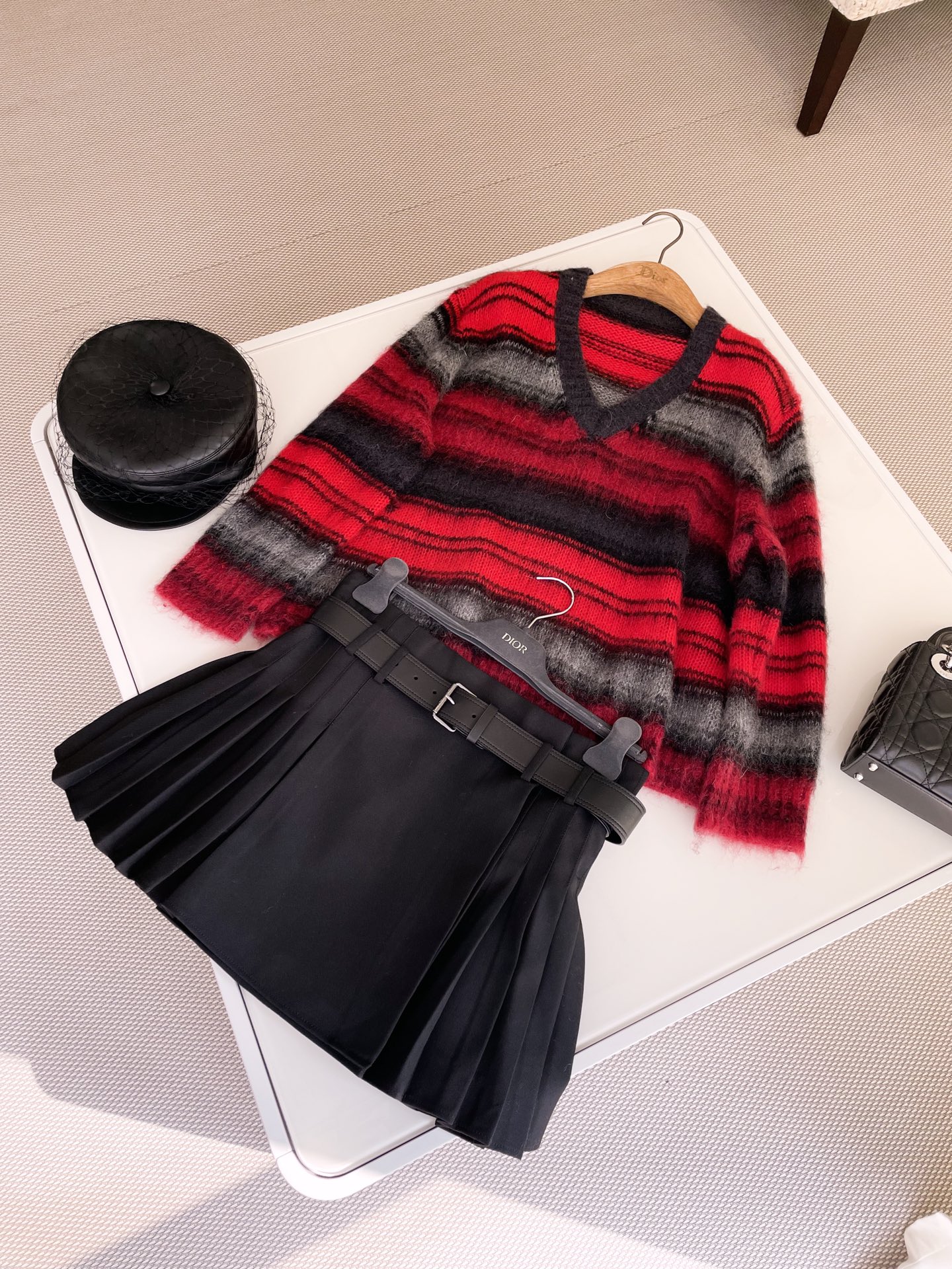 NIGO Dior Women's Spring and Autumn Black and Red Color Block Mohair Striped Sweater #nigo74583