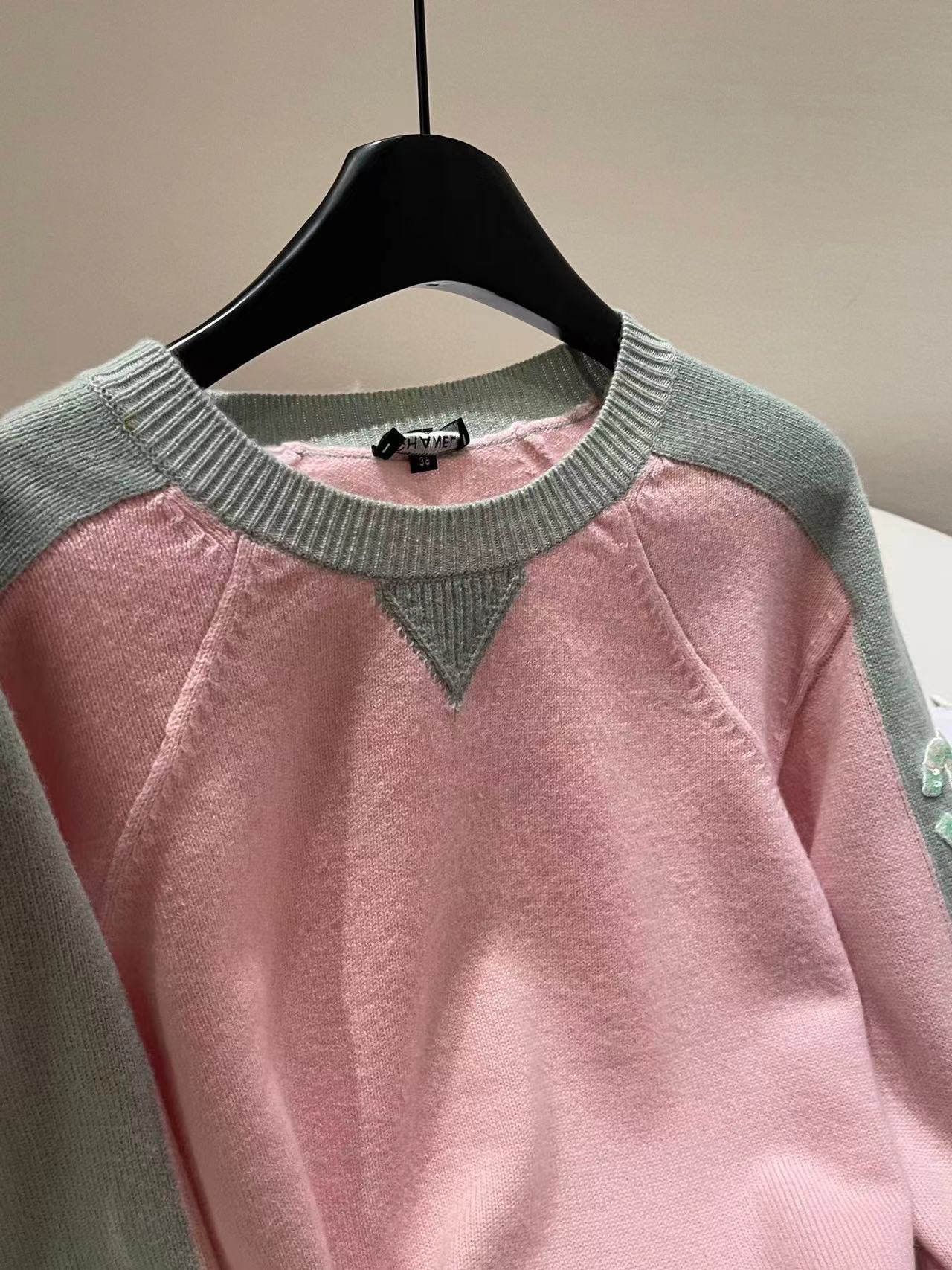 NIGO Chanel Chanel Women's Autumn and Winter Clashing Colour Splicing Round Neck Cashmere Long Sleeve Knitted Sweater Pullover #nigo99389