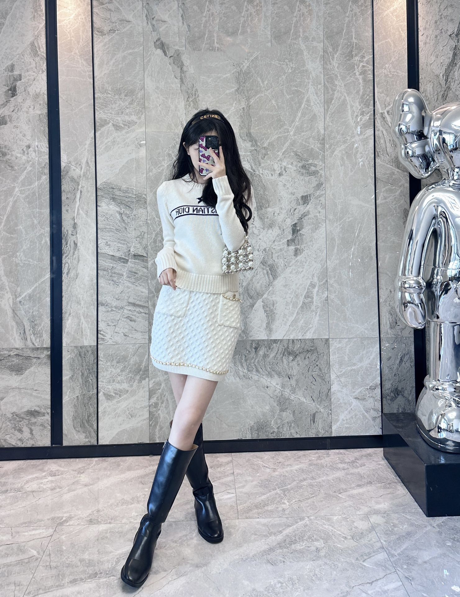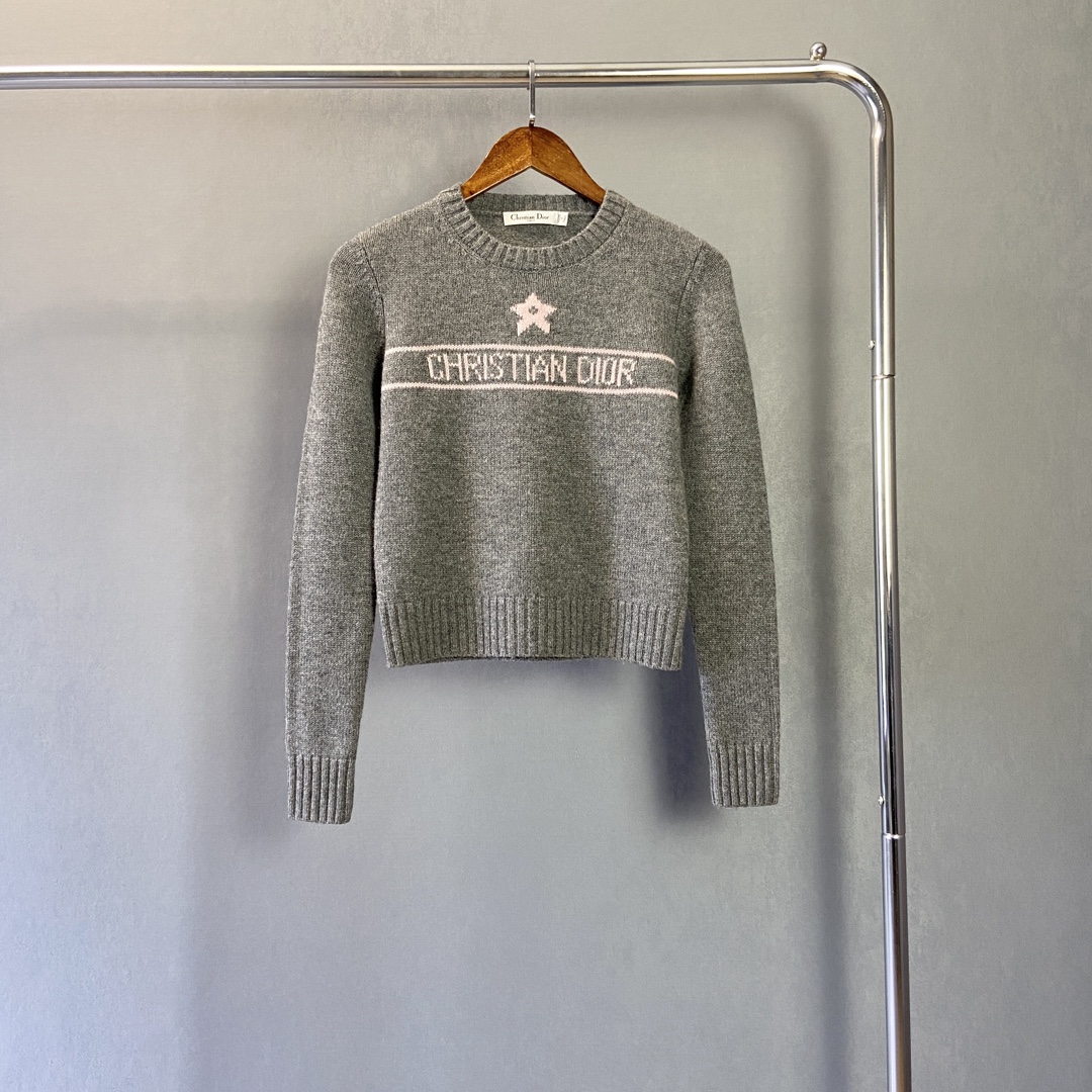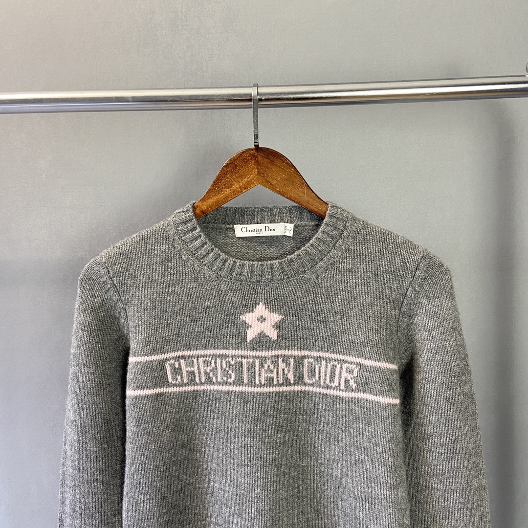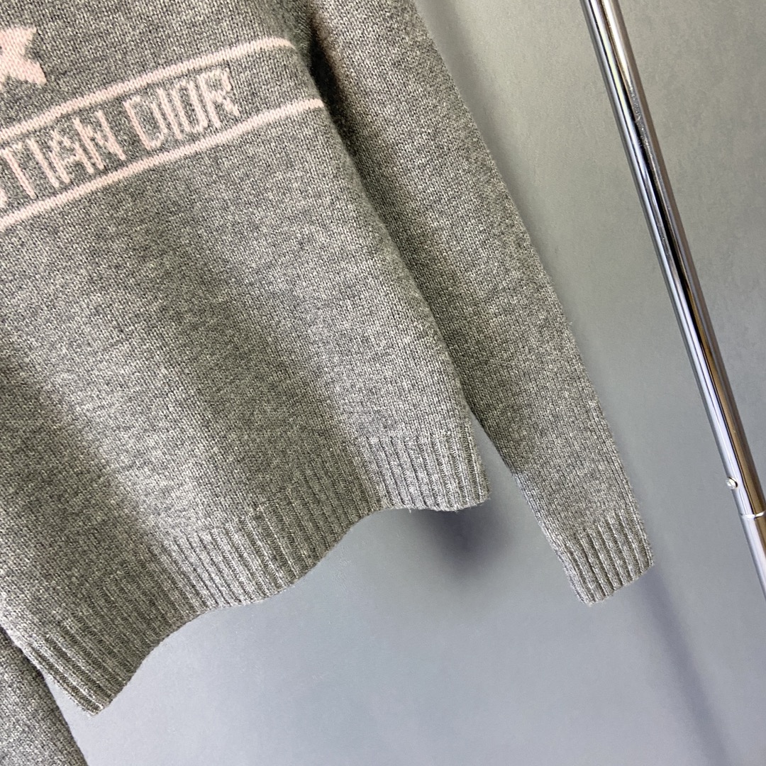 NIGO Dior Women's Autumn And Winter Jacquard Knit Sweater Gray Pink 100% Cashmere Fabric With Logo Round Neck Long Sleeve Pullover Knitted Sweater #nigo71784
