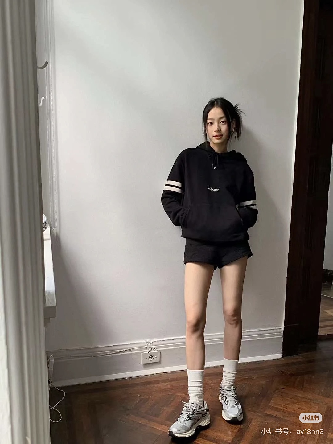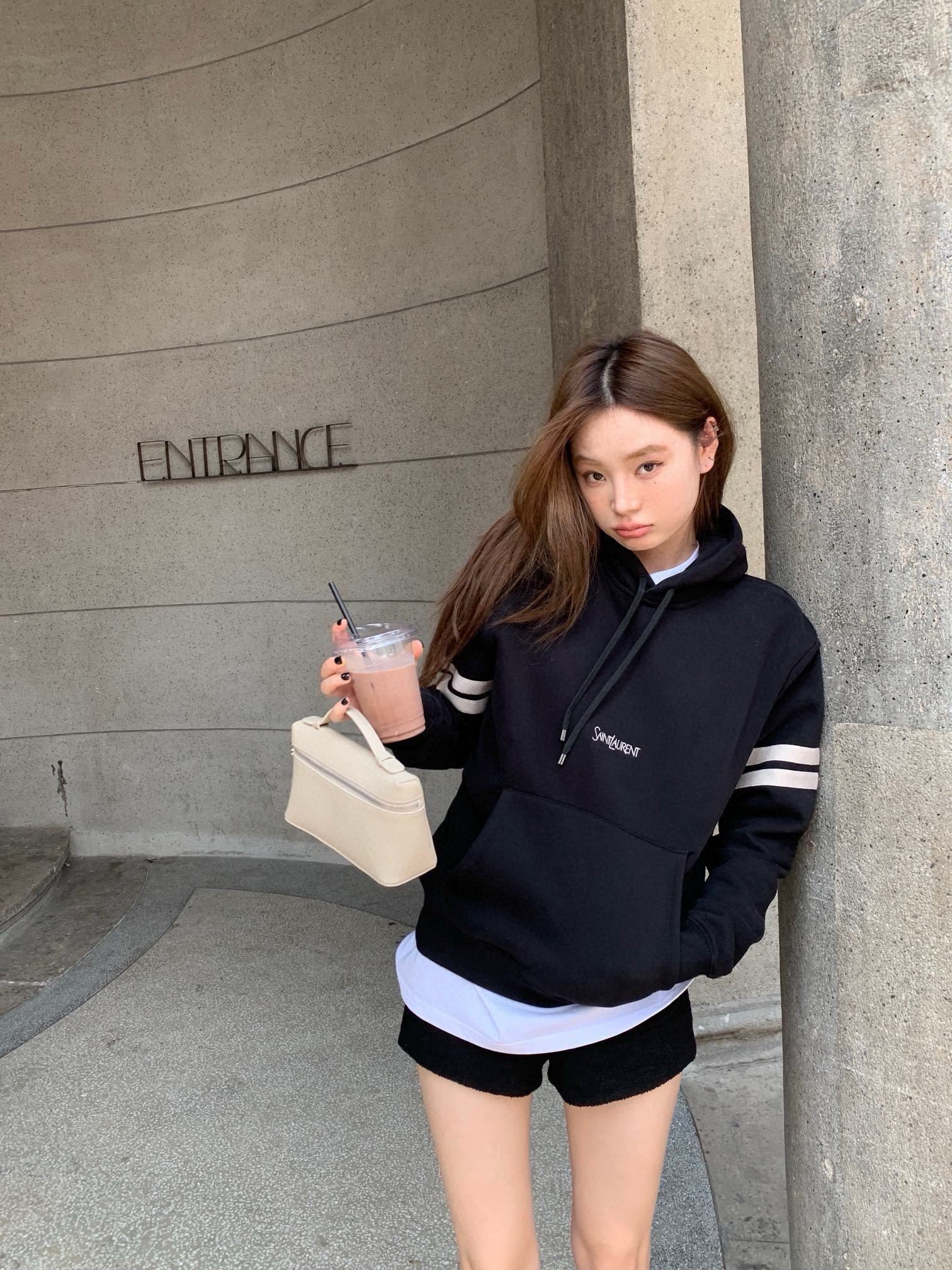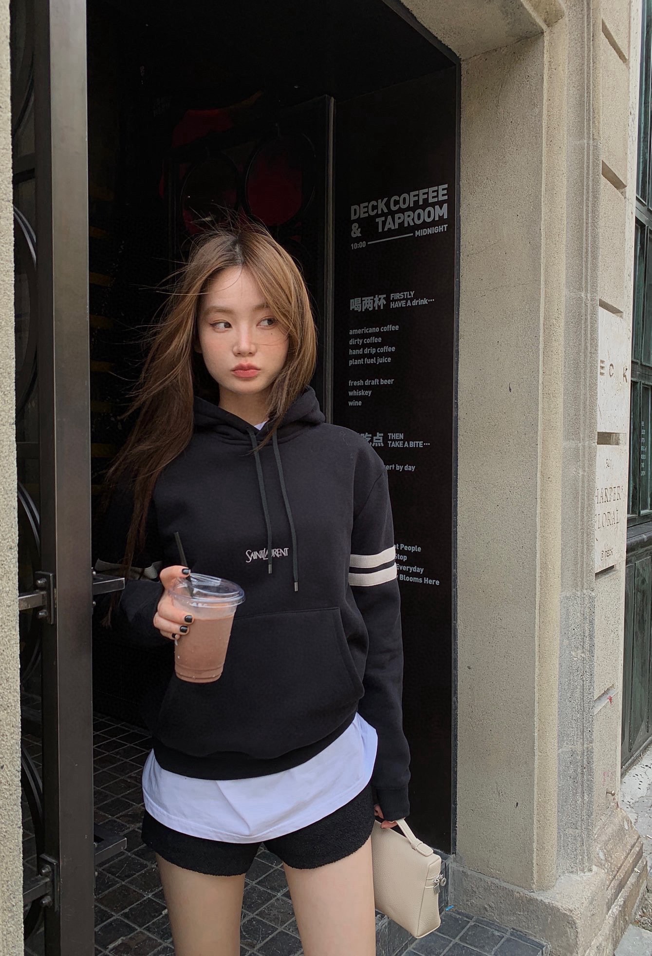 NIGO SAINT LAURENT Women's Spring and Autumn Black Striped Hooded Drawstring Long Sleeve Sweatshirt Pullover #nigo72918