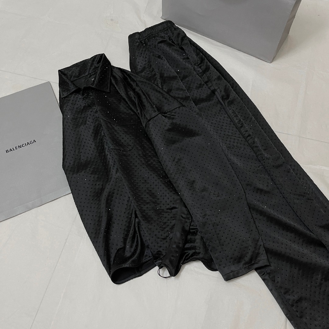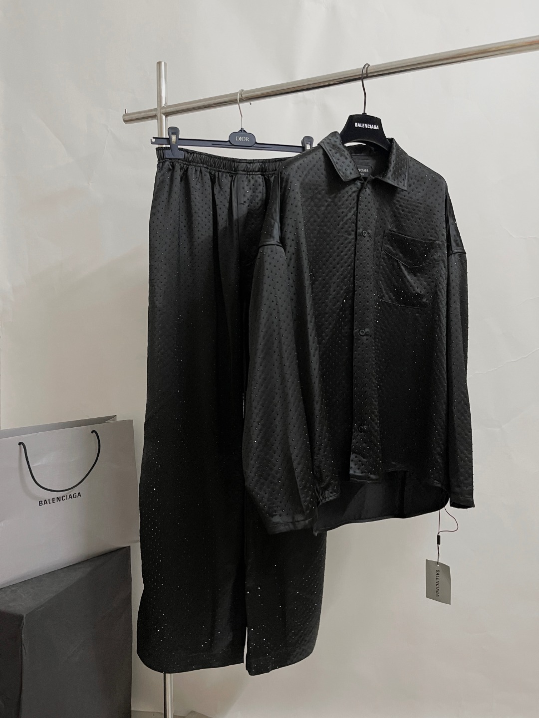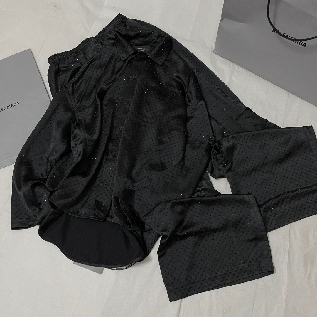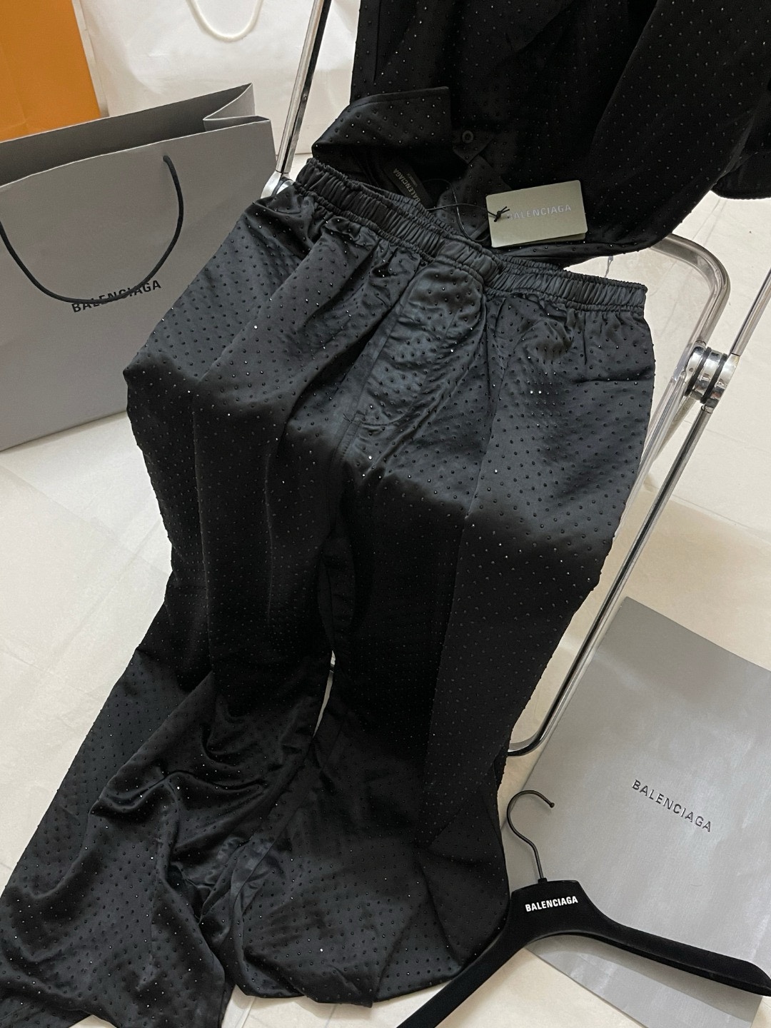 NIGO Balenciaga Women's Spring And Autumn Black Satin Full Diamond Long Sleeve Loose Shirt Casual Elastic Pants Ngvp #nigo9193