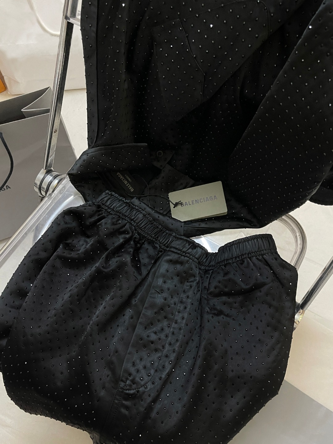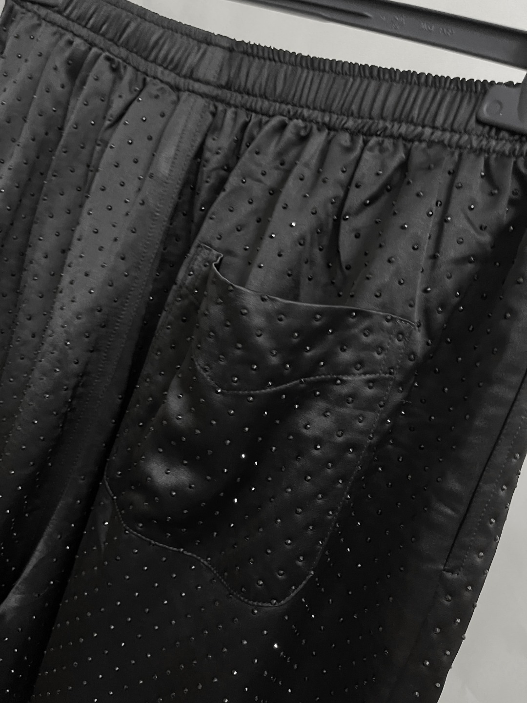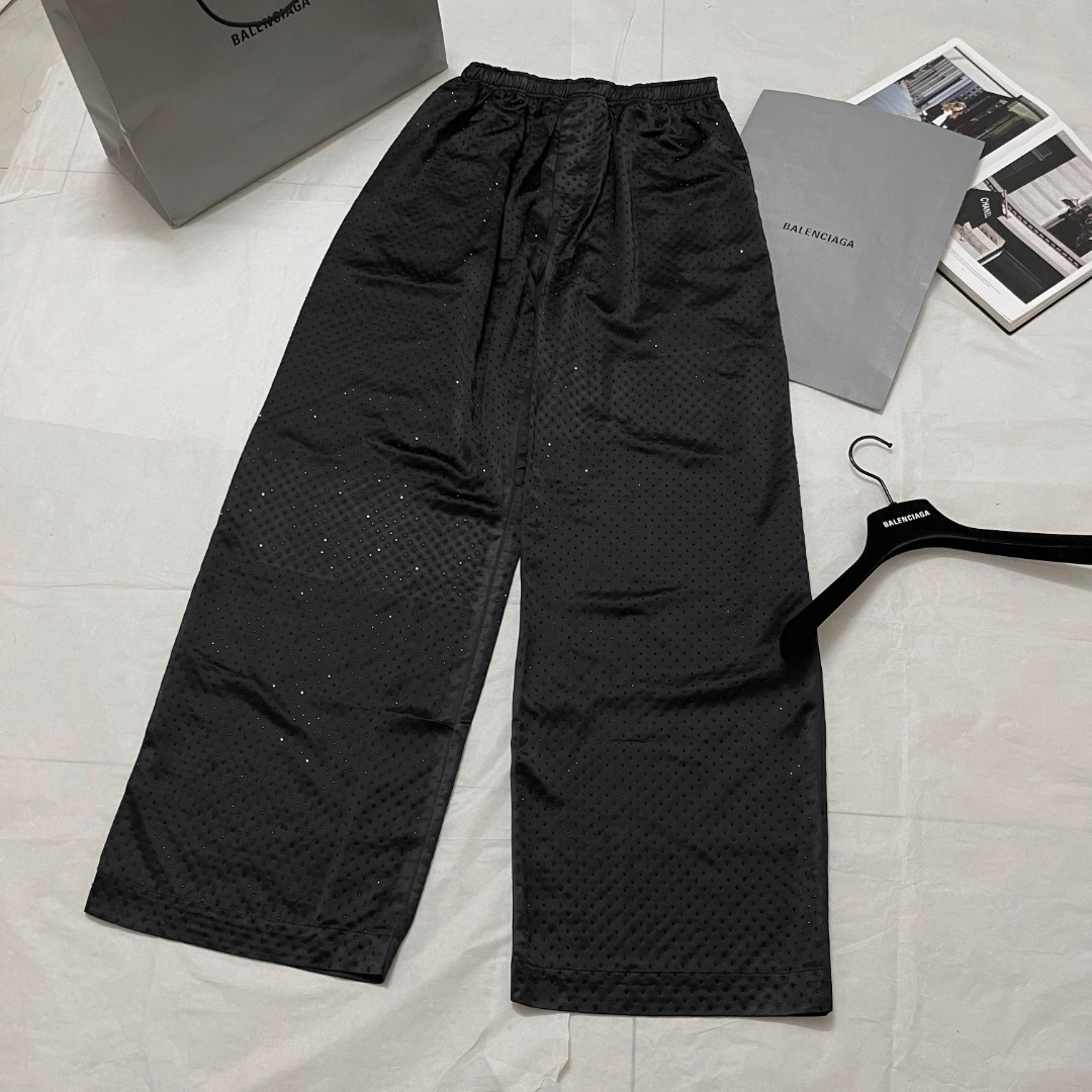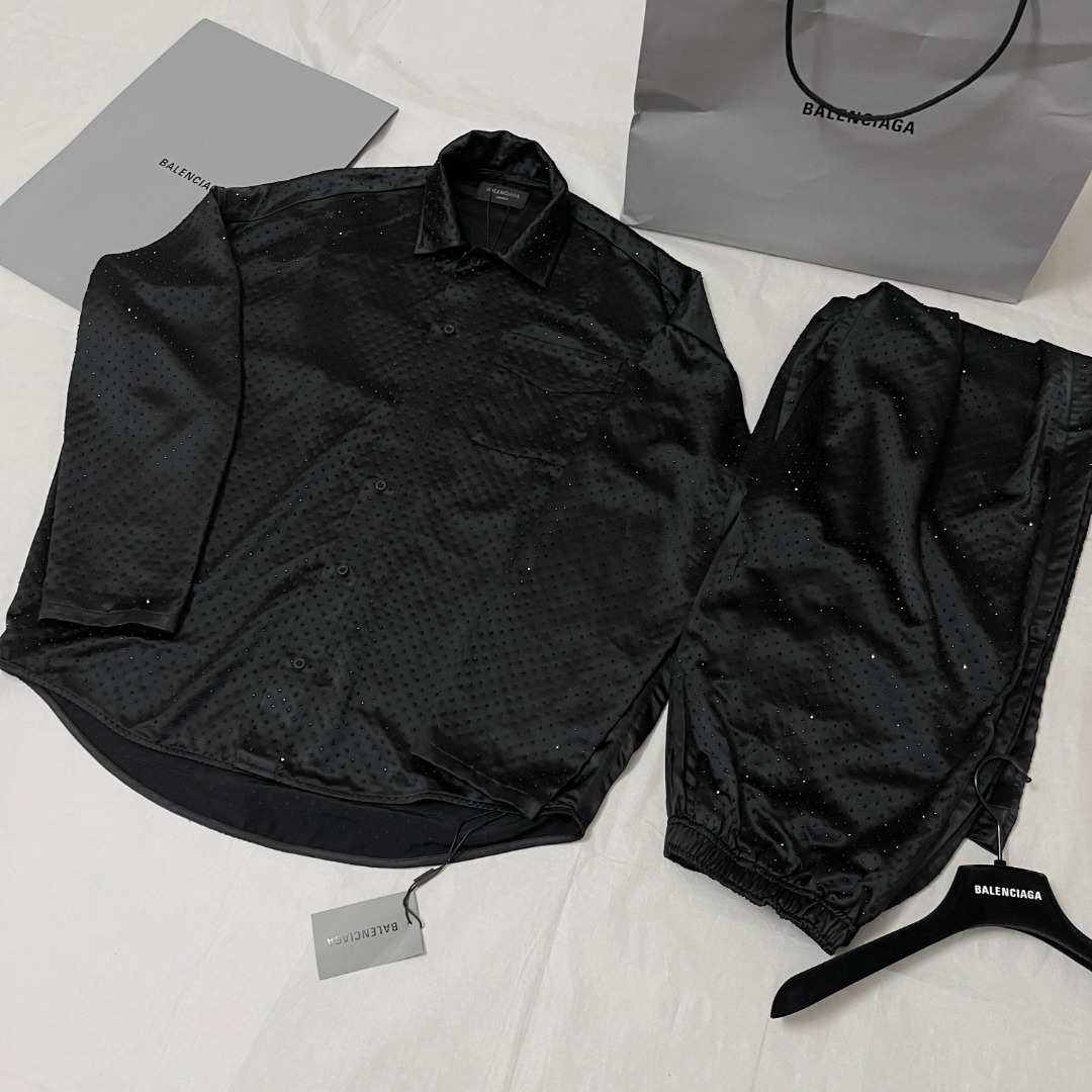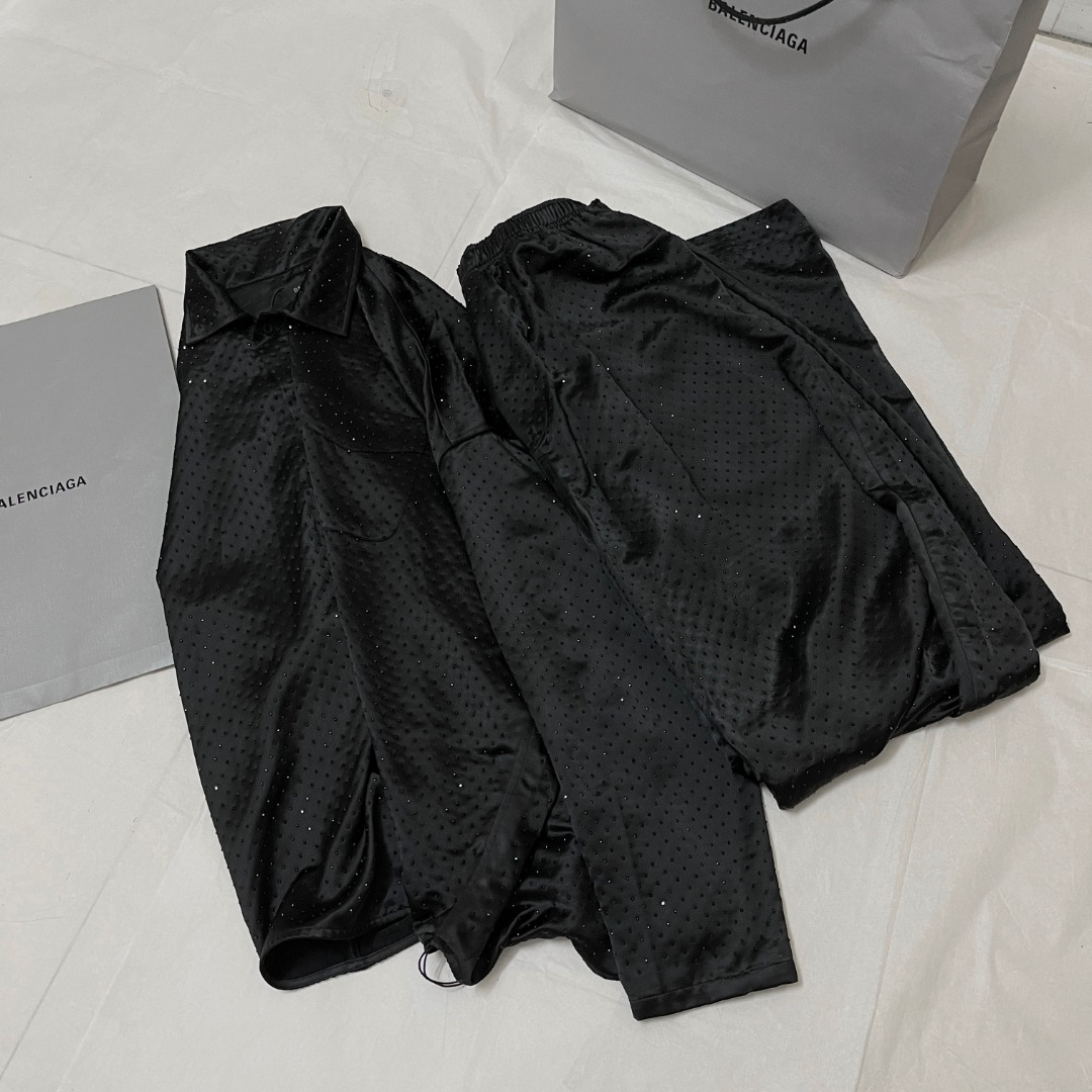 NIGO Balenciaga Women's Spring And Autumn Black Satin Full Diamond Long Sleeve Loose Shirt Casual Elastic Pants Ngvp #nigo9193