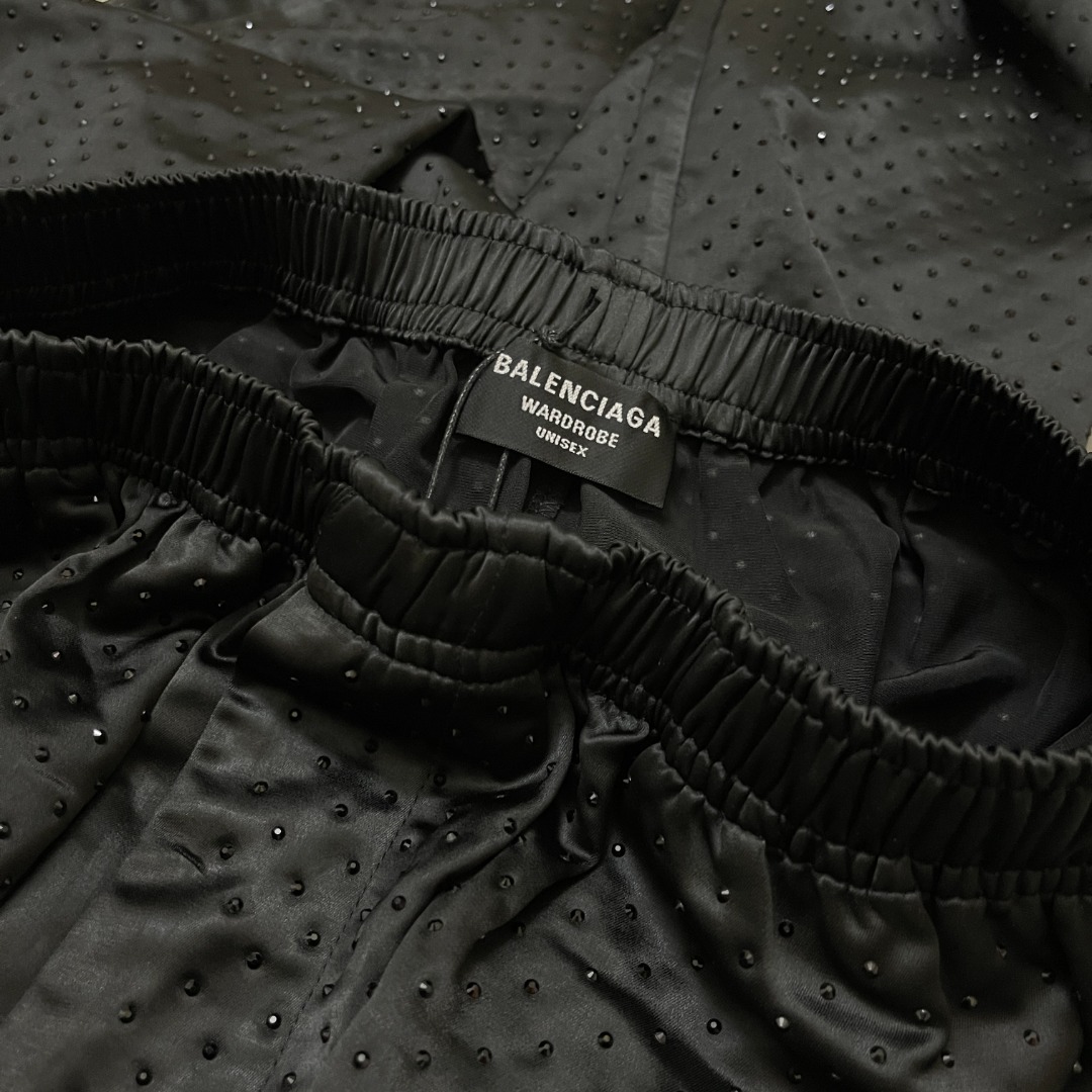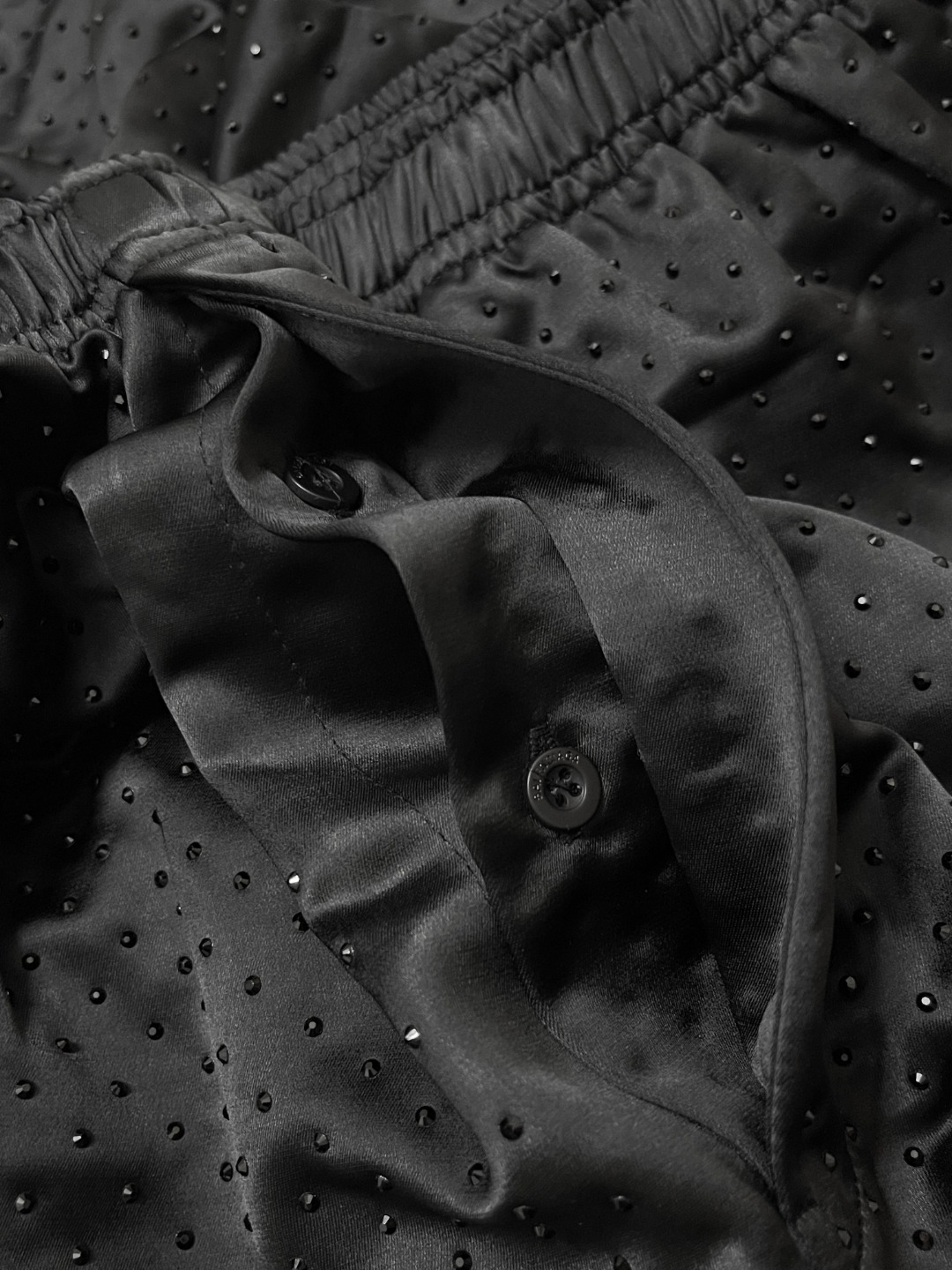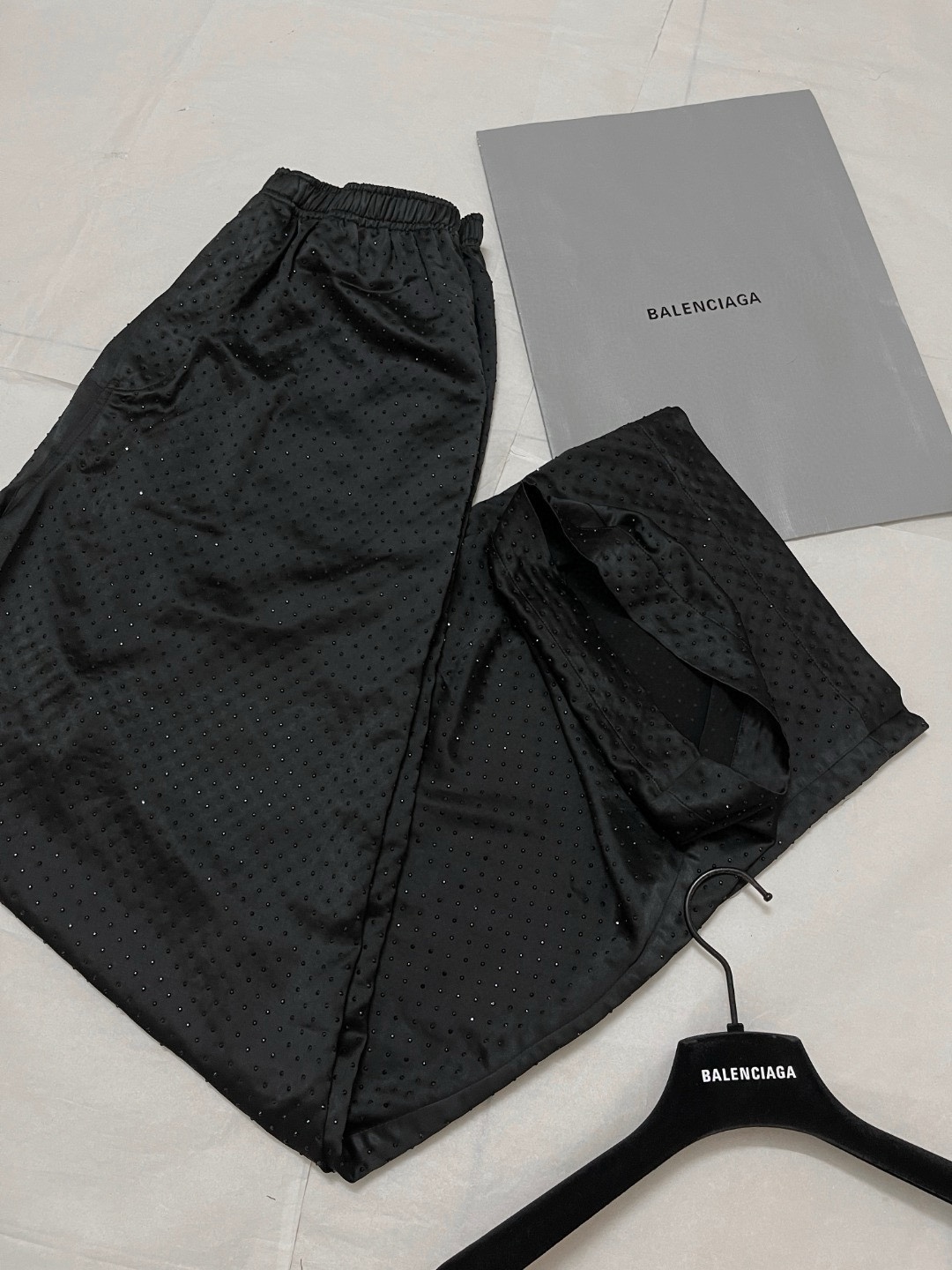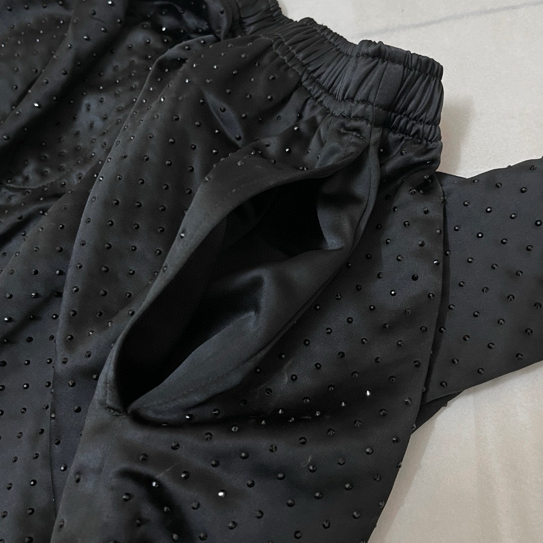 NIGO Balenciaga Women's Spring And Autumn Black Satin Full Diamond Long Sleeve Loose Shirt Casual Elastic Pants Ngvp #nigo9193