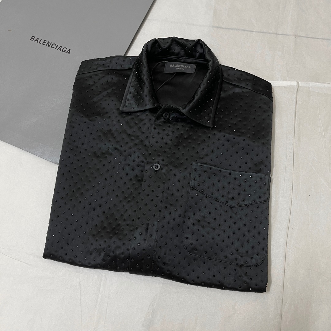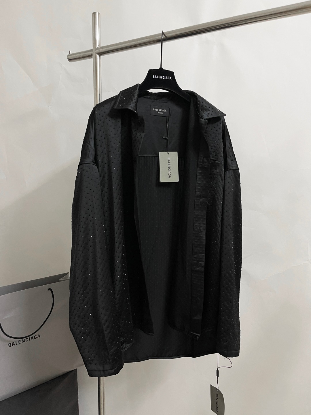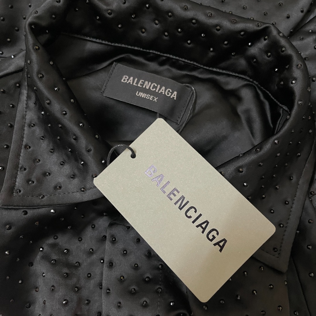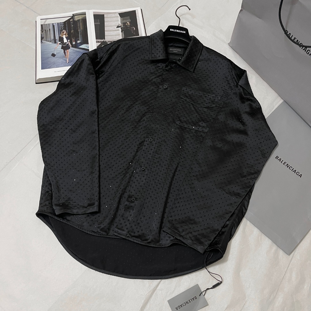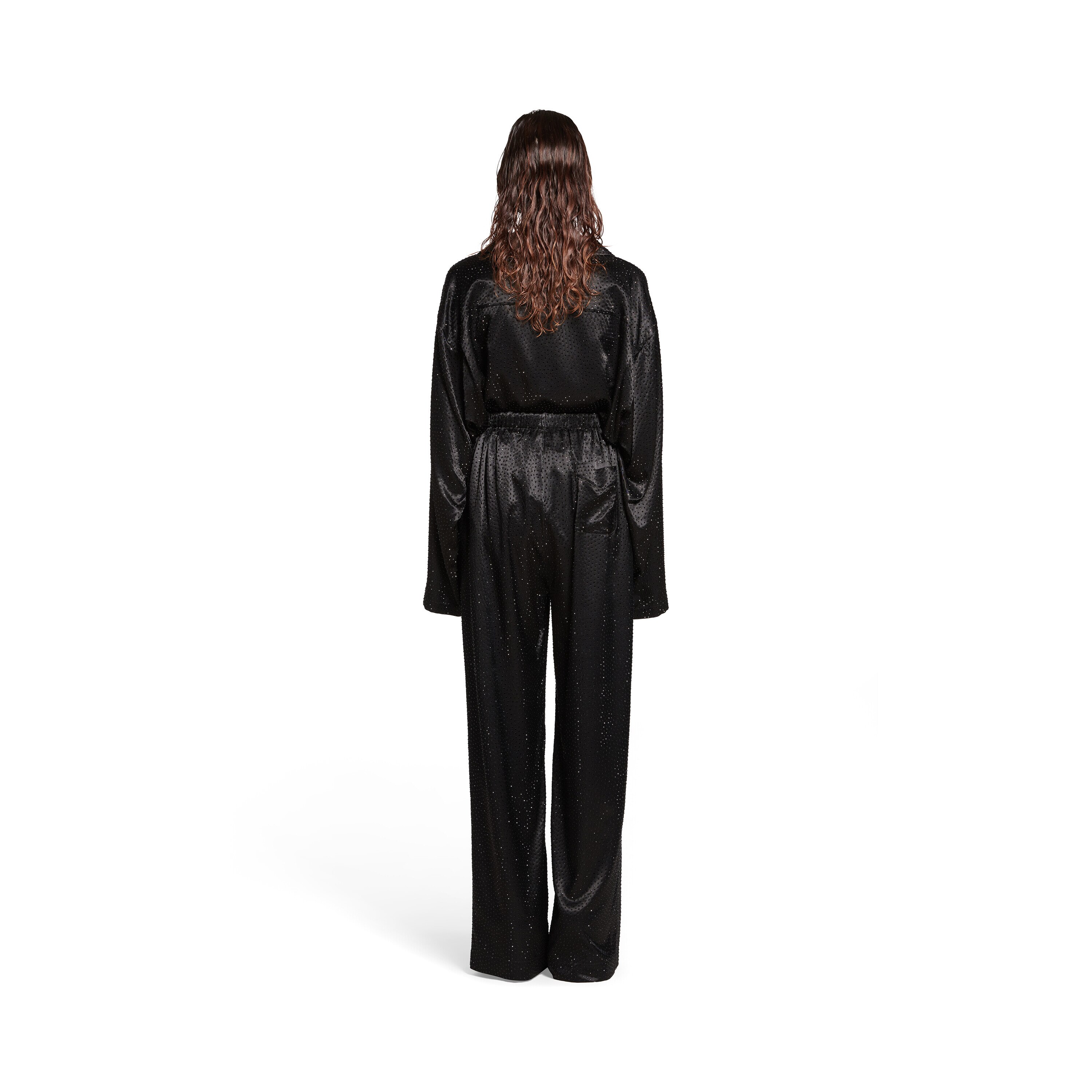 NIGO Balenciaga Women's Spring And Autumn Black Satin Full Diamond Long Sleeve Loose Shirt Casual Elastic Pants Ngvp #nigo9193