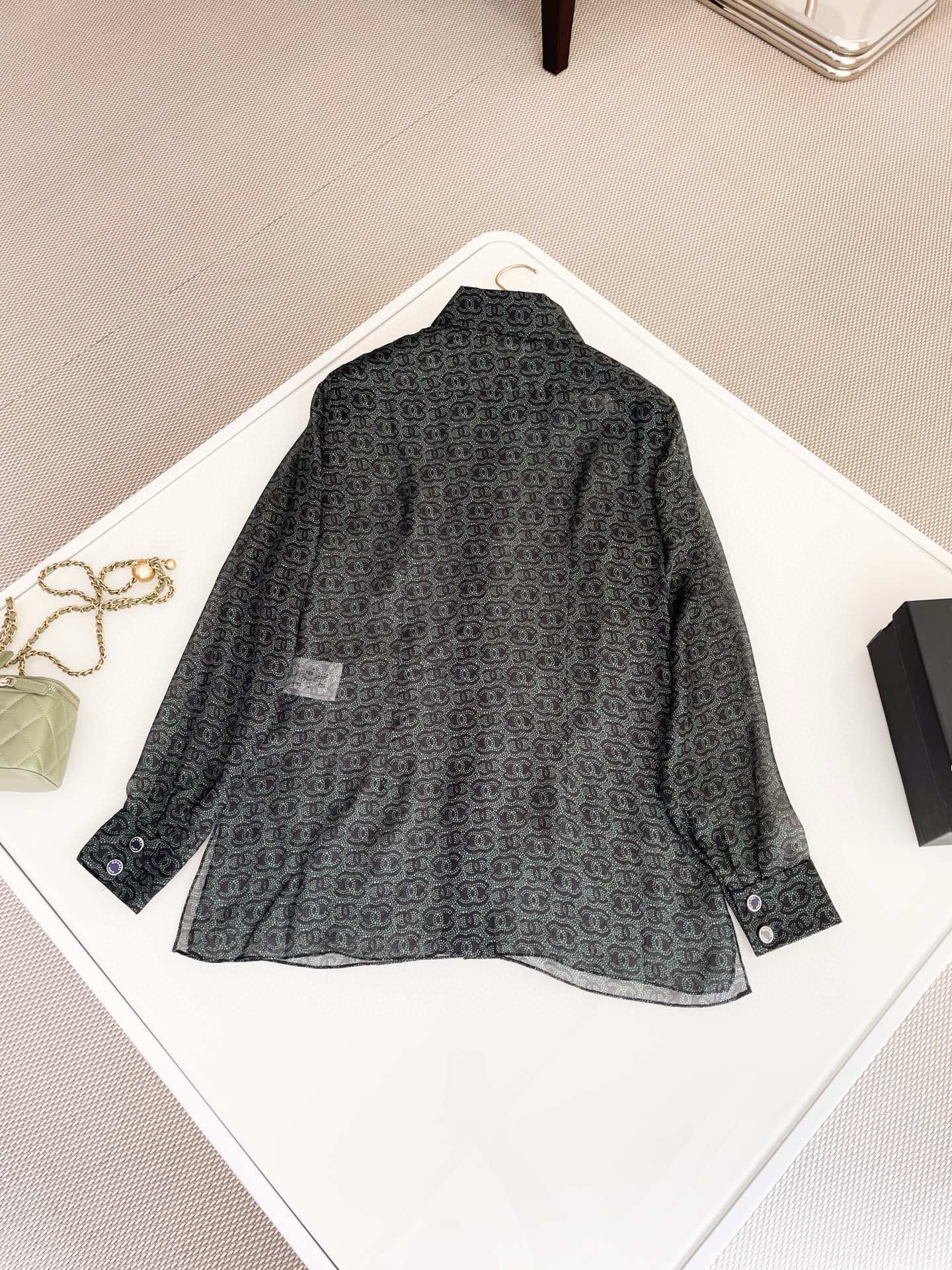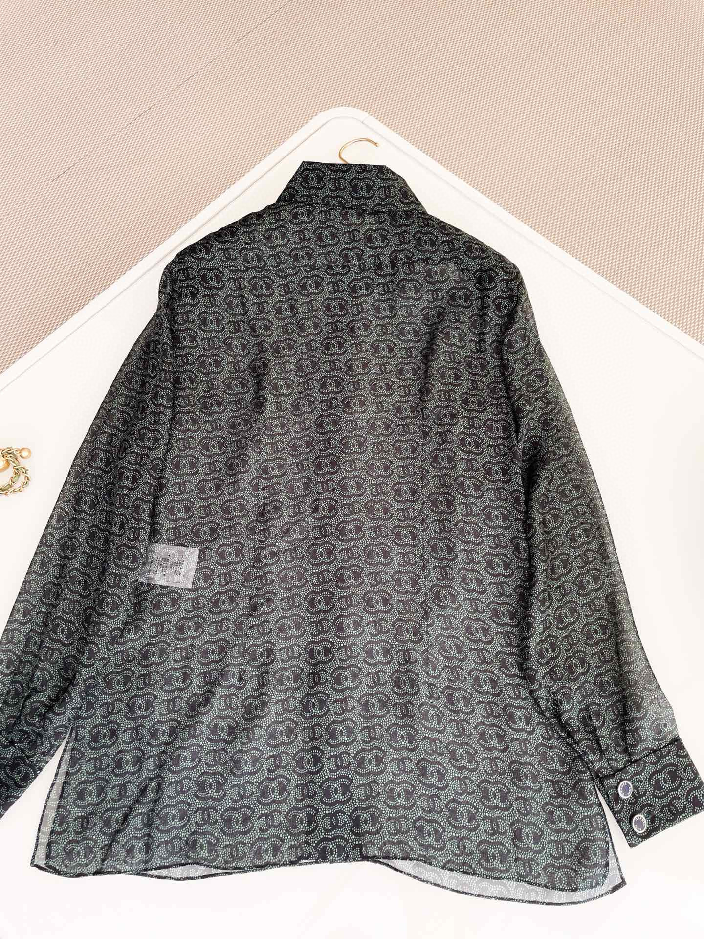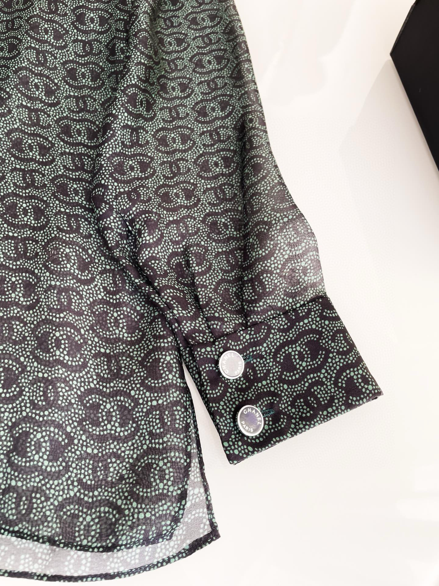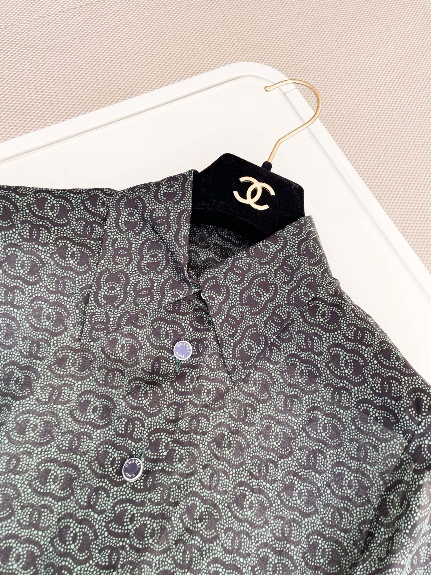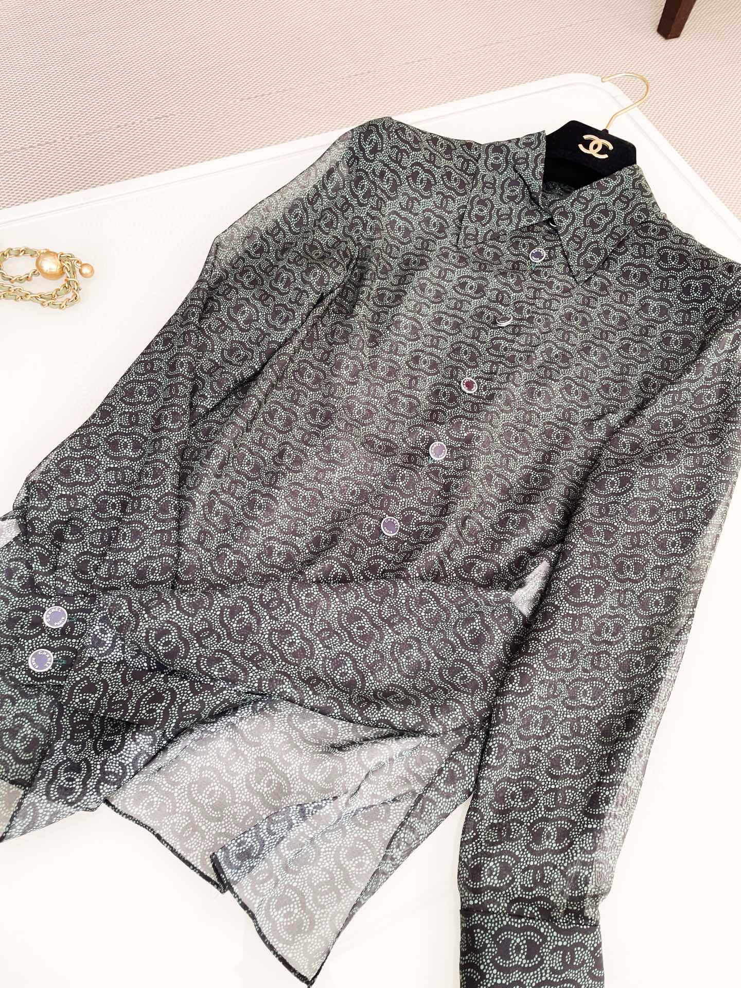 NIGO Chanel Ladies Spring Summer Black Silk Lapel Polka Dot Long Sleeve Shirt #nigo97578