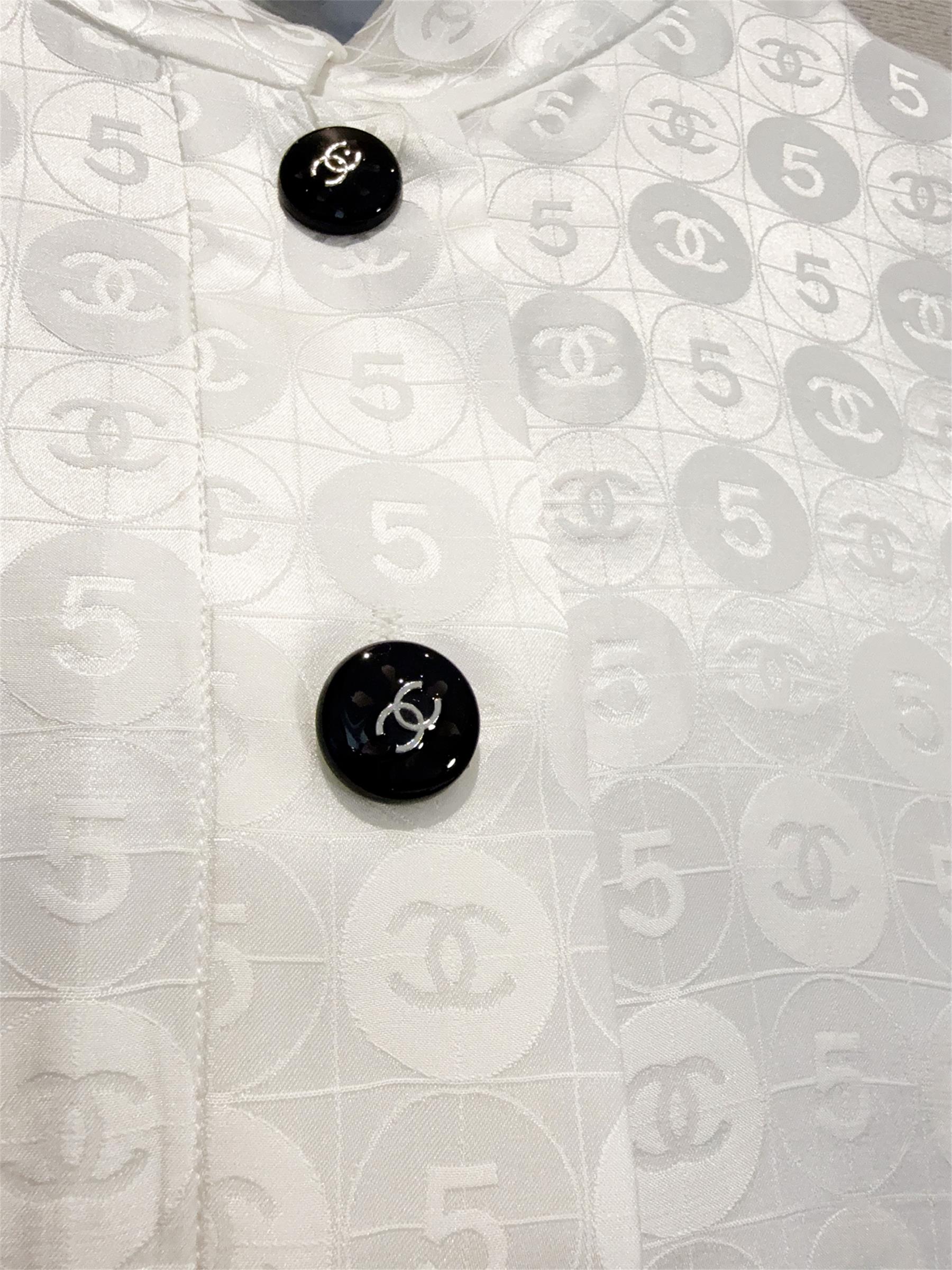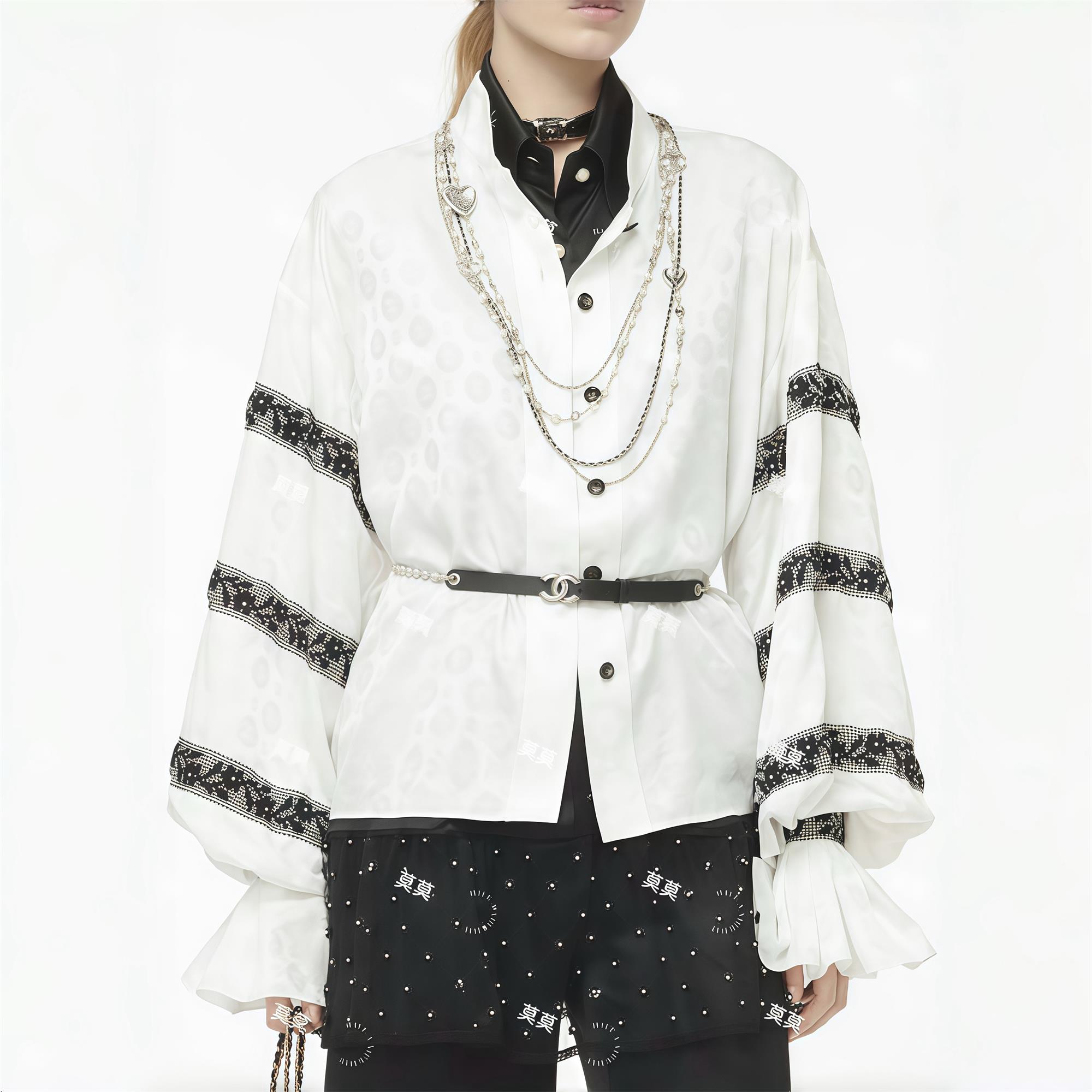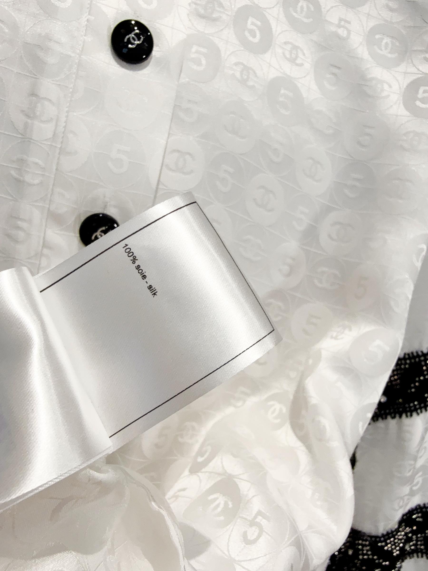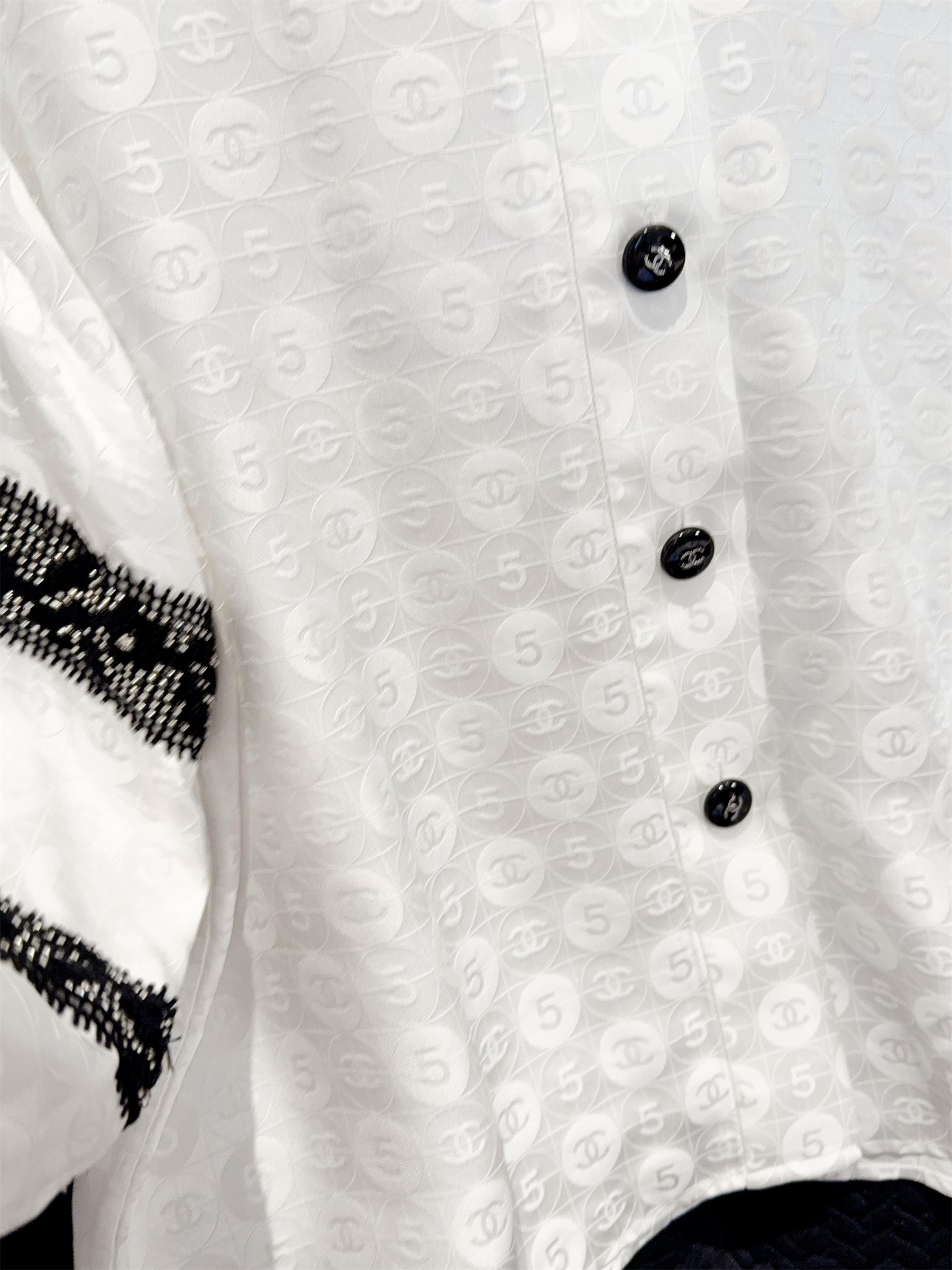 NIGO Chanel Women's Summer Embroidery Printed Black and White Jacquard Silk Single Breasted Long Sleeve Shirt #nigo75597