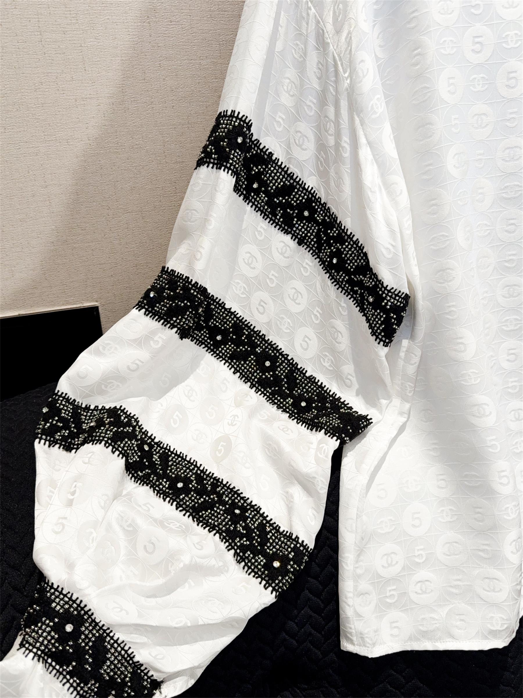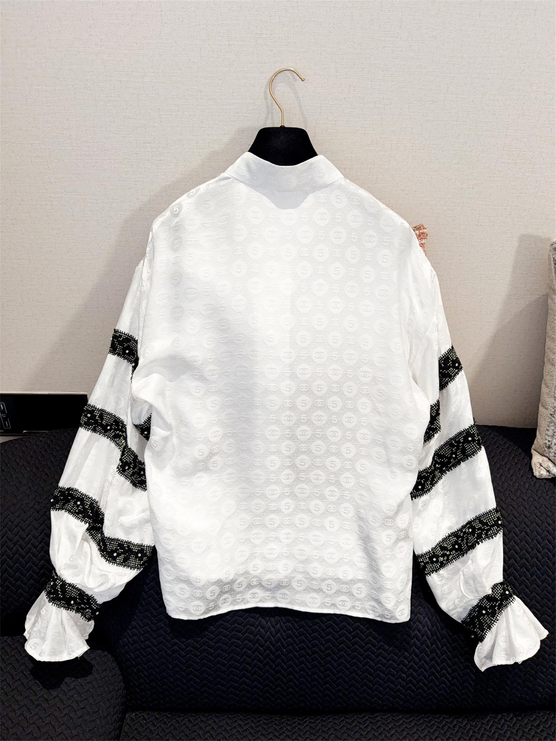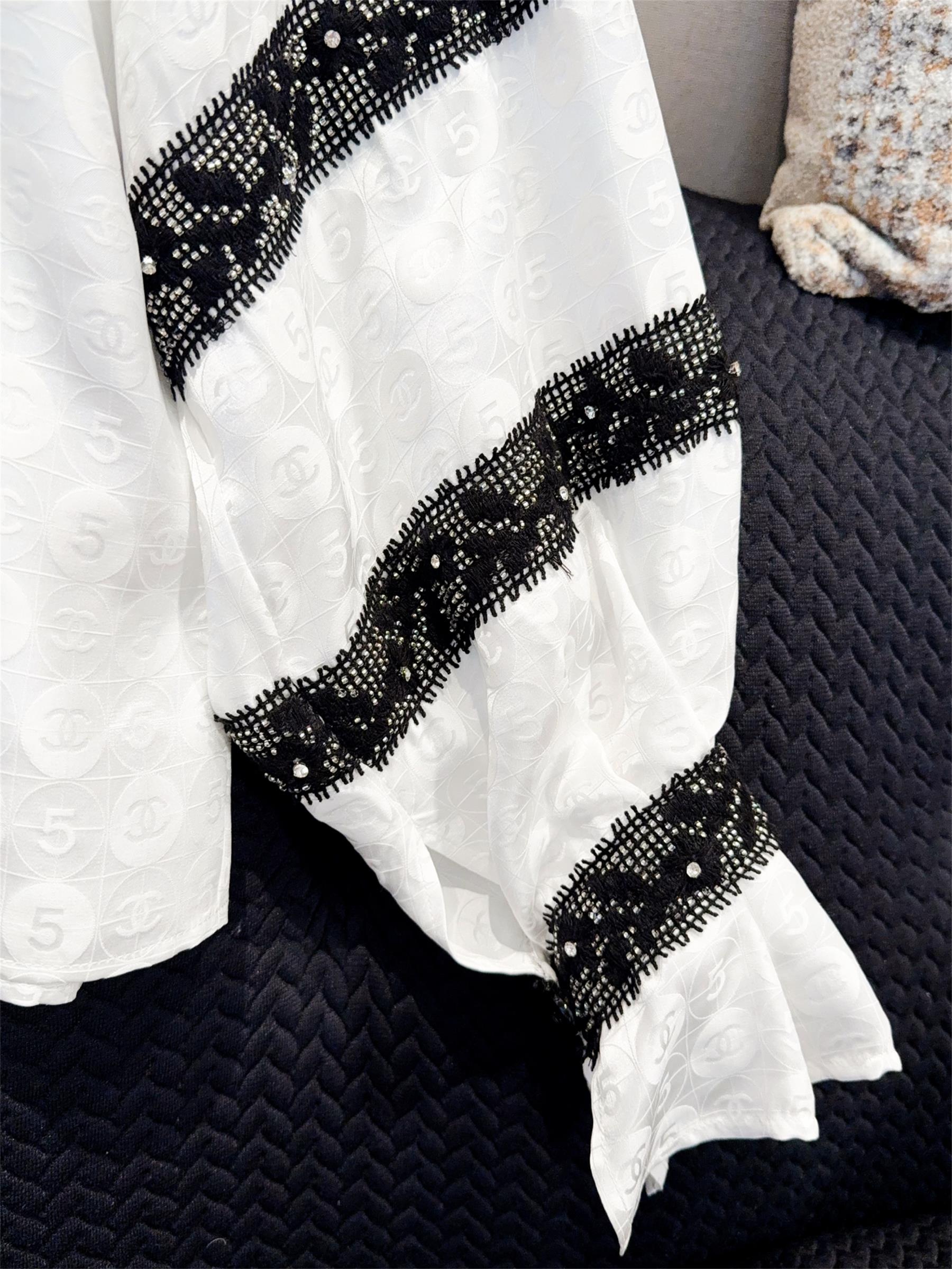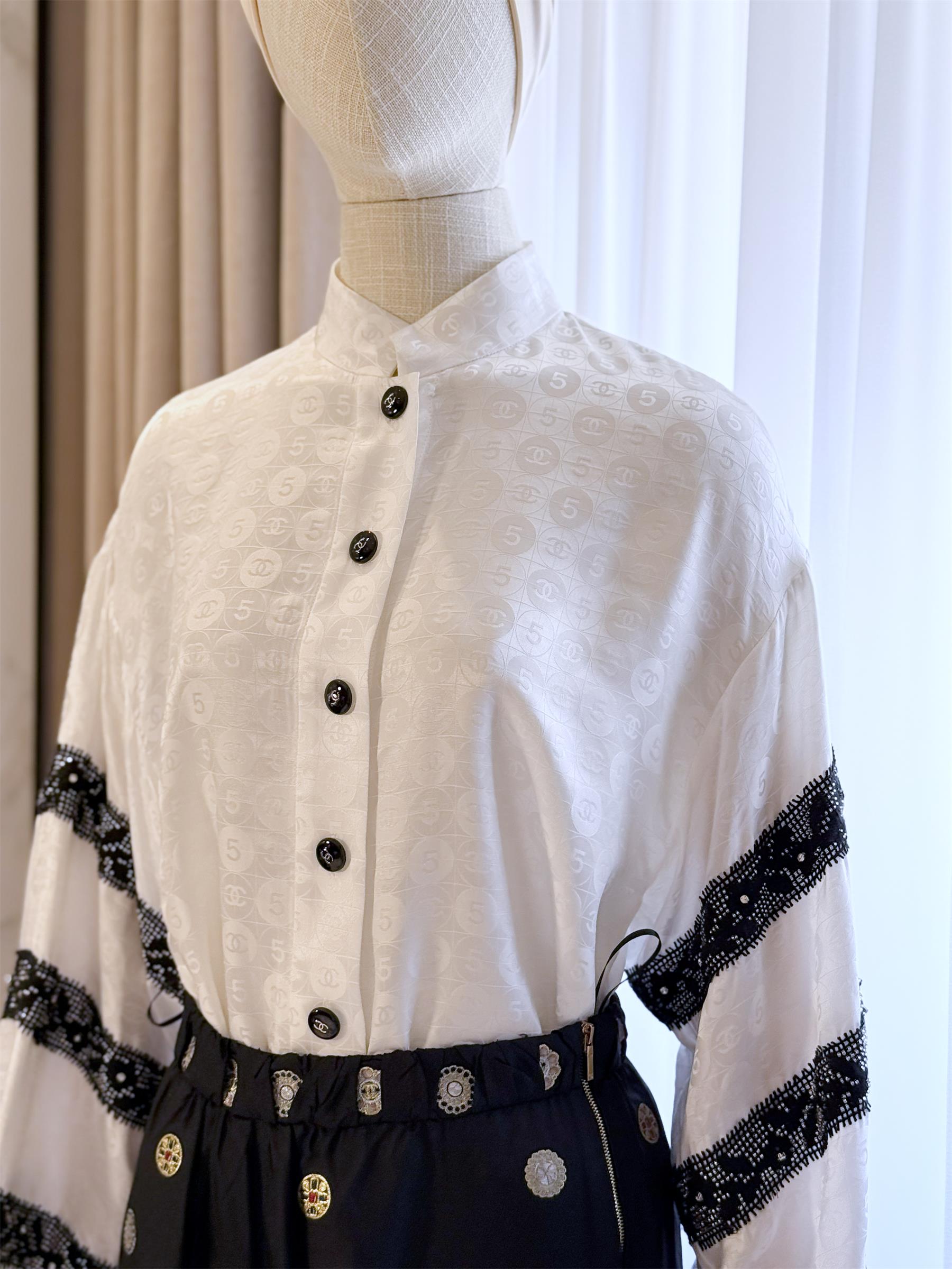 NIGO Chanel Women's Summer Embroidery Printed Black and White Jacquard Silk Single Breasted Long Sleeve Shirt #nigo75597