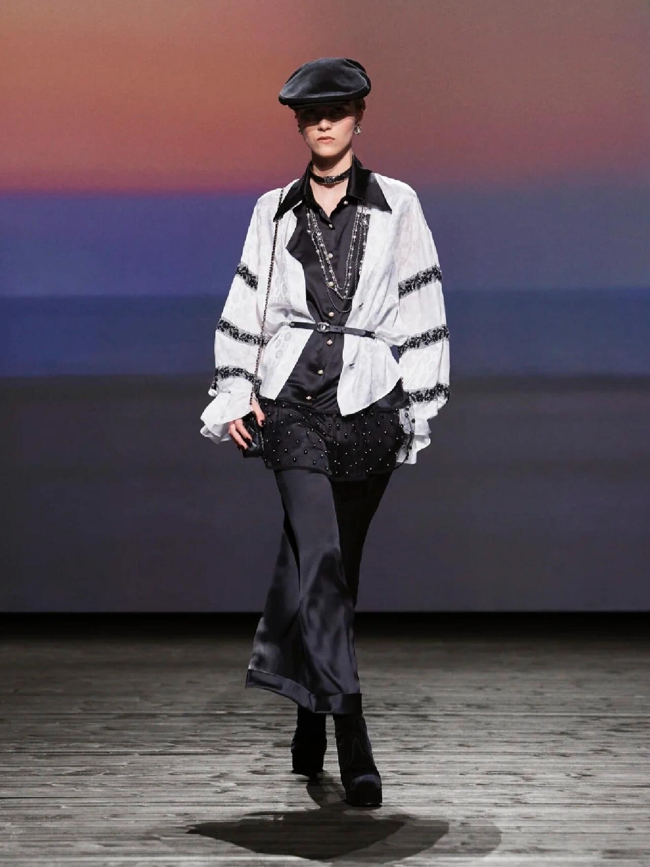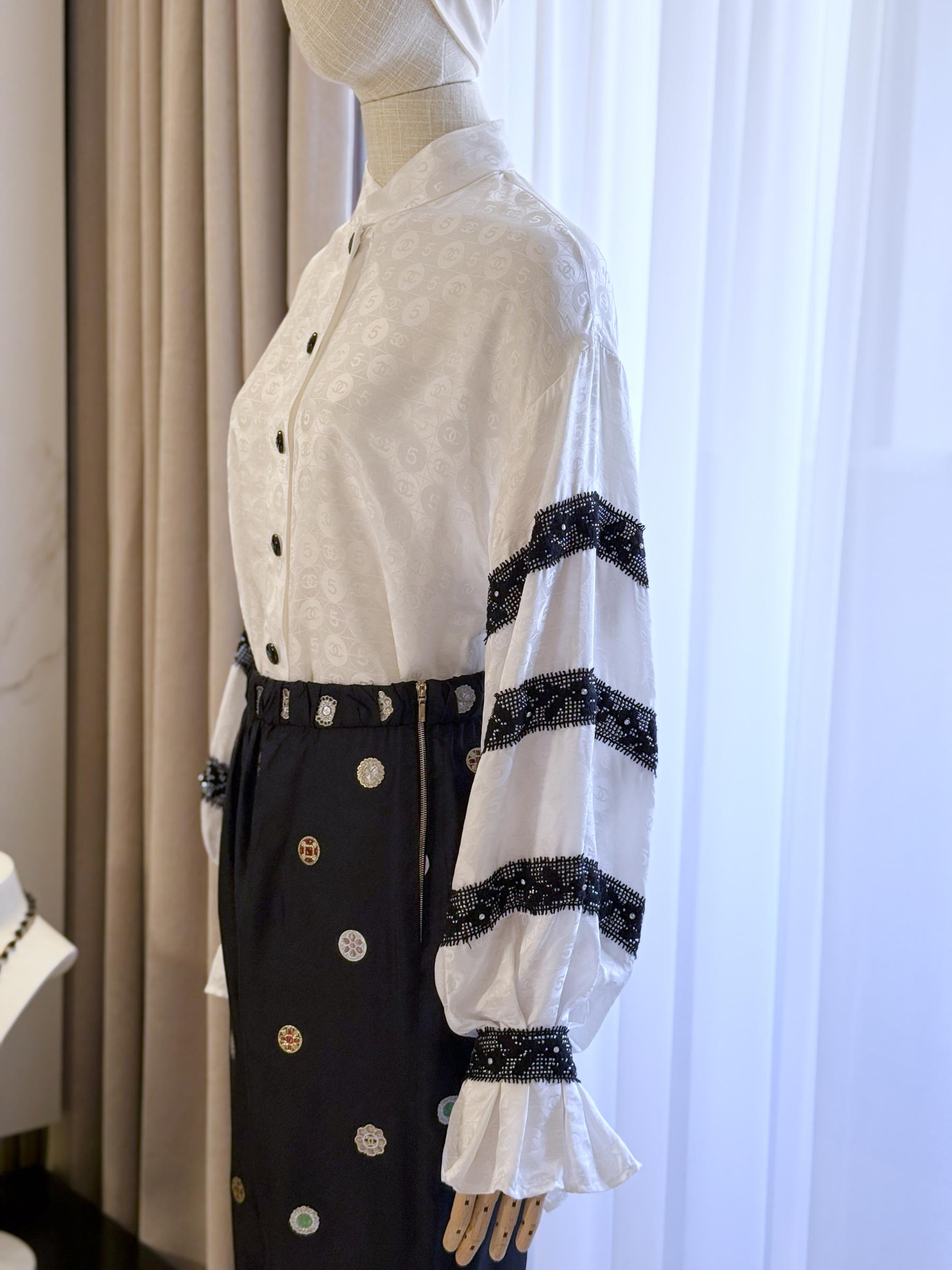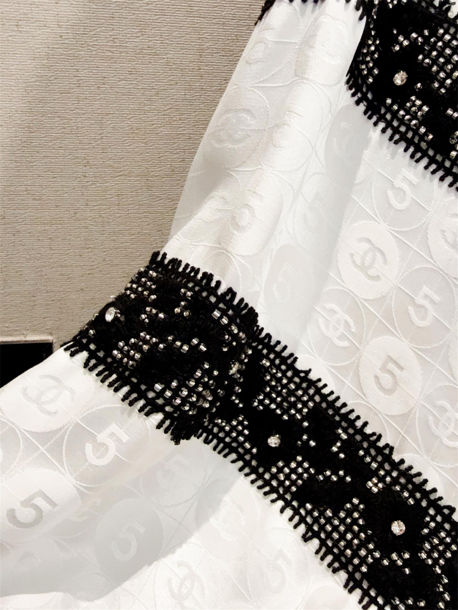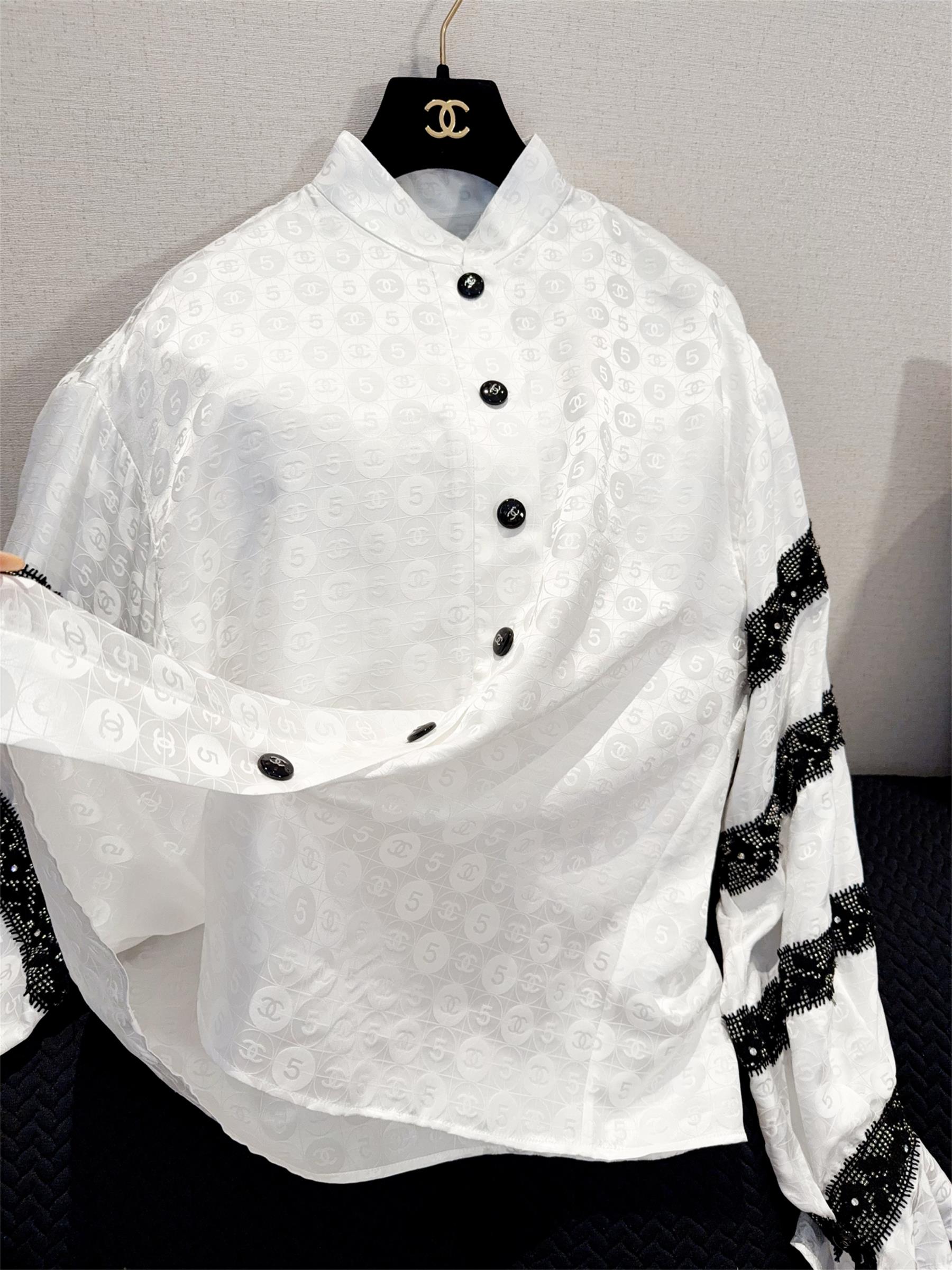 NIGO Chanel Women's Summer Embroidery Printed Black and White Jacquard Silk Single Breasted Long Sleeve Shirt #nigo75597