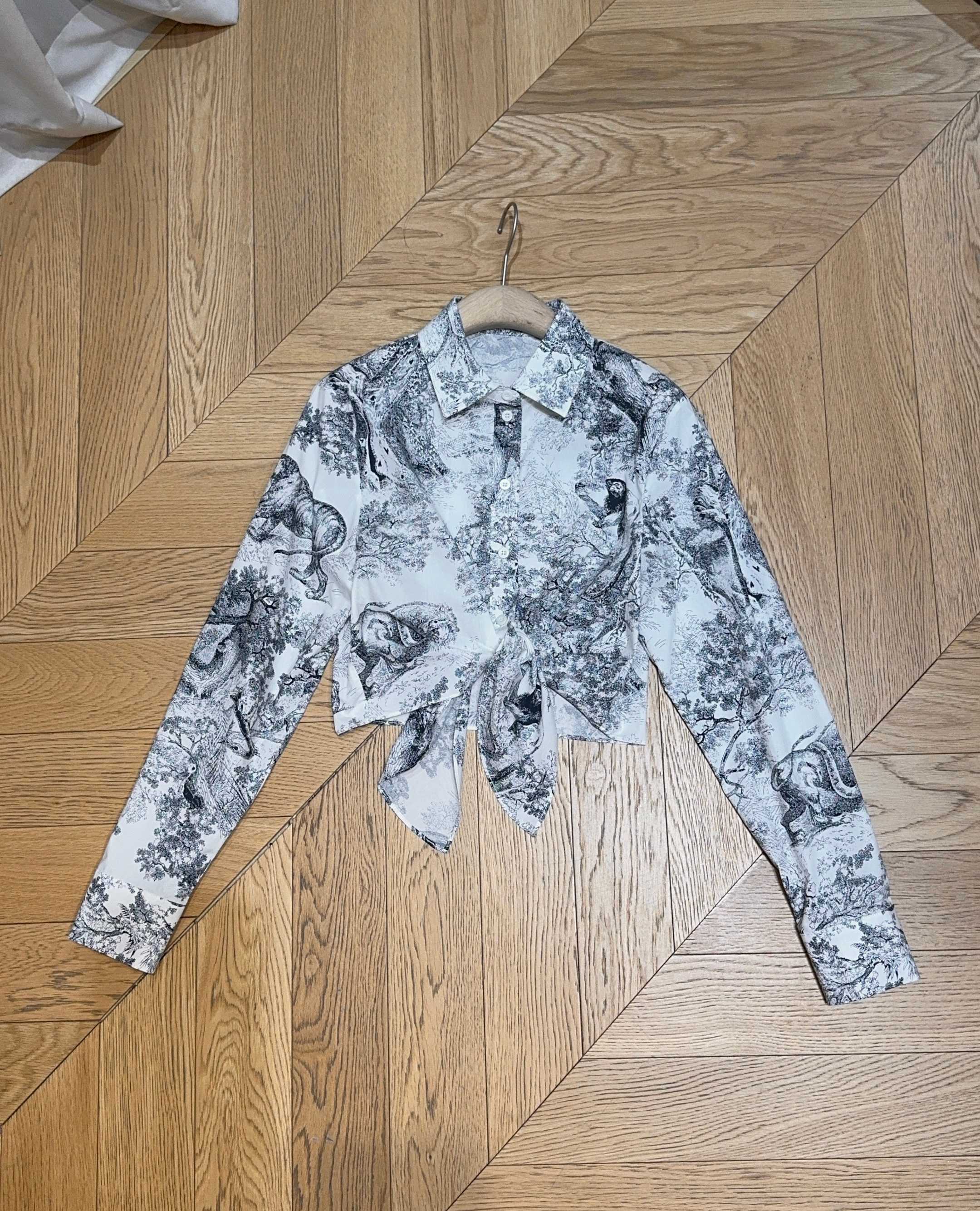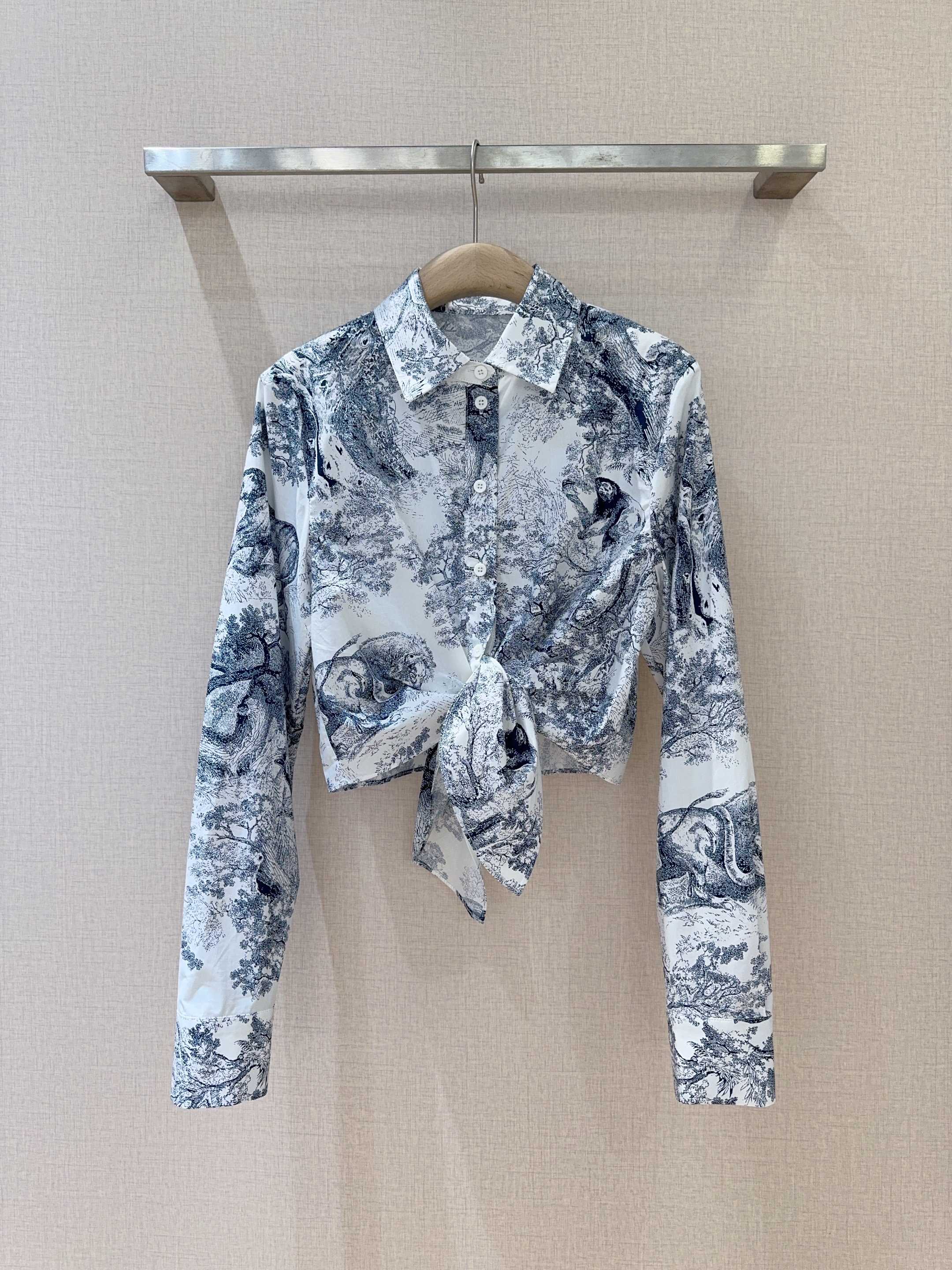 NIGO Dior Women's Dioriviera Short Tunic Shirt Spring Summer Lapel Tie Long Sleeve Single Breasted Shirt Fashion Casual Jacket Ngvp #nigo1617