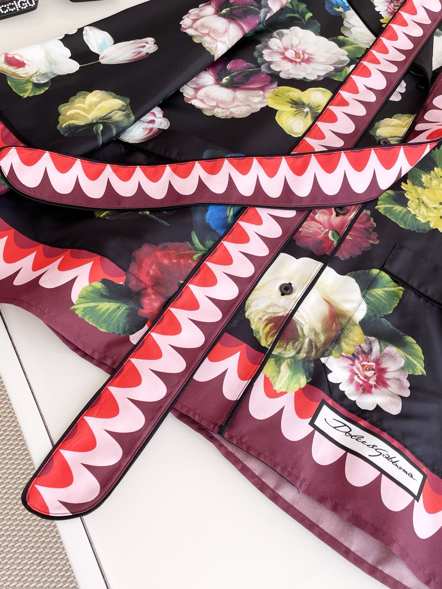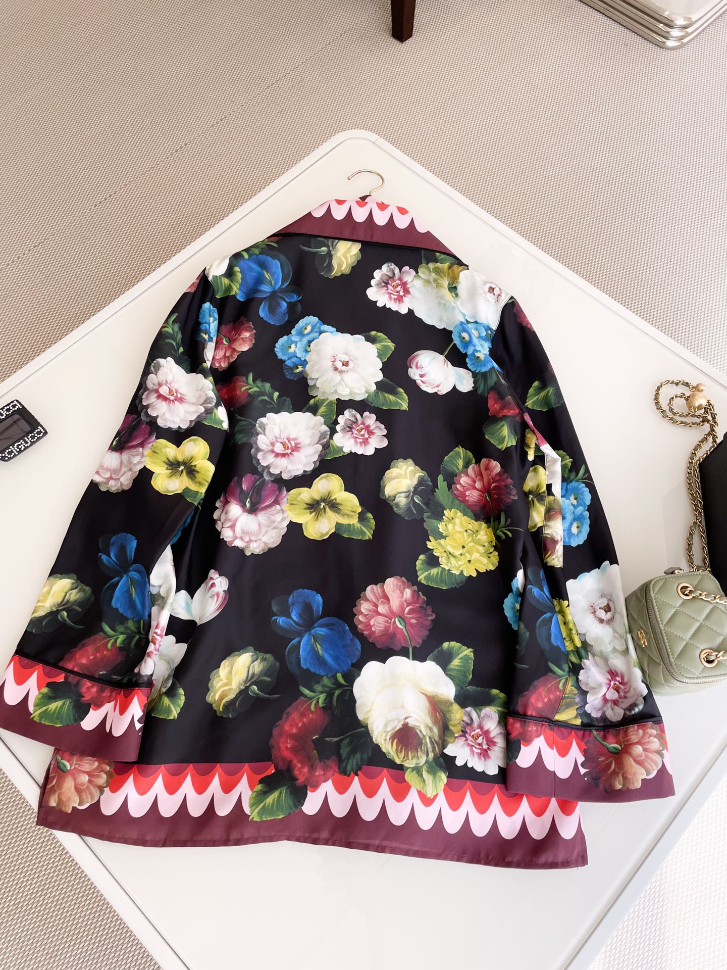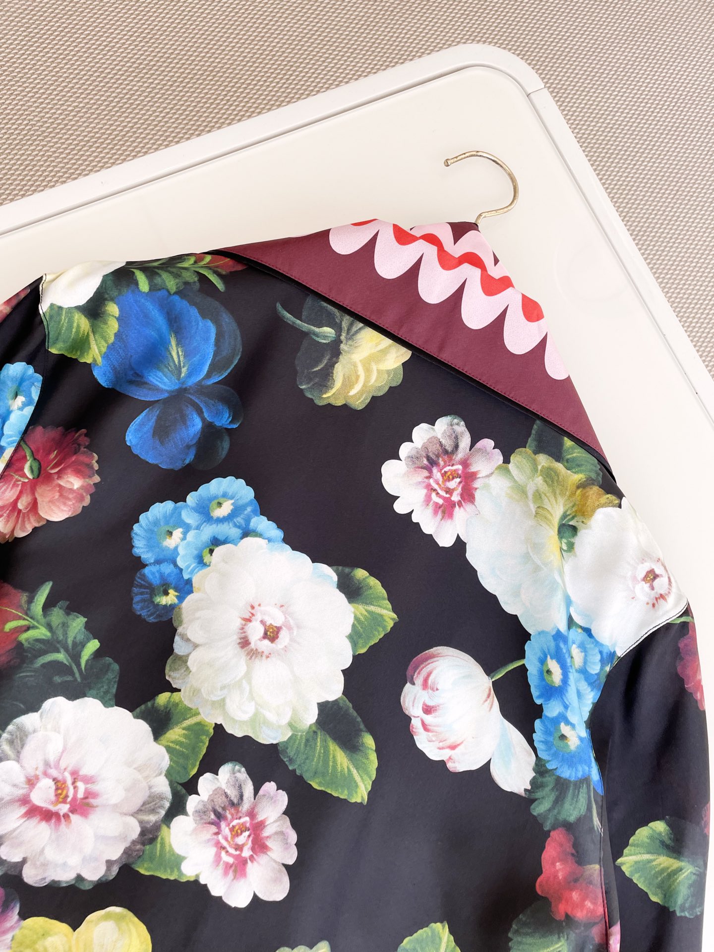 NIGO Dolce&Gabbana Women's Spring And Fall Nocturnal Flower Printed Silk Lapel Tie Single-Breasted Twill Pajamas Long-Sleeved Shirt Ngvp #nigo9164