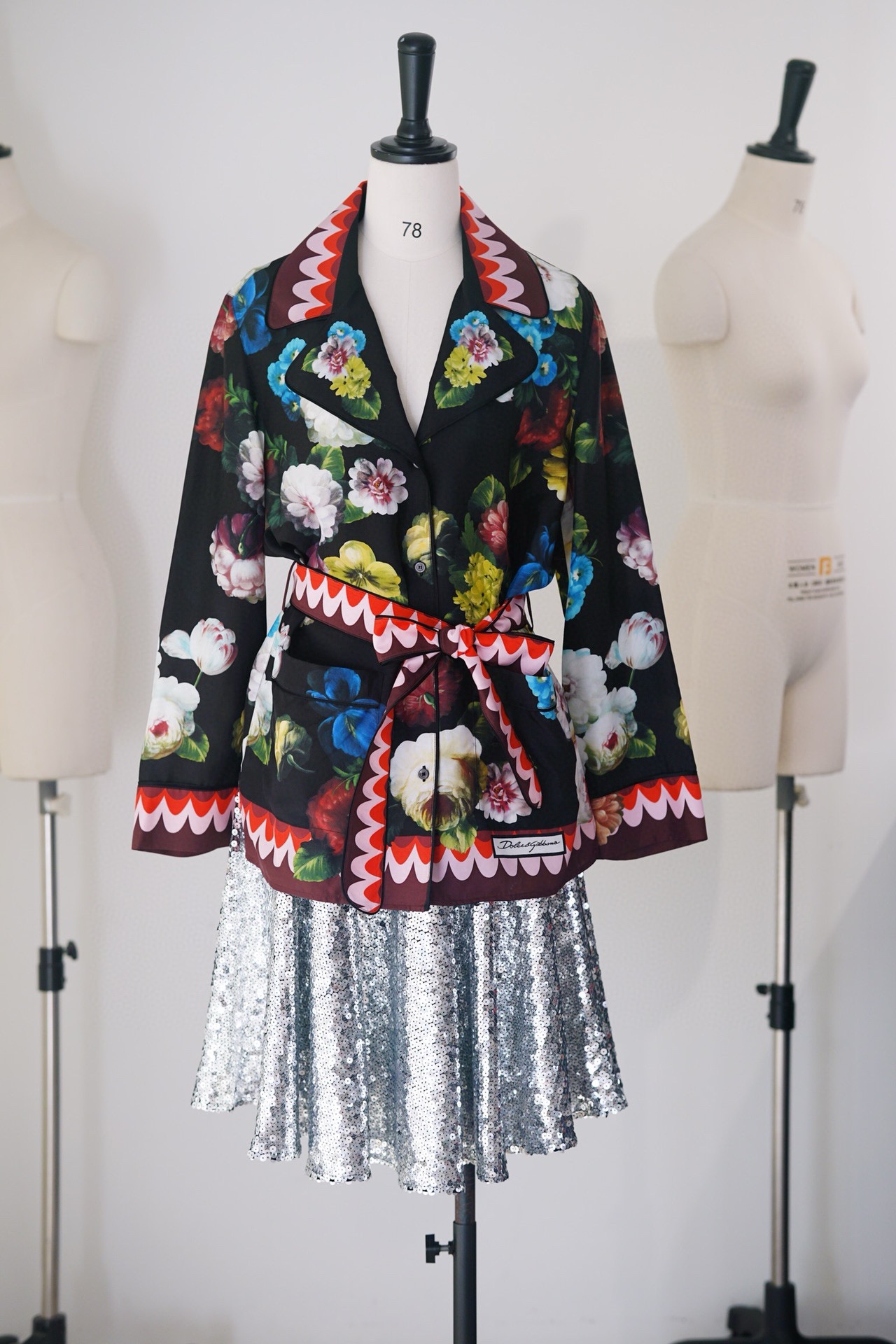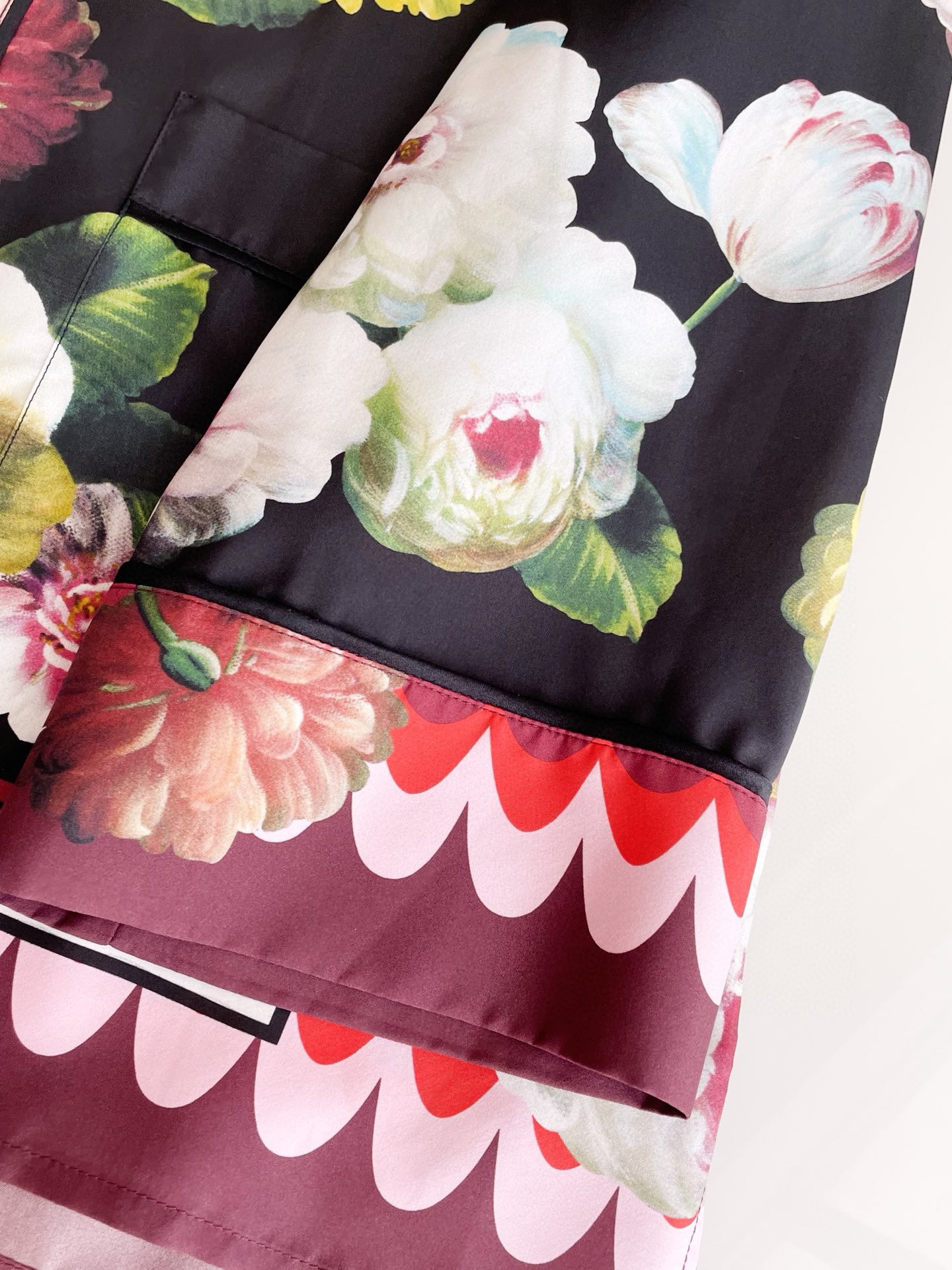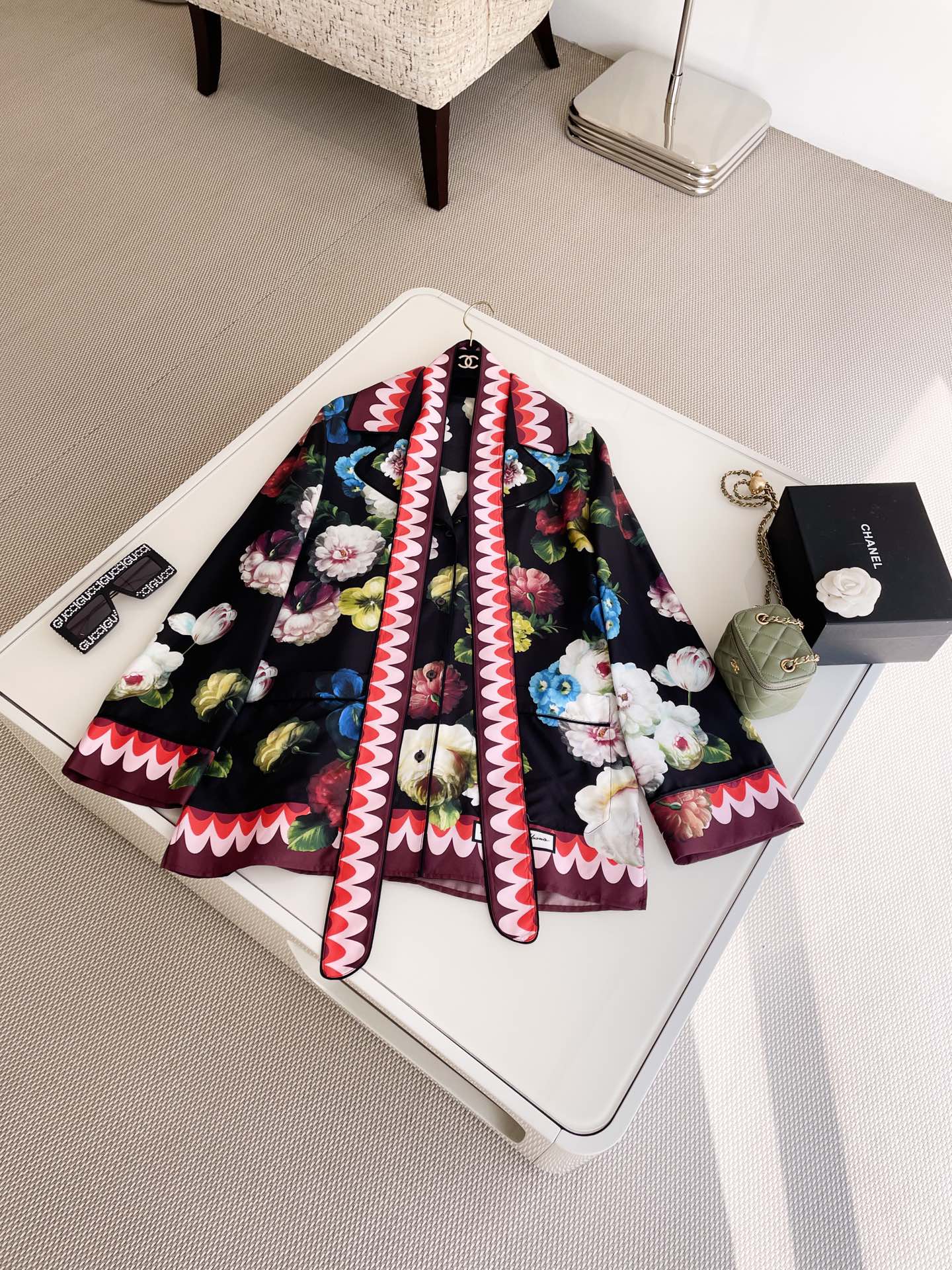 NIGO Dolce&Gabbana Women's Spring And Fall Nocturnal Flower Printed Silk Lapel Tie Single-Breasted Twill Pajamas Long-Sleeved Shirt Ngvp #nigo9164