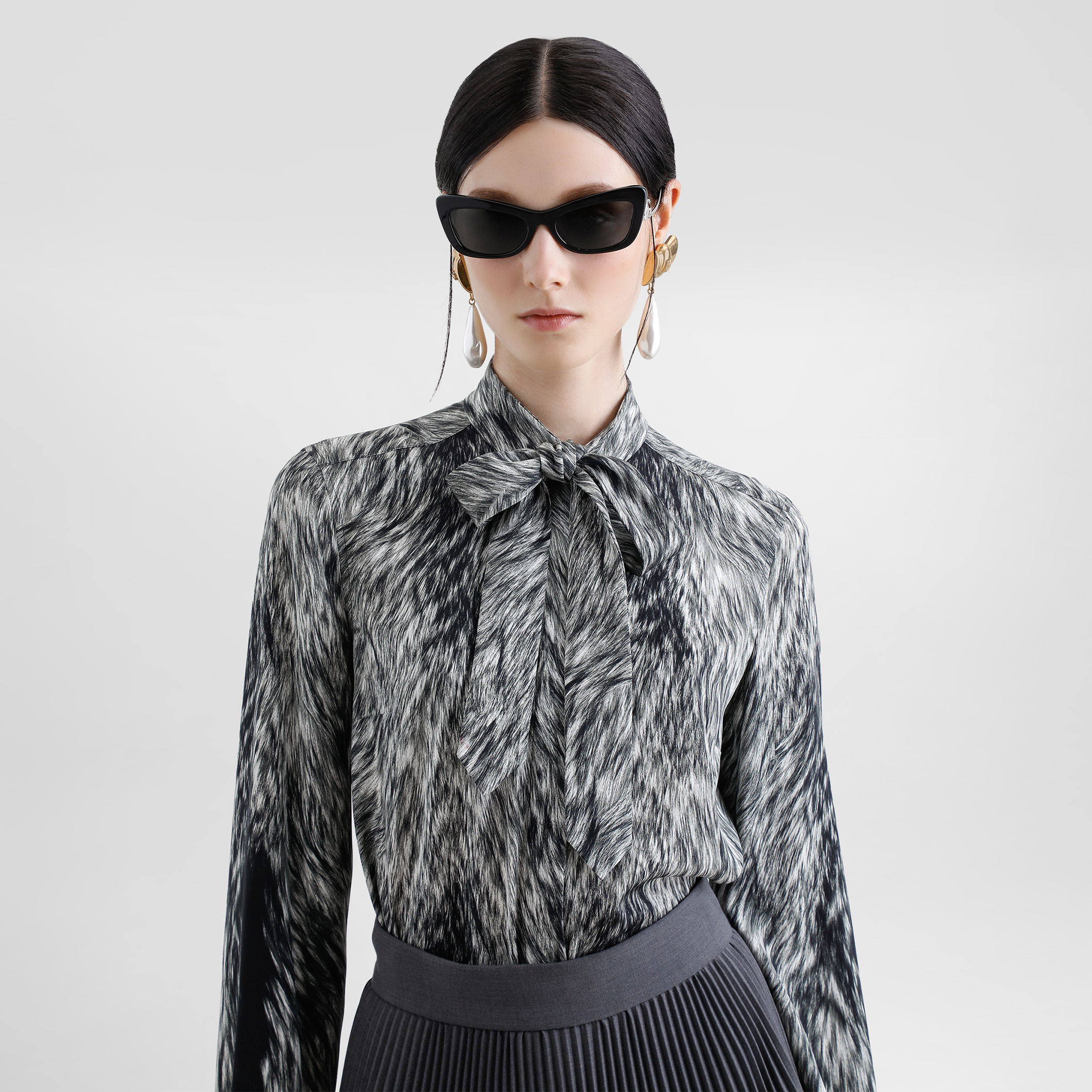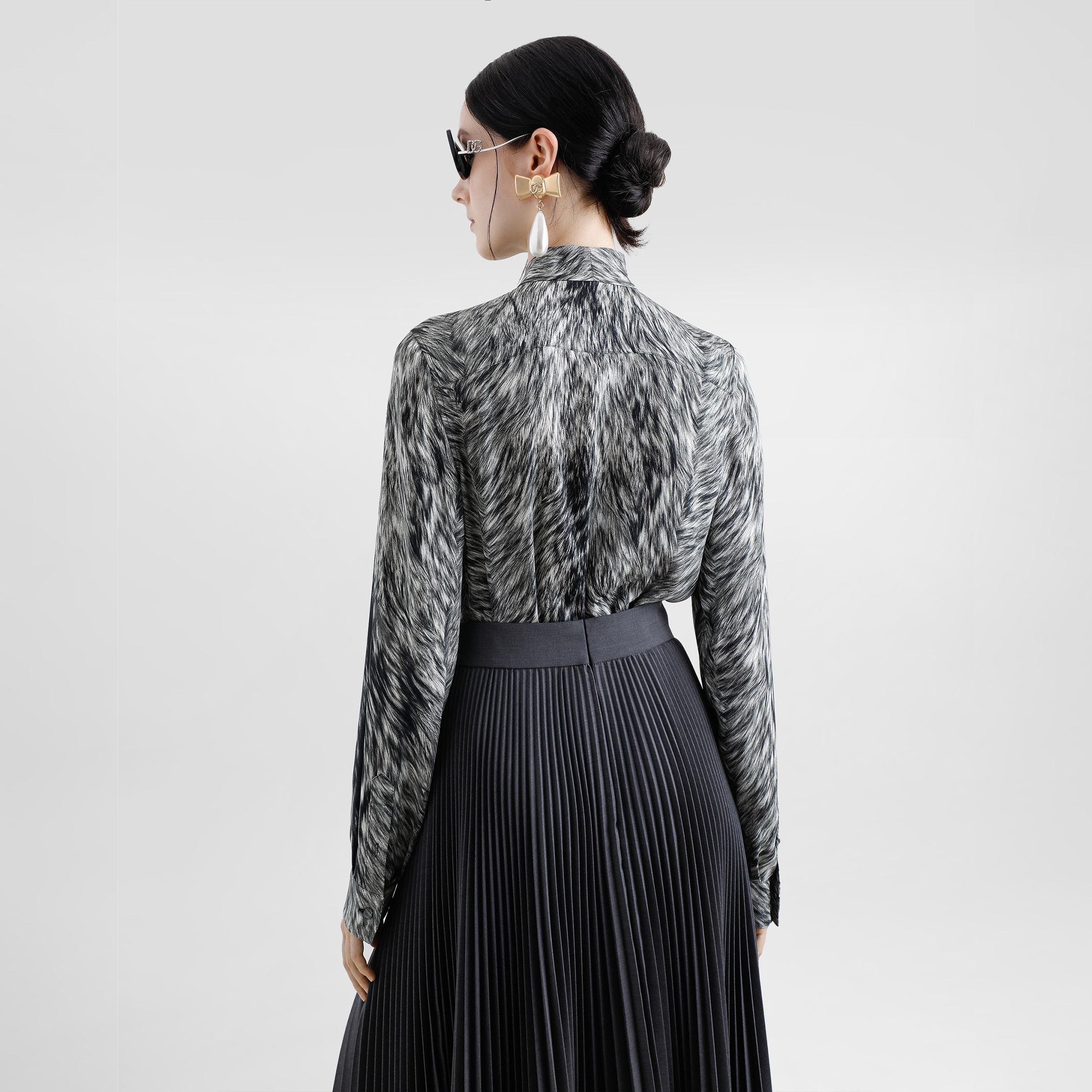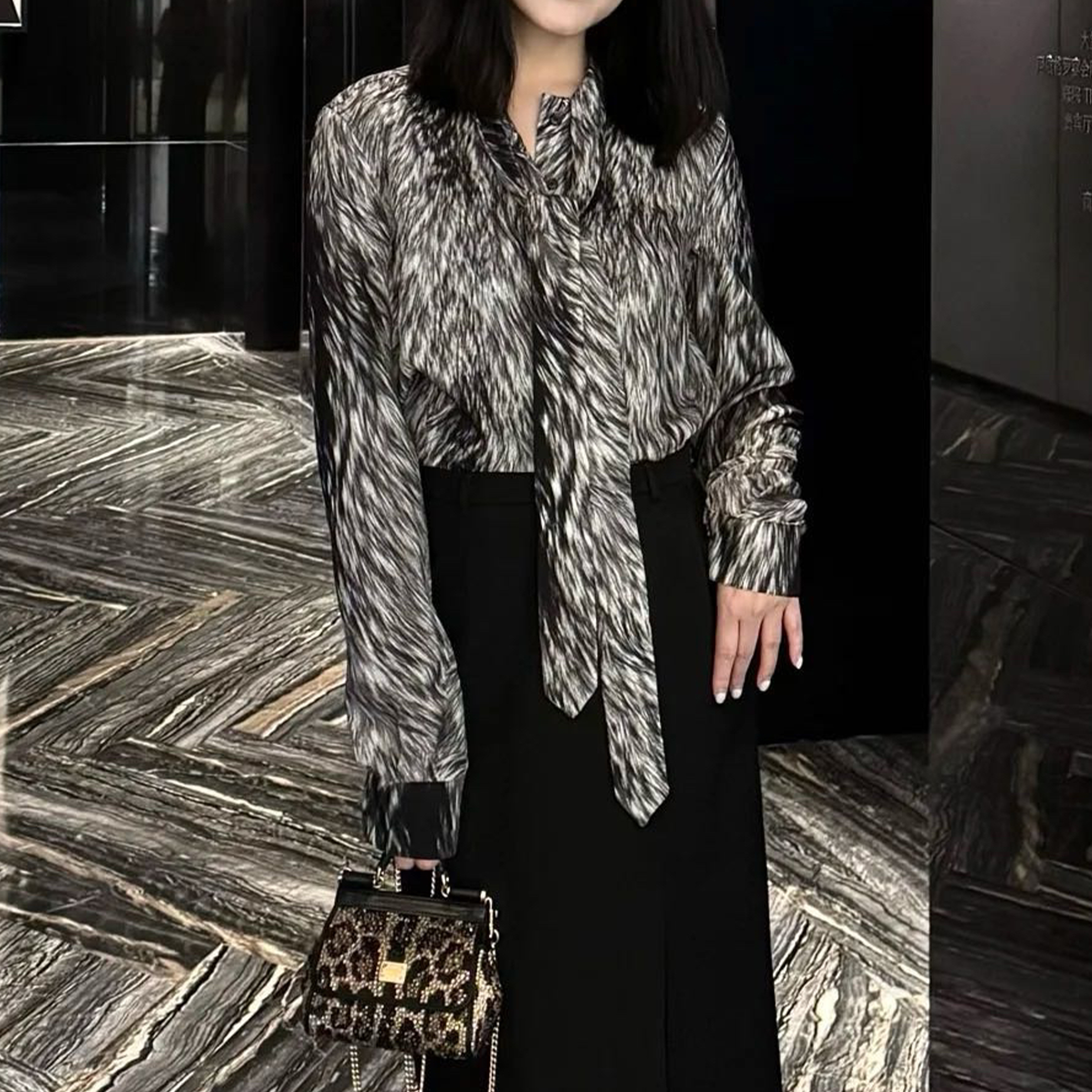 NIGO Dolce&Gabbana Women's Spring And Summer Silk Printed Bow Shirt Fashion Temperament Elegant Long Sleeve Blouse Top Ngvp #nigo1639