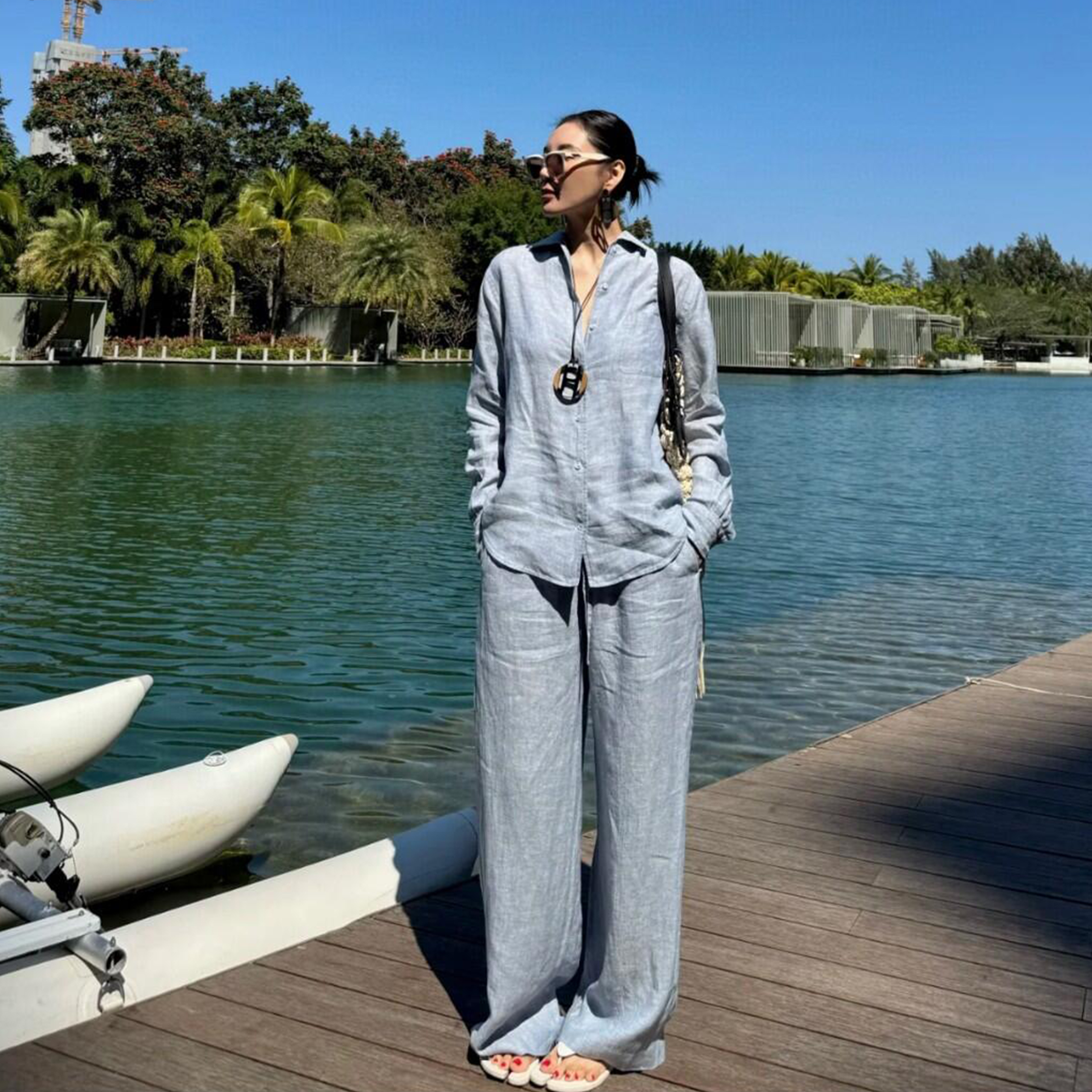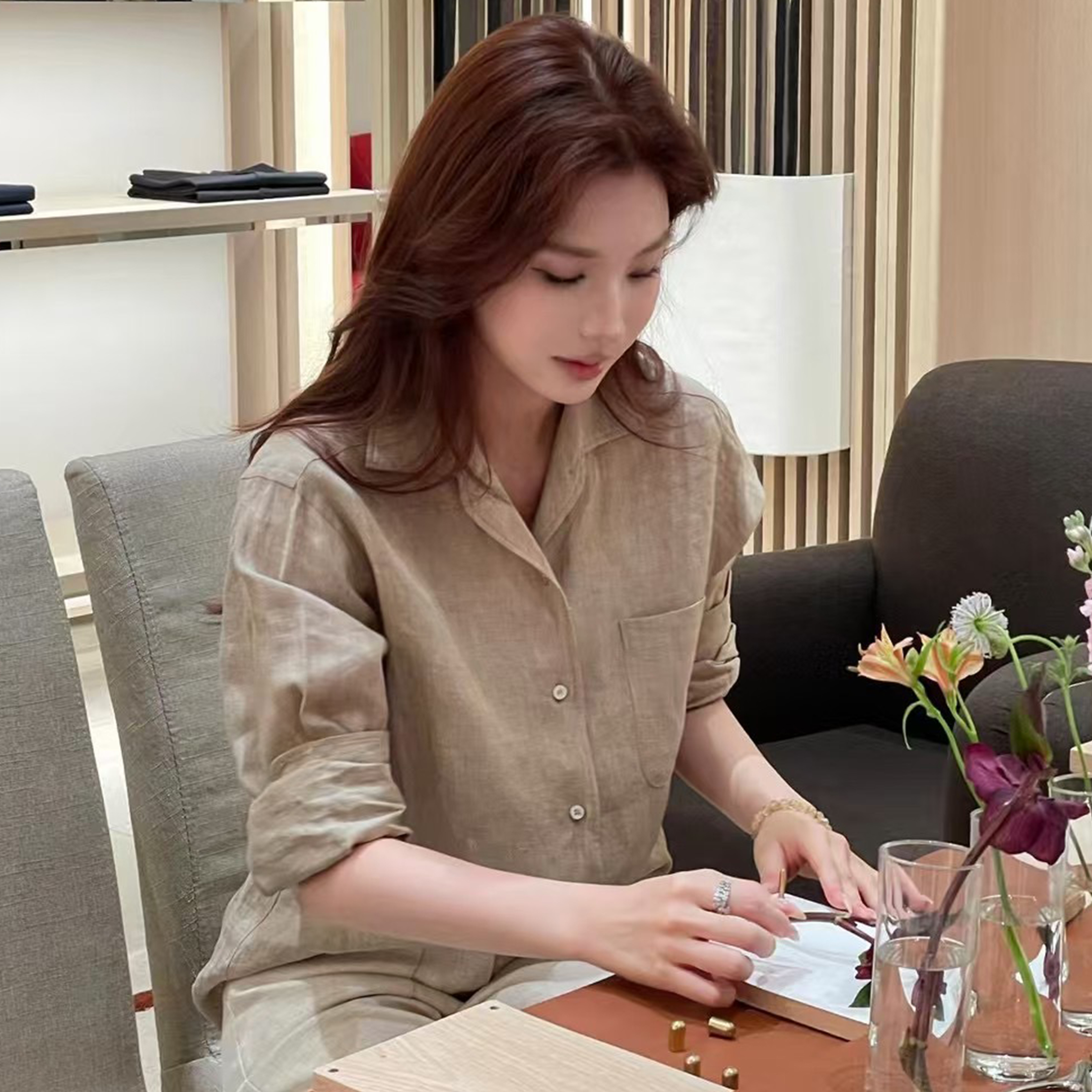 NIGO Loro Piana André Women's Shirt Spring And Summer Solid Colour Fashion Temperament Linen Lapel Single-breasted Shirt Ngvp #nigo1611