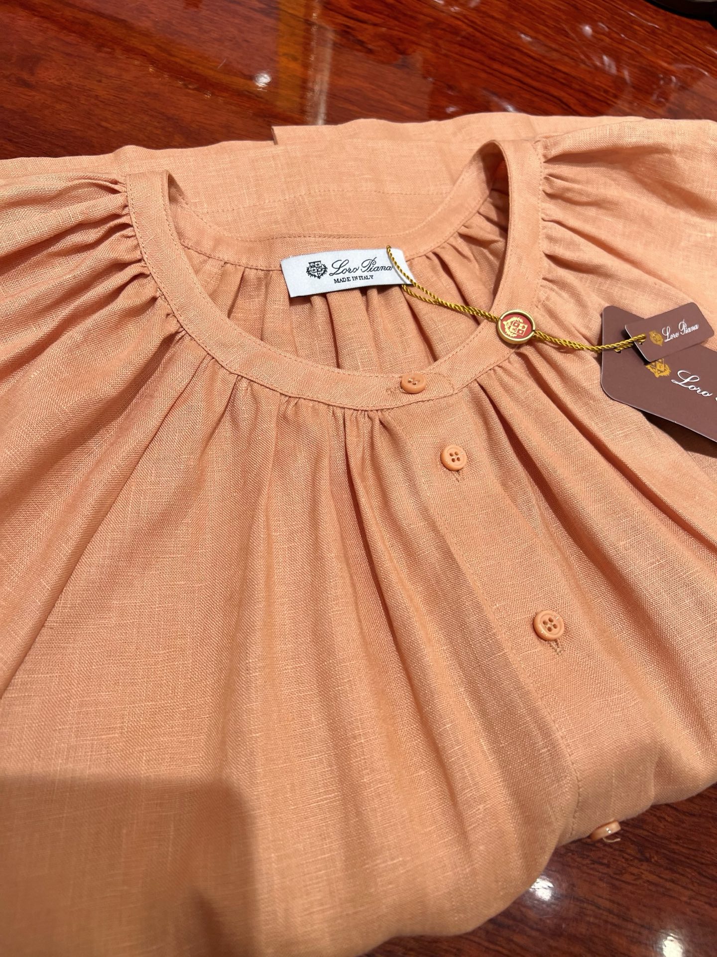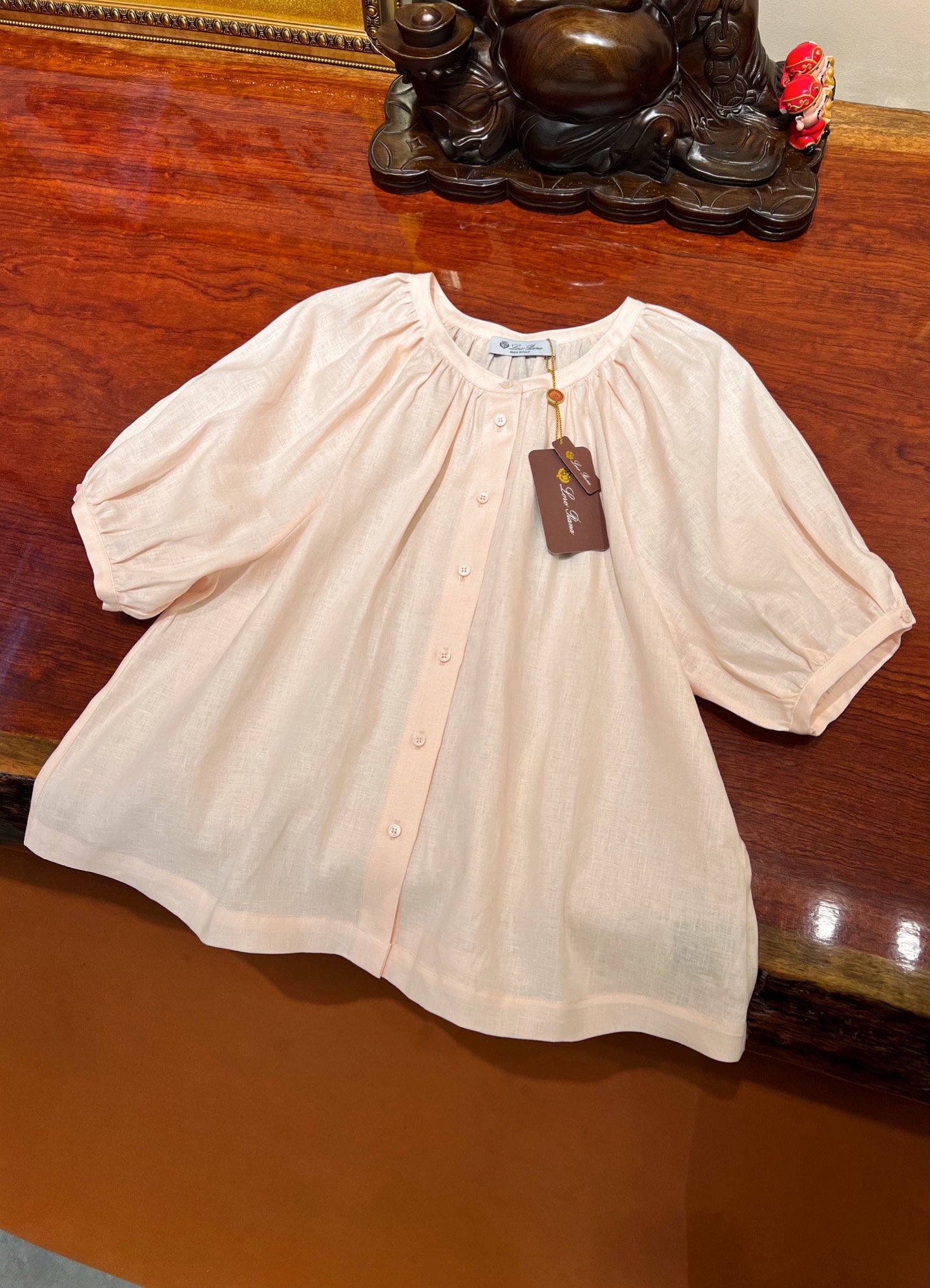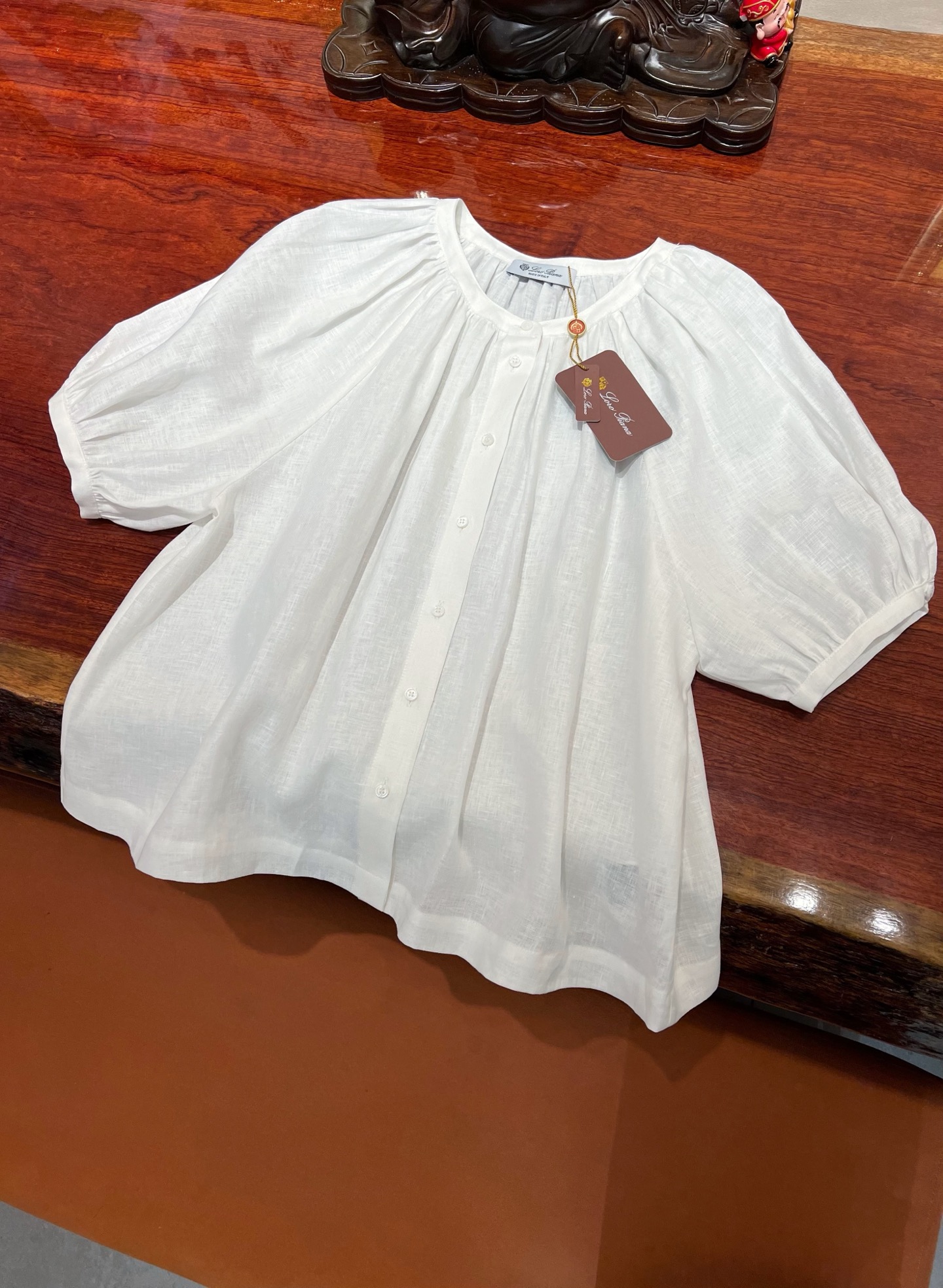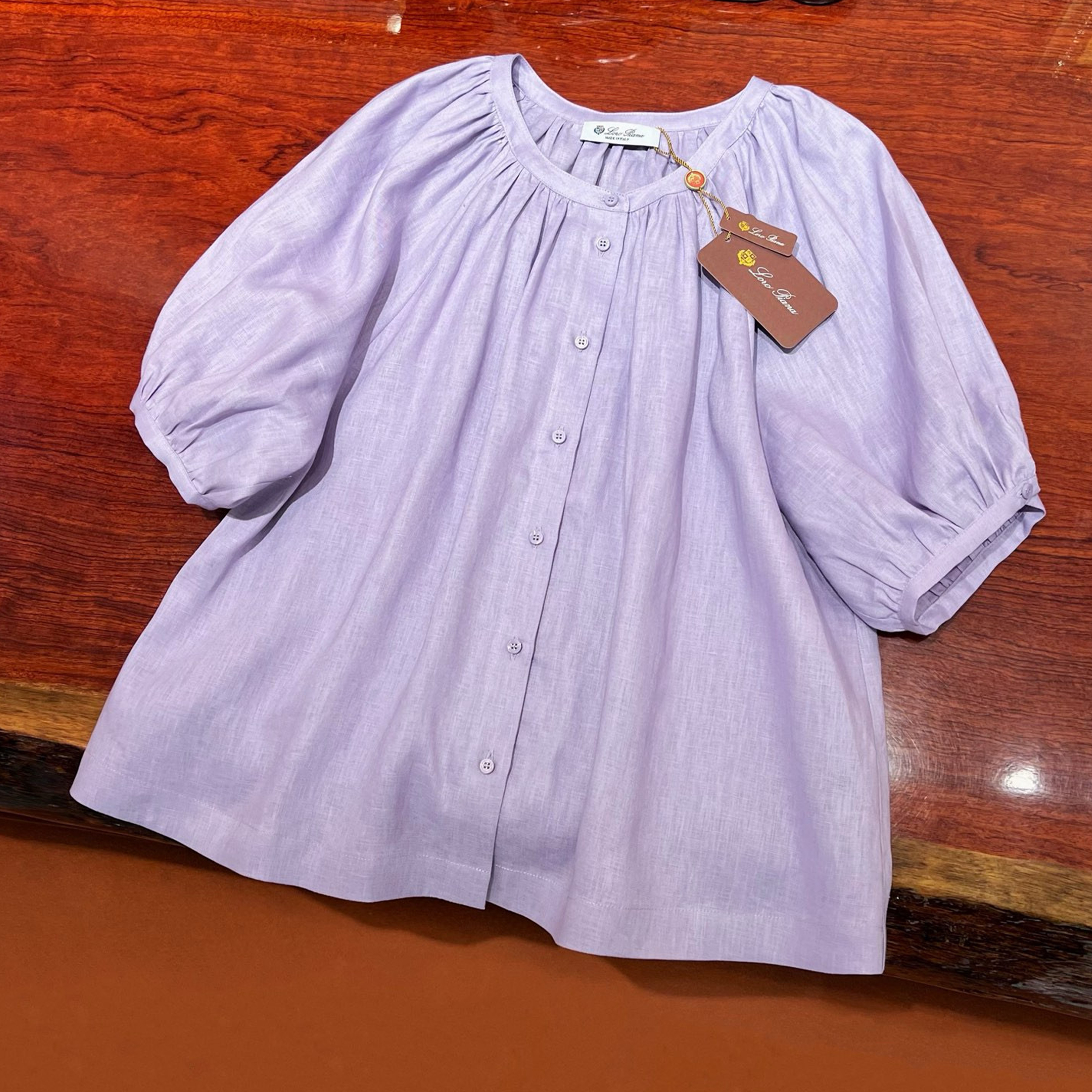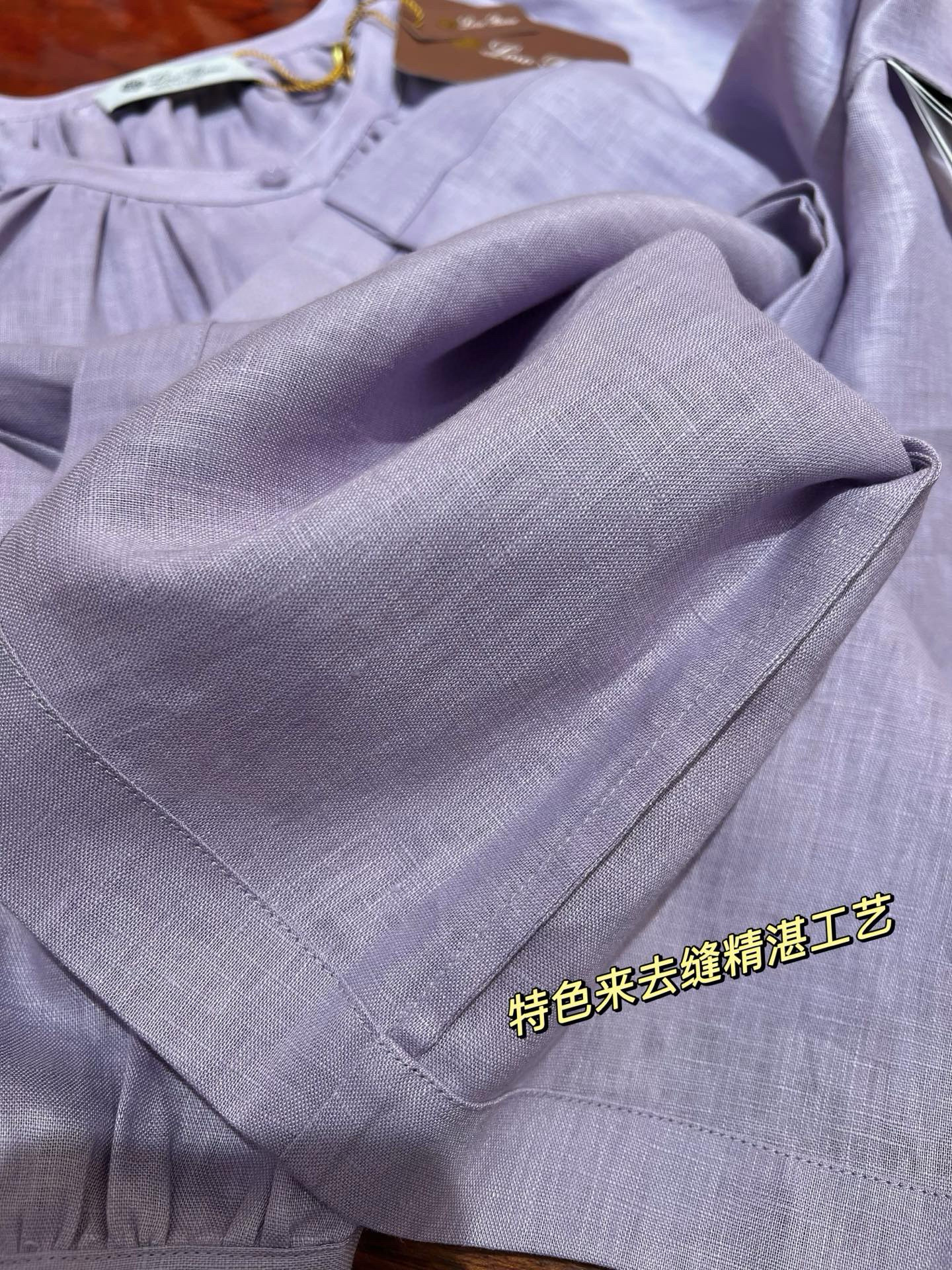 NIGO Loro Piana Women's Spring And Summer Delicate Round Neck Pleated Short-sleeved Premium Linen Silhouette Elegant Versatile T-shirt Shirt Tops Ngvp #nigo1616