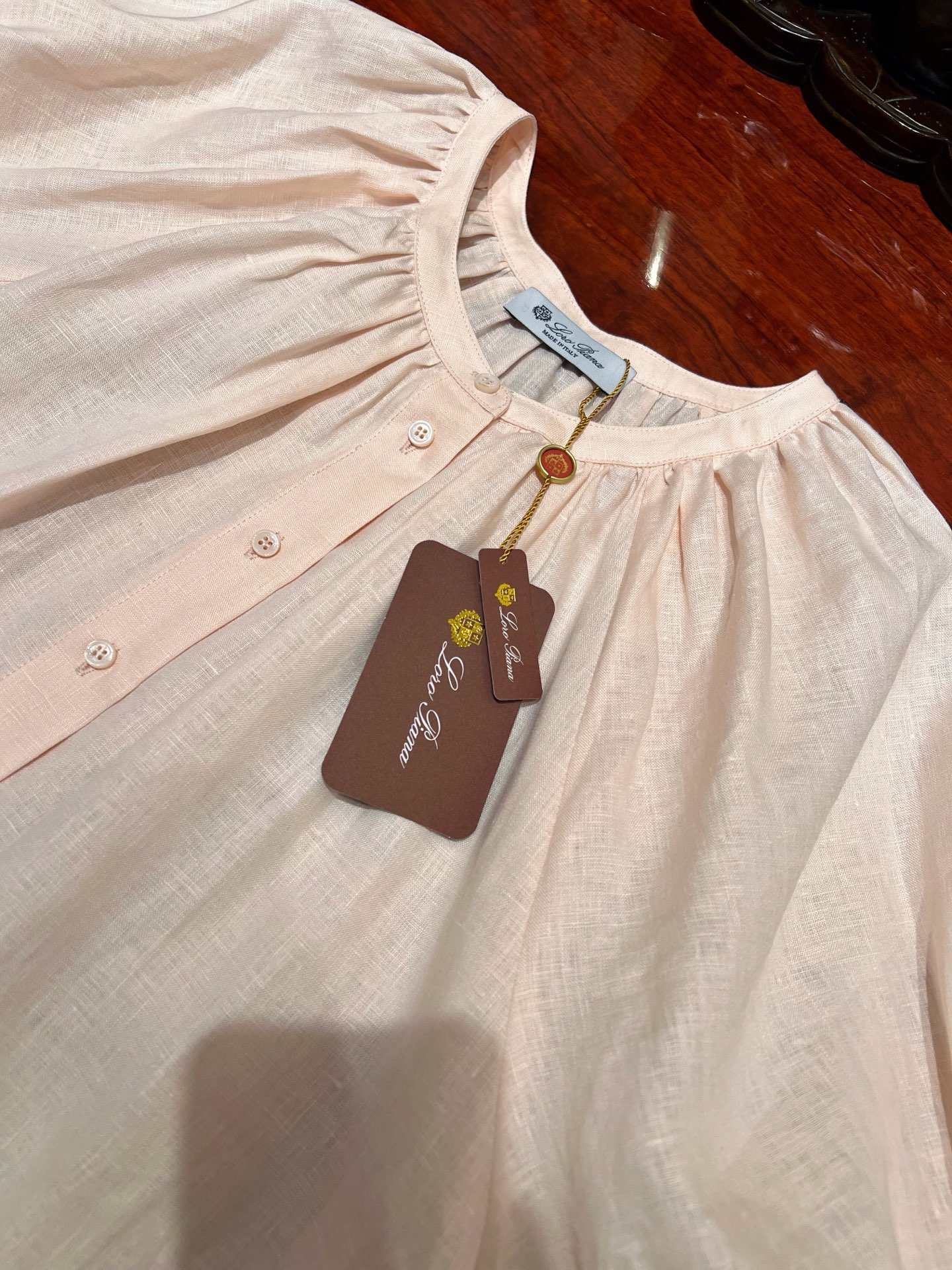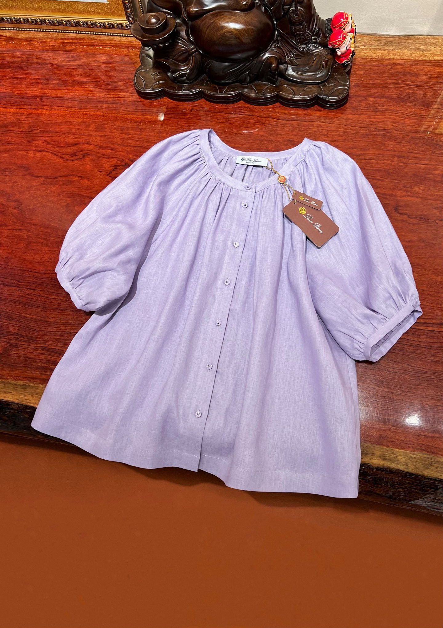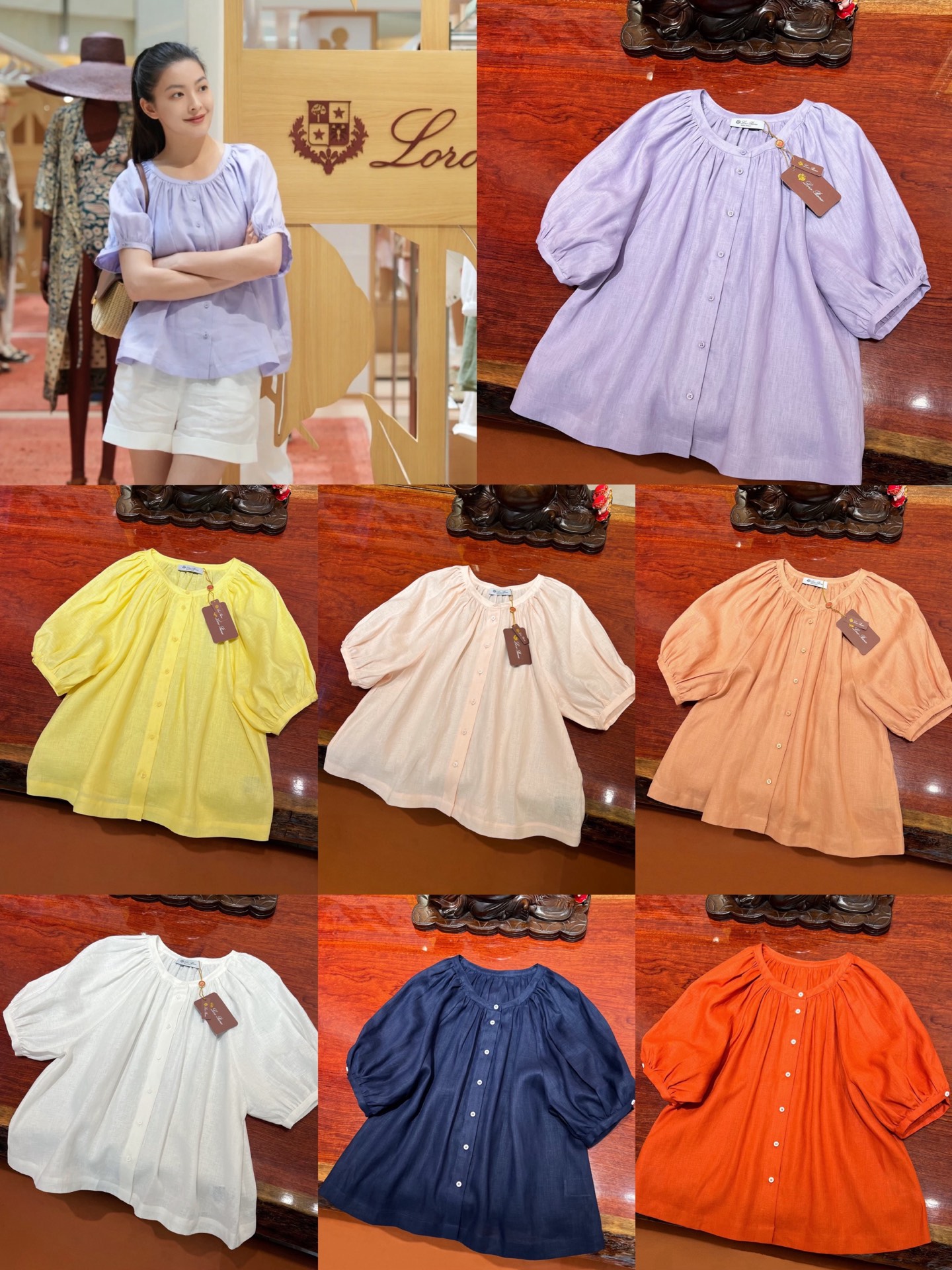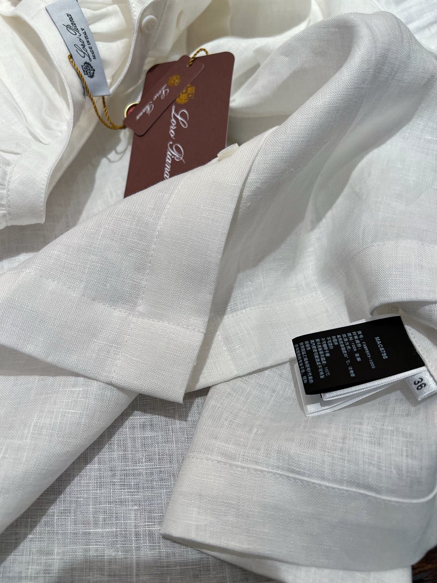 NIGO Loro Piana Women's Spring And Summer Delicate Round Neck Pleated Short-sleeved Premium Linen Silhouette Elegant Versatile T-shirt Shirt Tops Ngvp #nigo1616