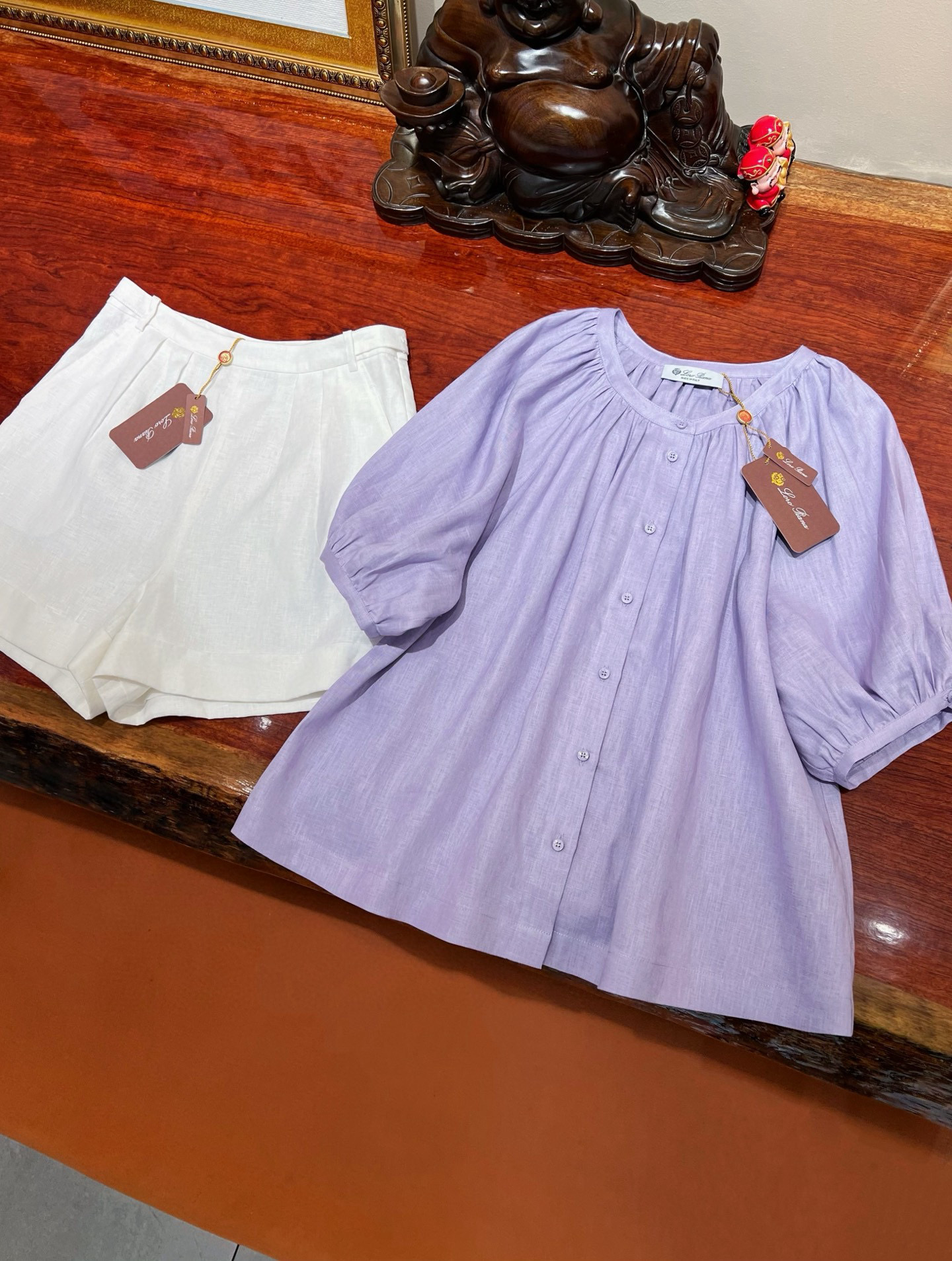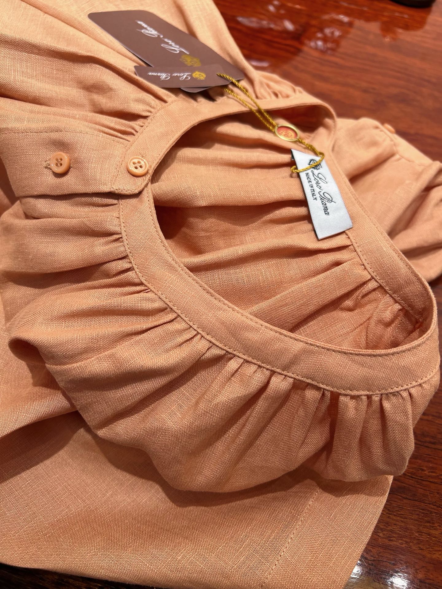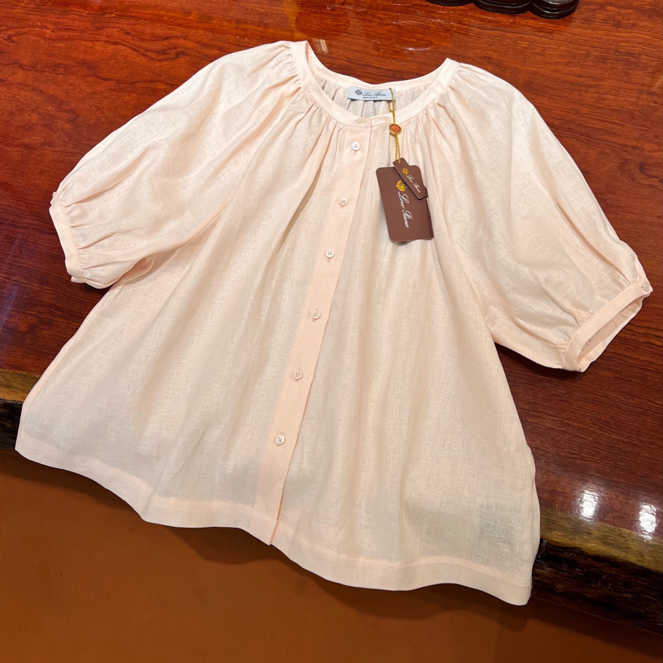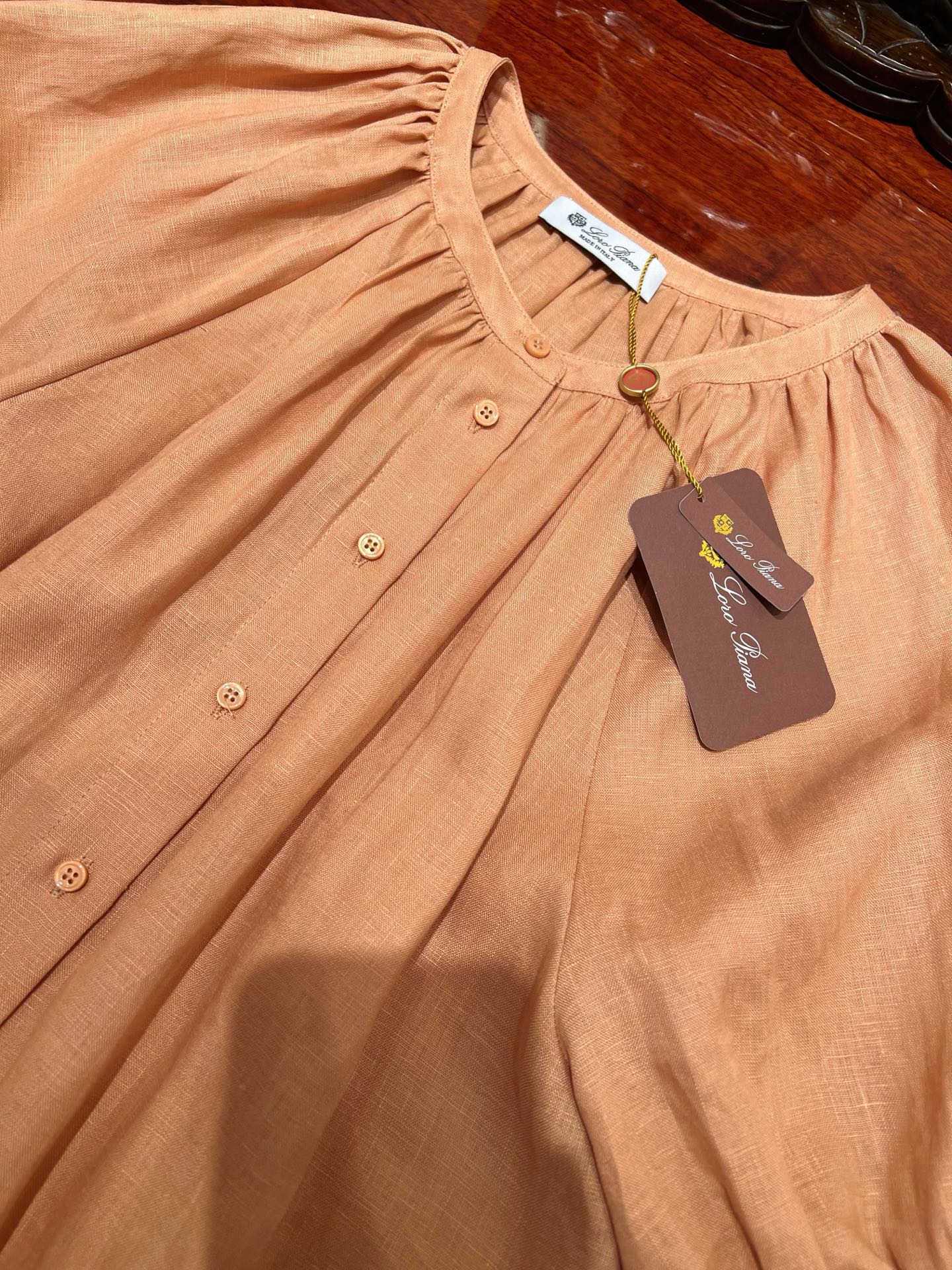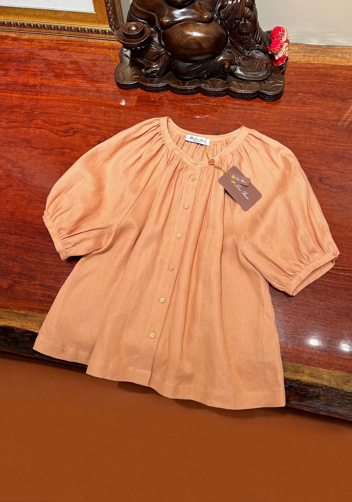 NIGO Loro Piana Women's Spring And Summer Delicate Round Neck Pleated Short-sleeved Premium Linen Silhouette Elegant Versatile T-shirt Shirt Tops Ngvp #nigo1616