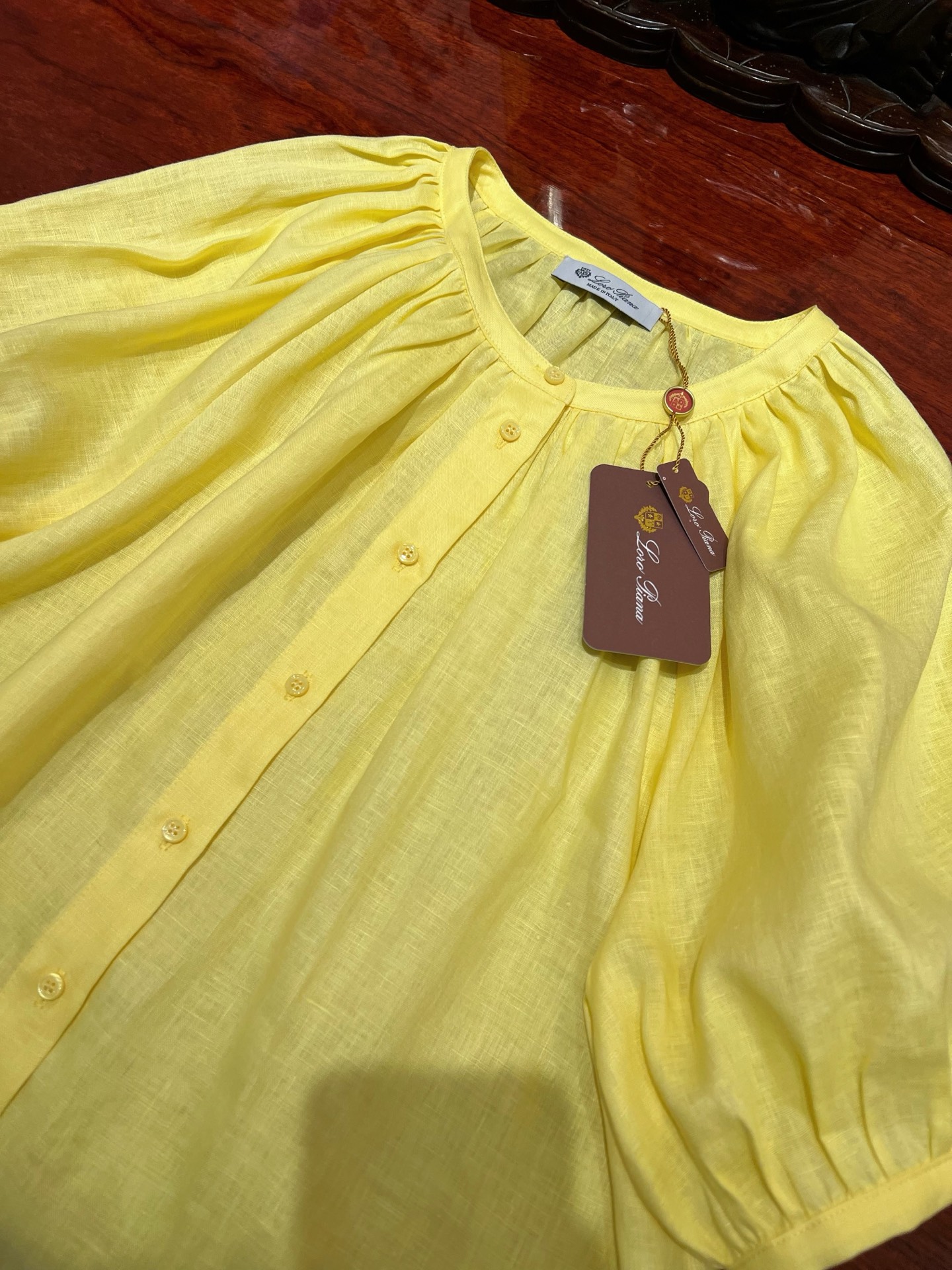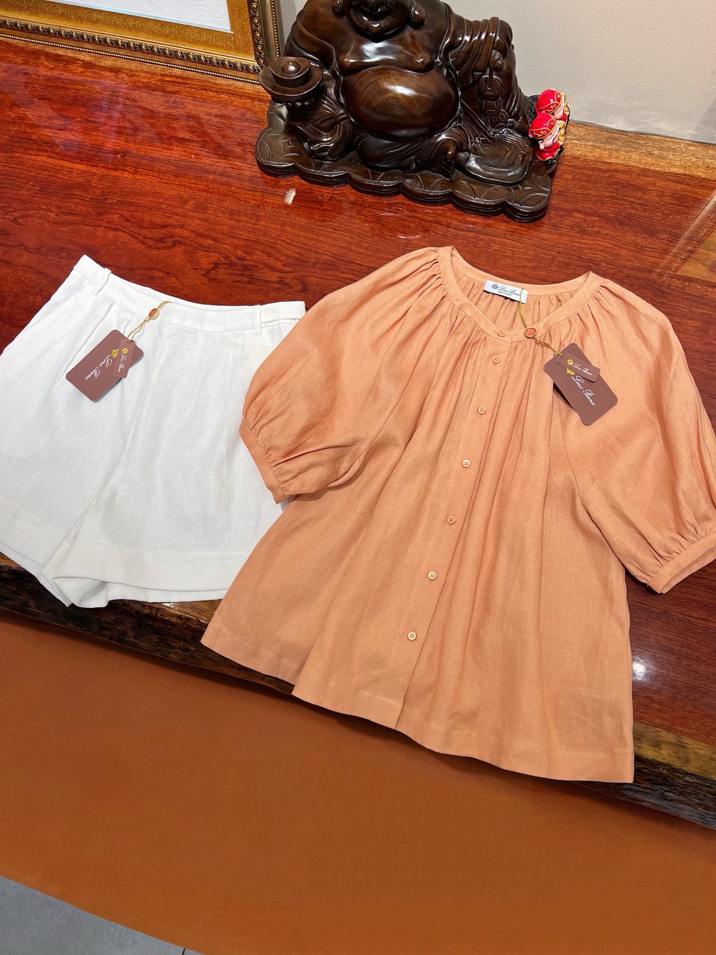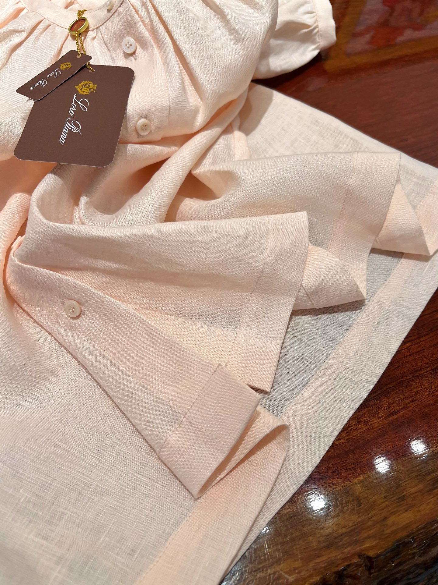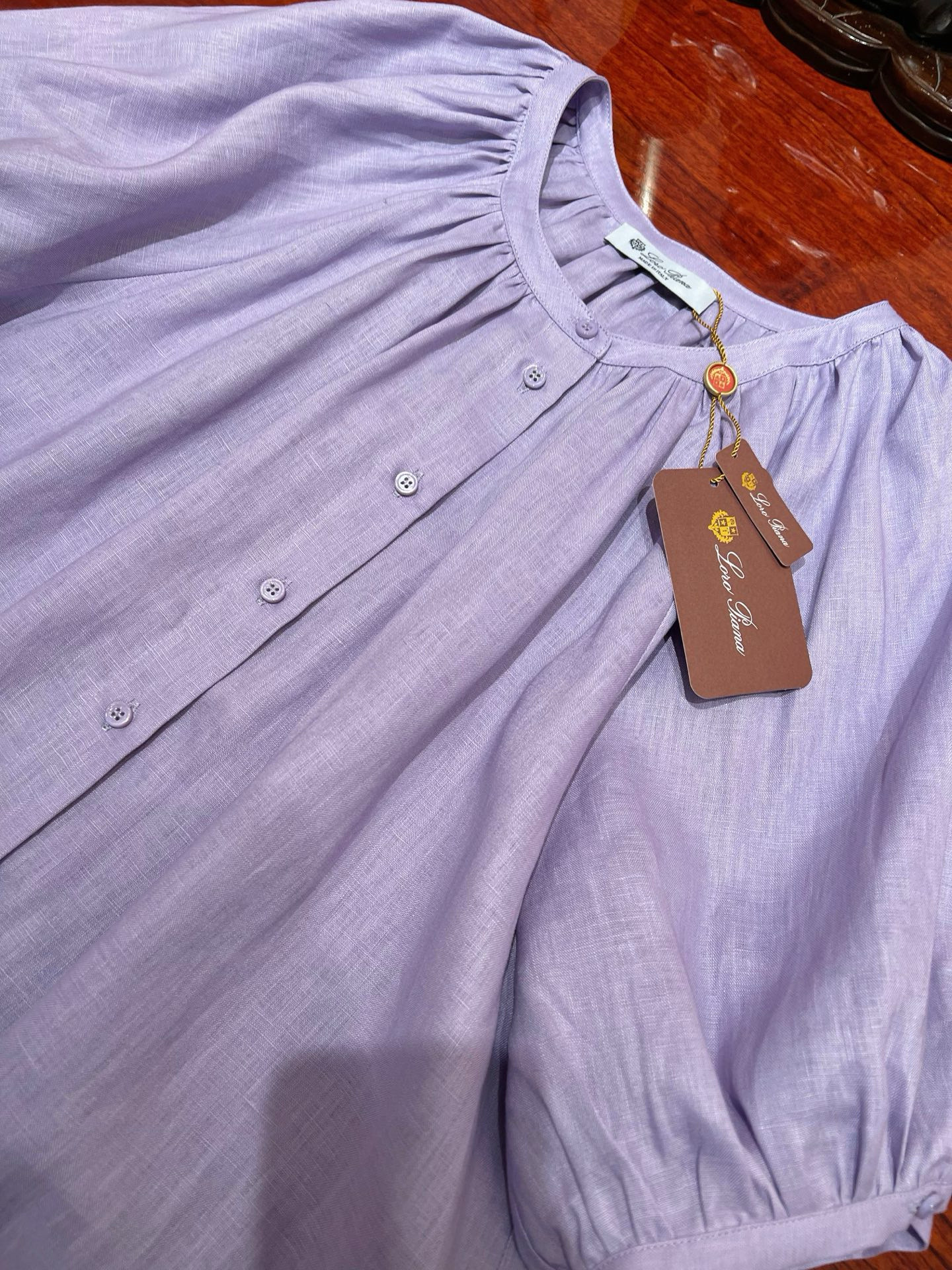 NIGO Loro Piana Women's Spring And Summer Delicate Round Neck Pleated Short-sleeved Premium Linen Silhouette Elegant Versatile T-shirt Shirt Tops Ngvp #nigo1616