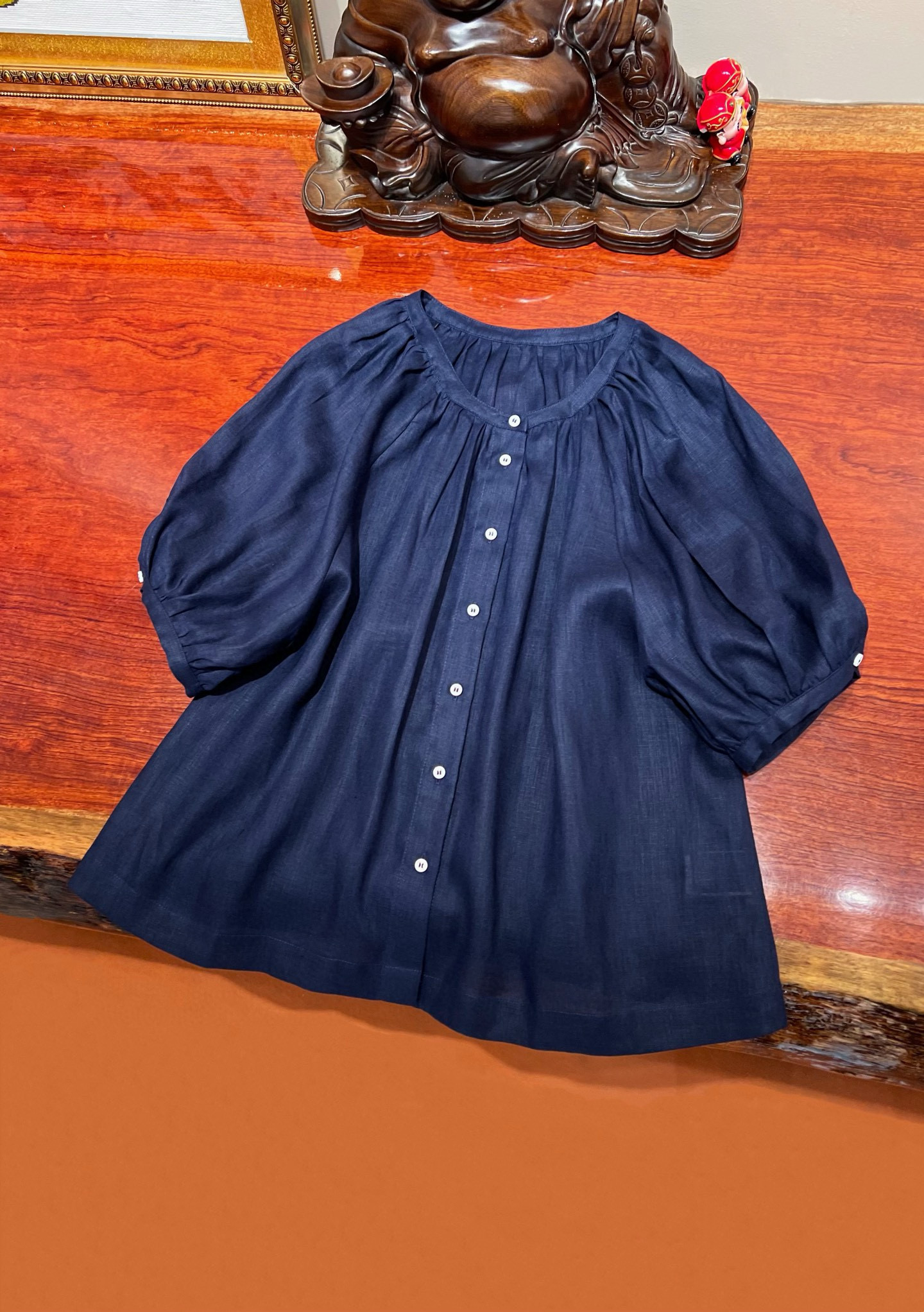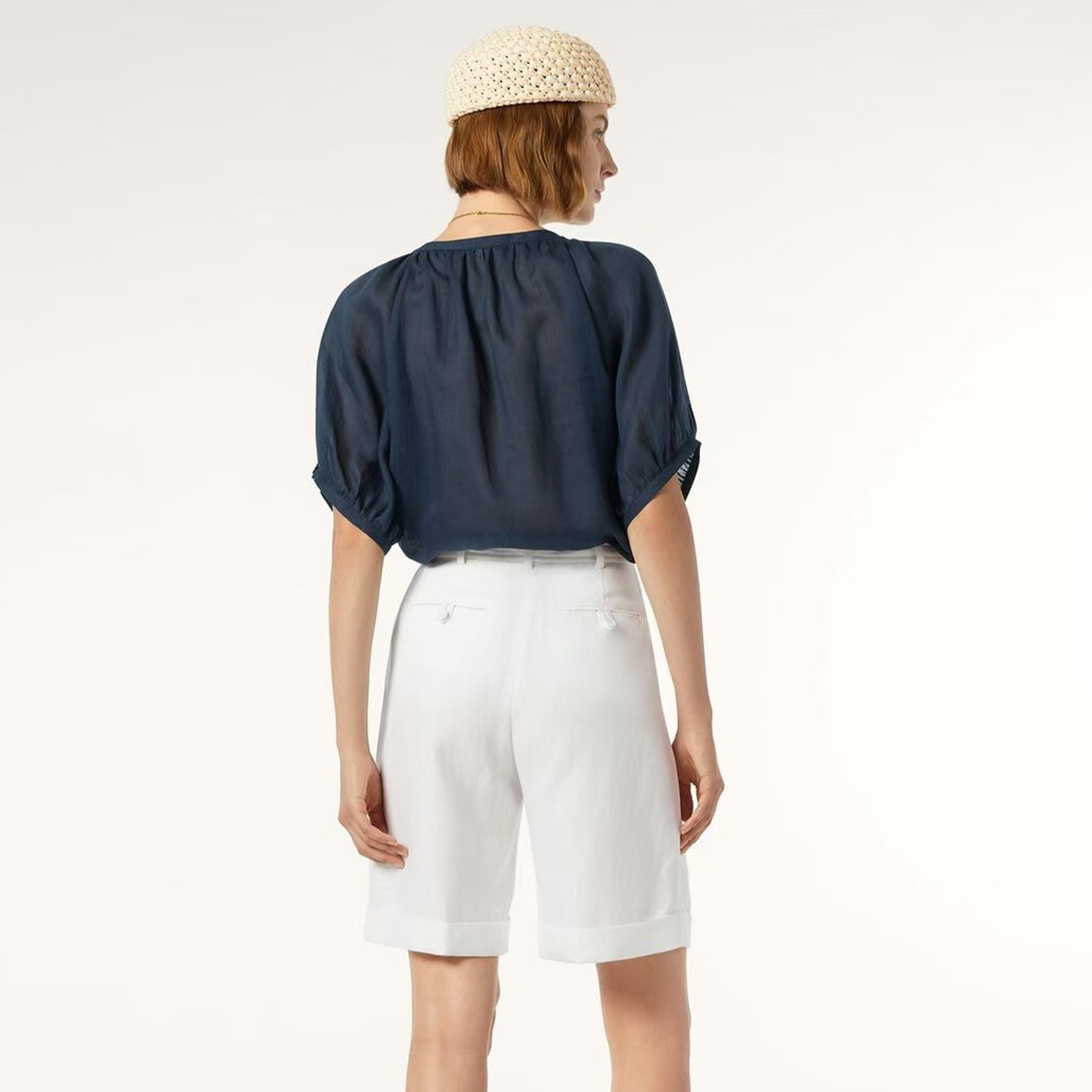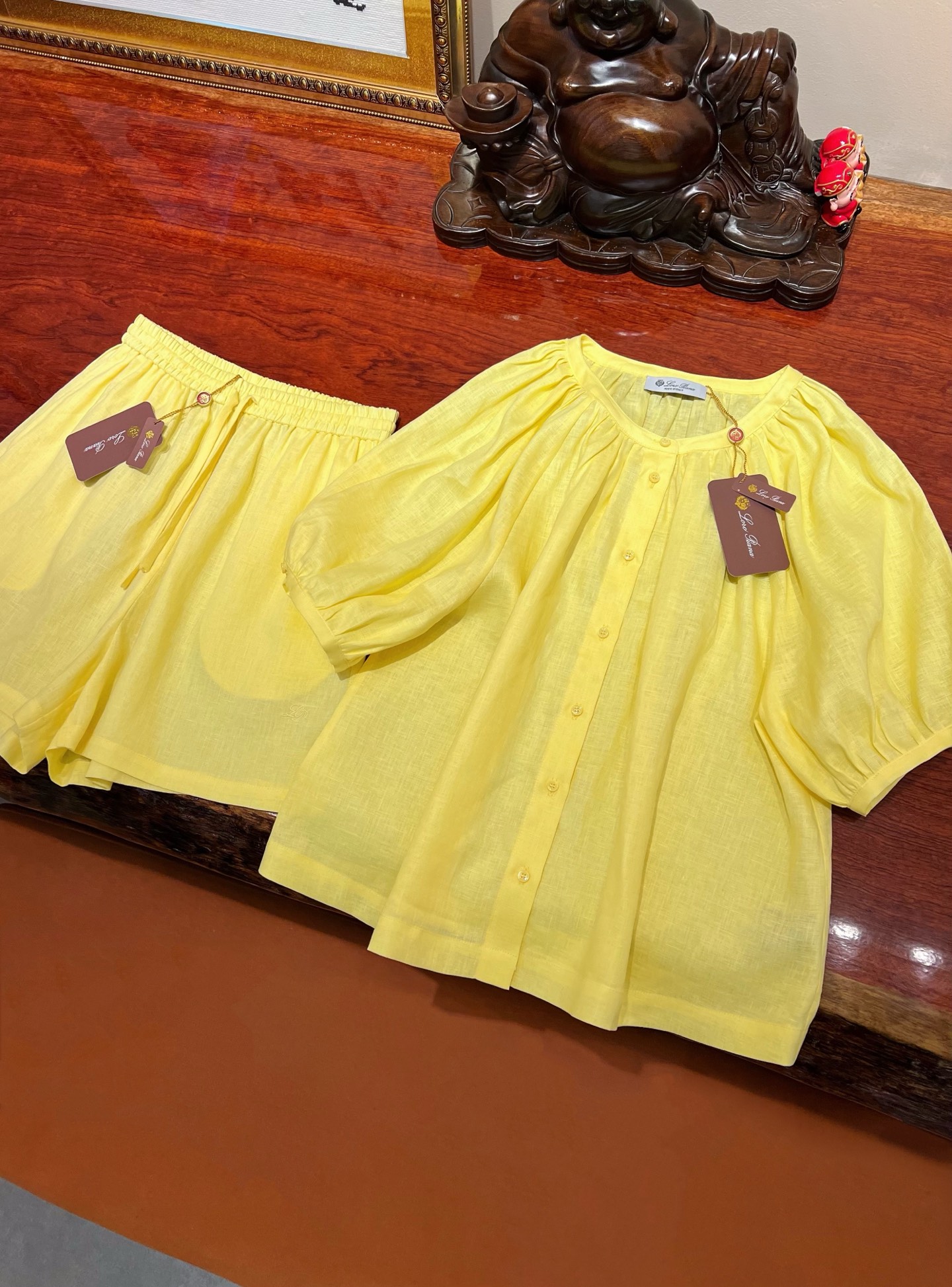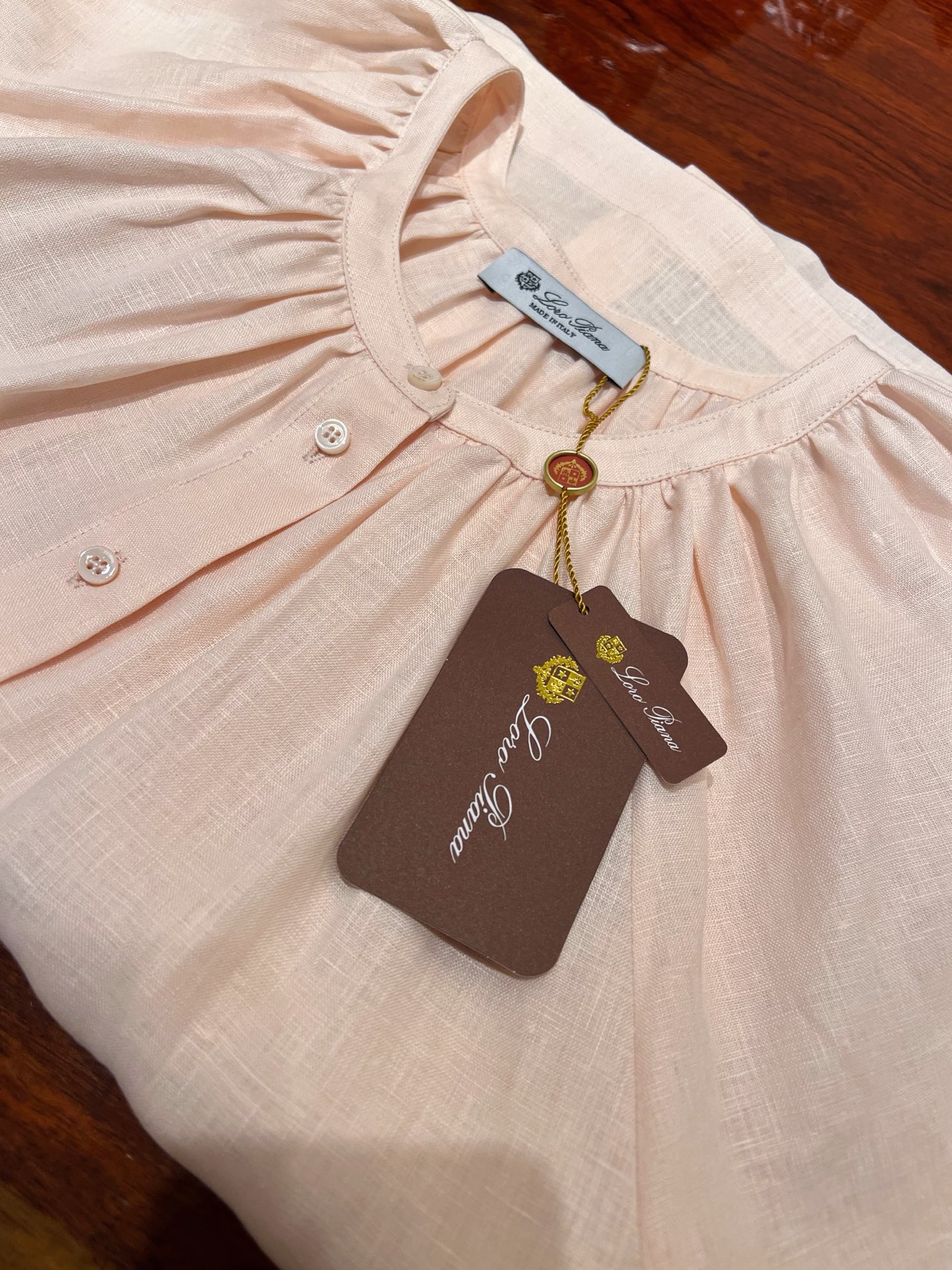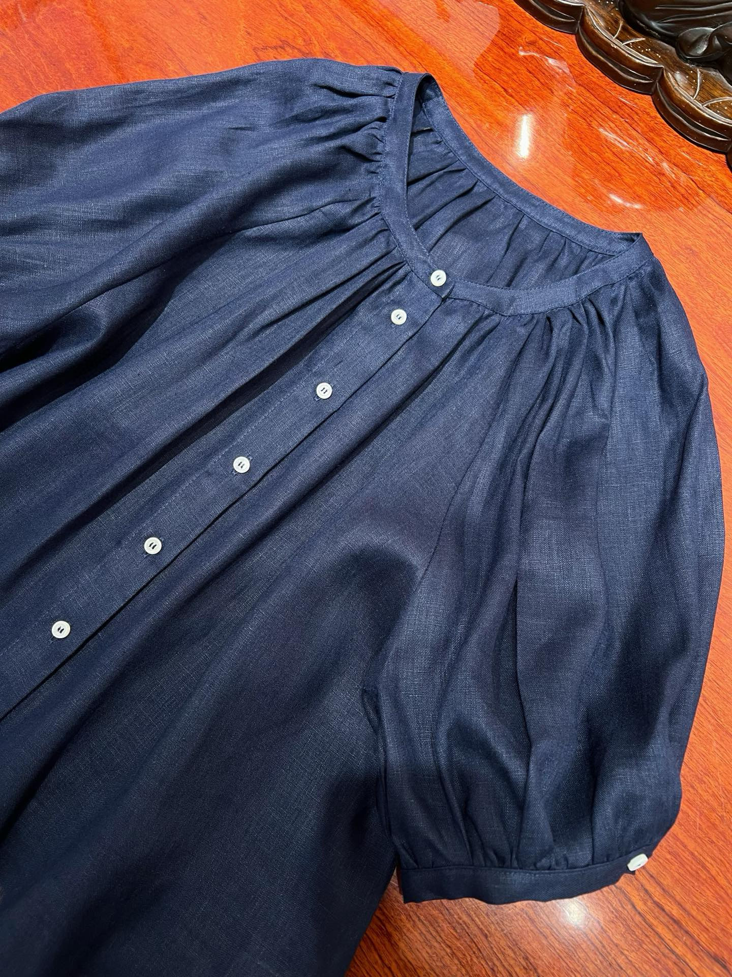 NIGO Loro Piana Women's Spring And Summer Delicate Round Neck Pleated Short-sleeved Premium Linen Silhouette Elegant Versatile T-shirt Shirt Tops Ngvp #nigo1616