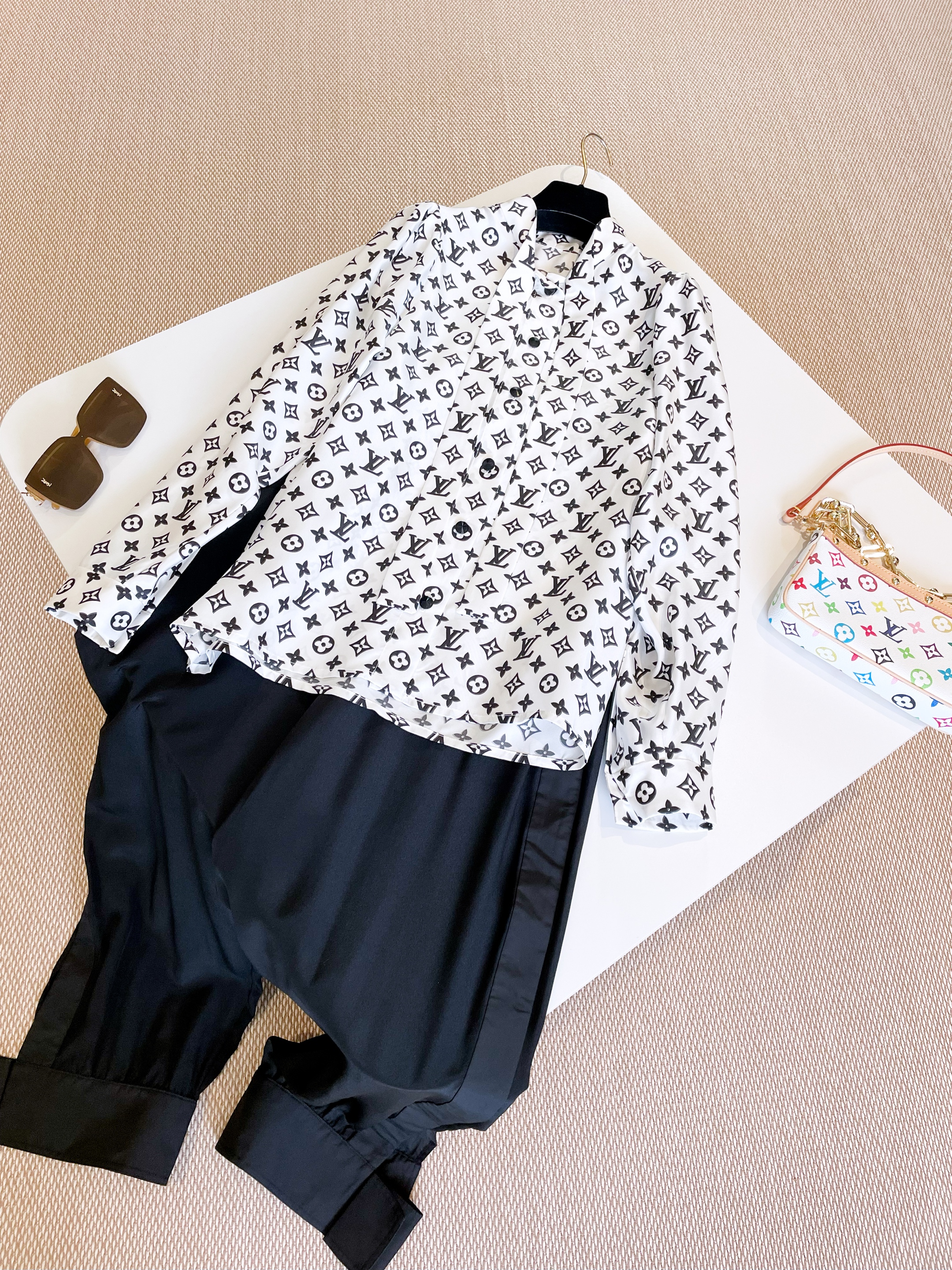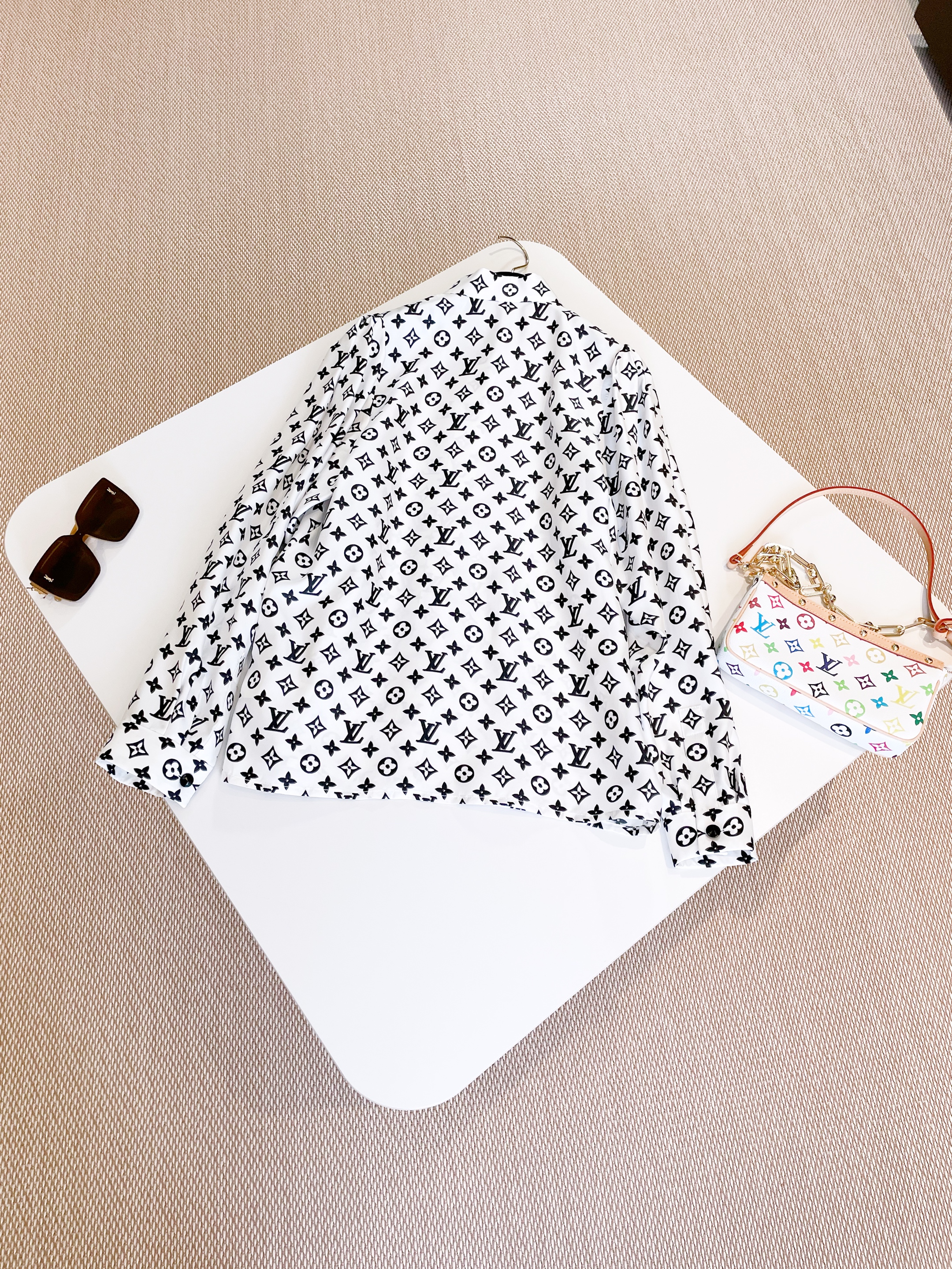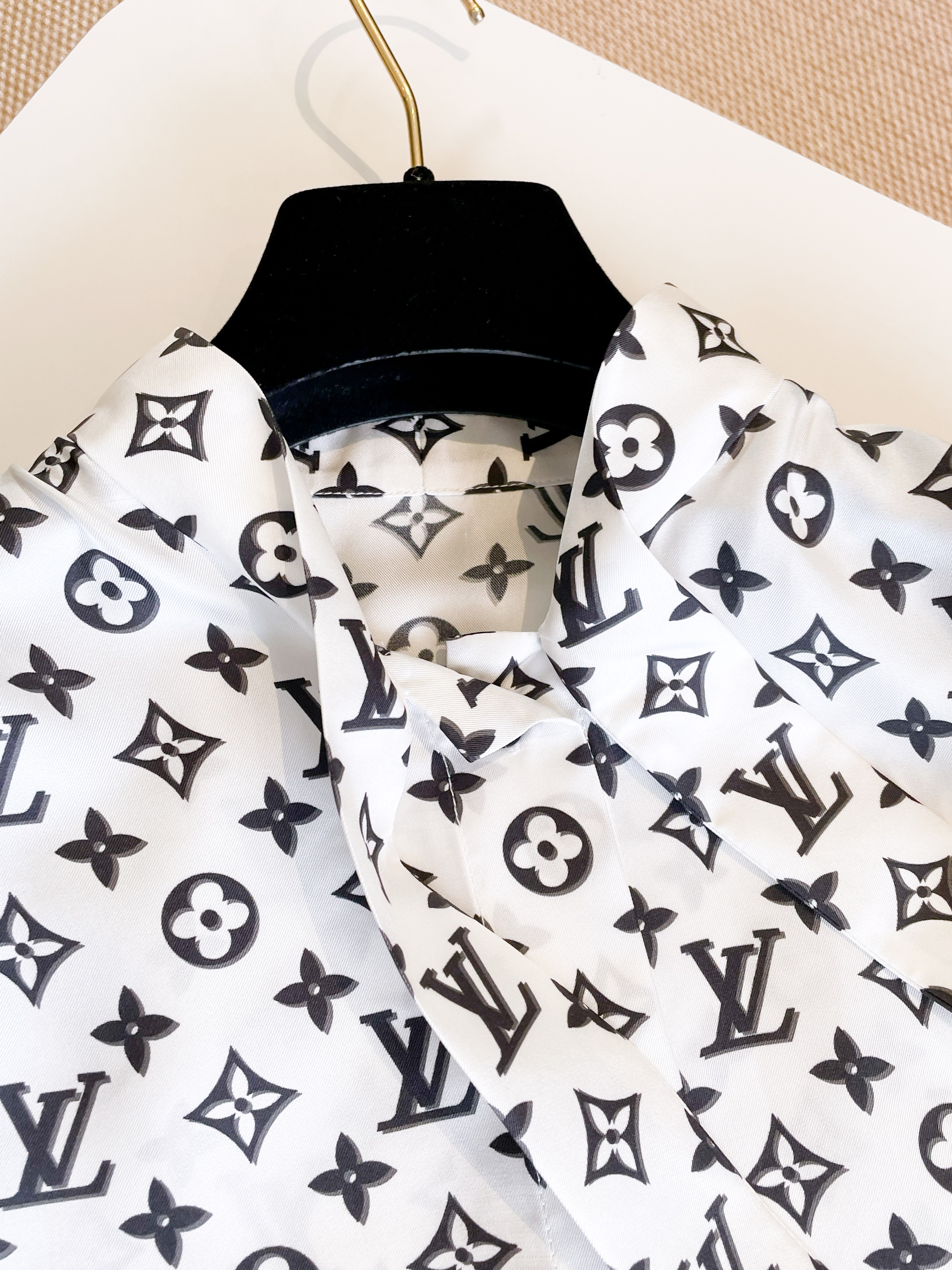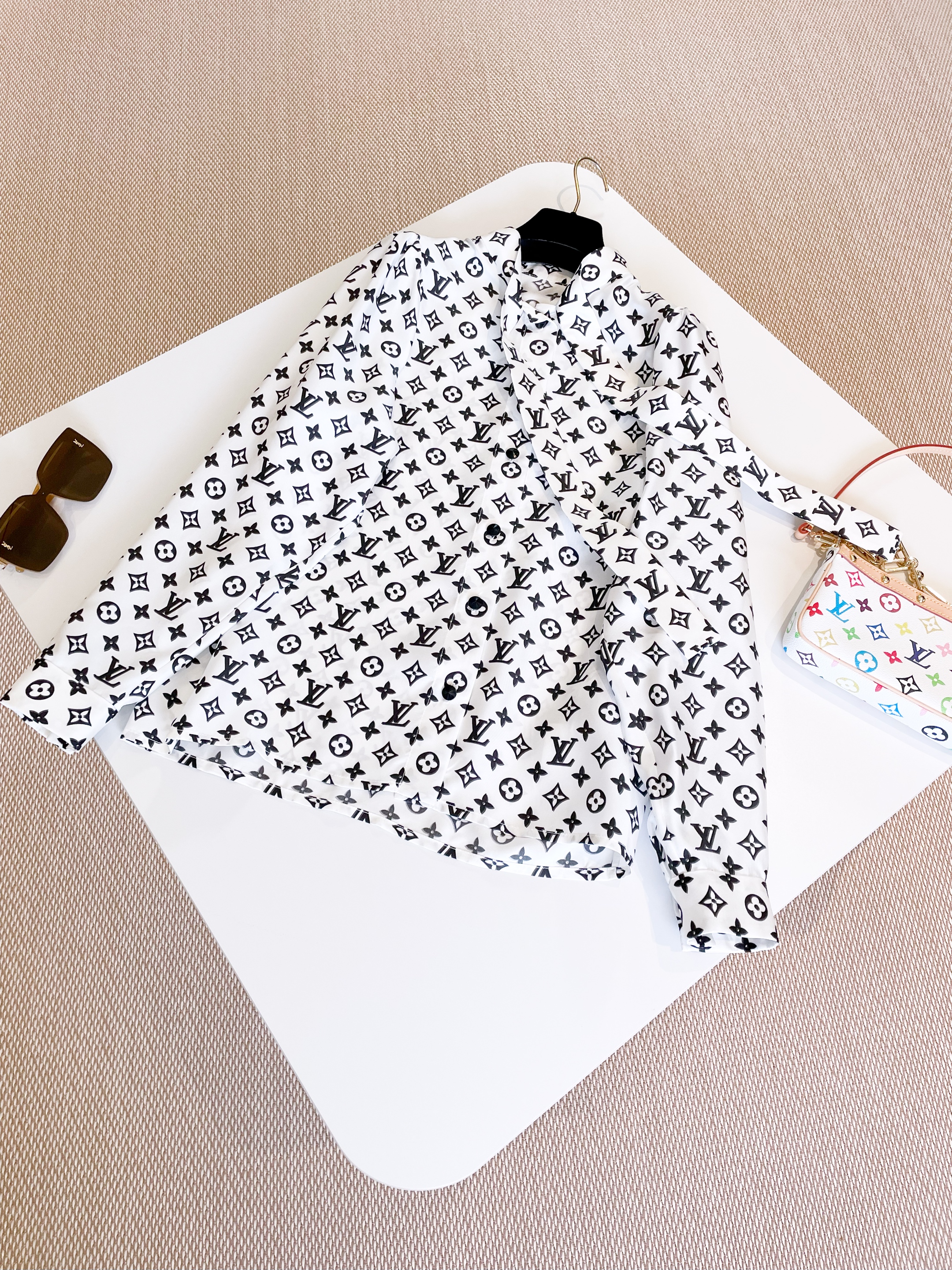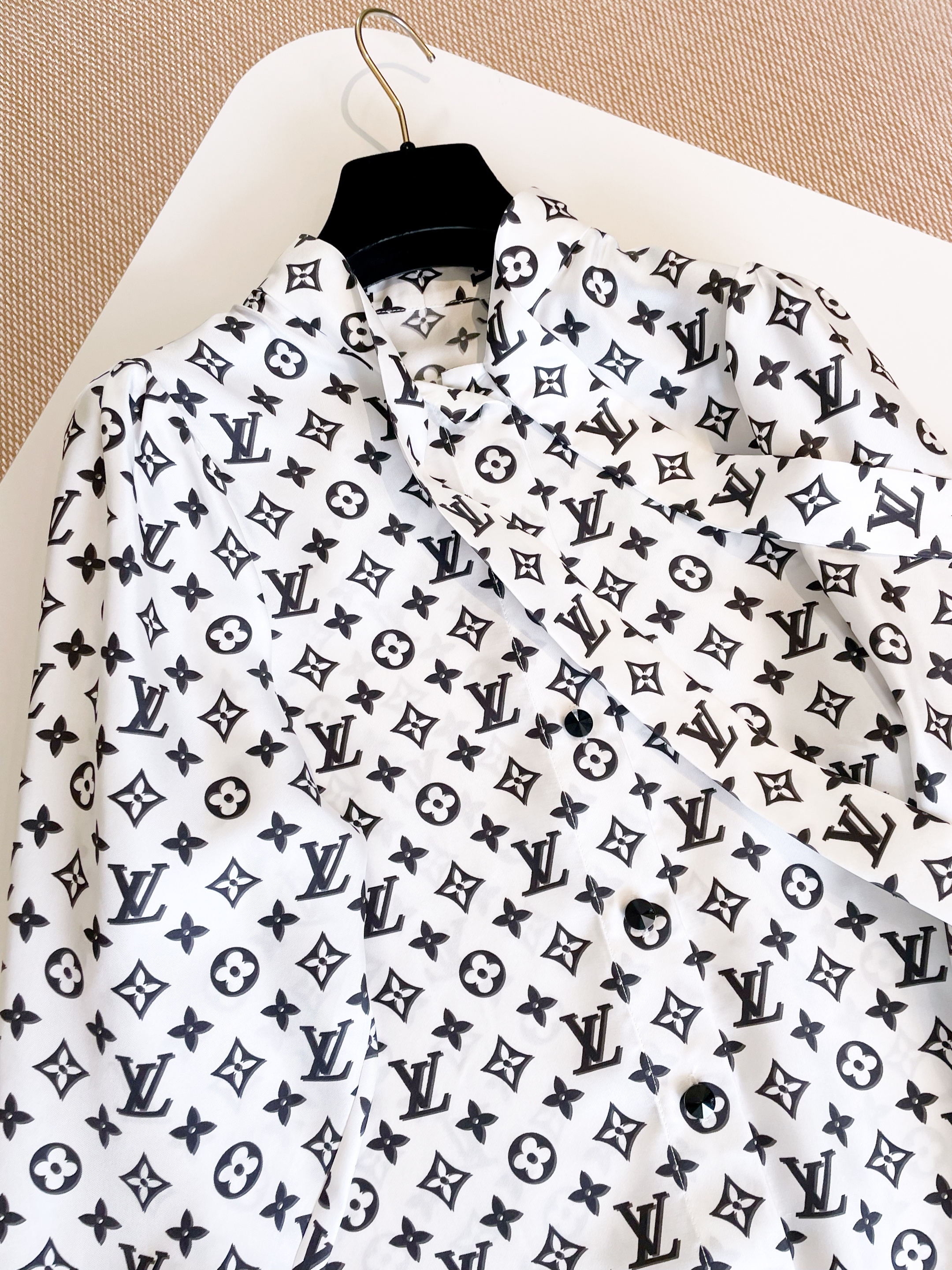 NIGO Louis Vuitton Women's Spring/Summer 3D Monogram Bubble Sleeve Top Silk Long Sleeve Shirt #nigo76324